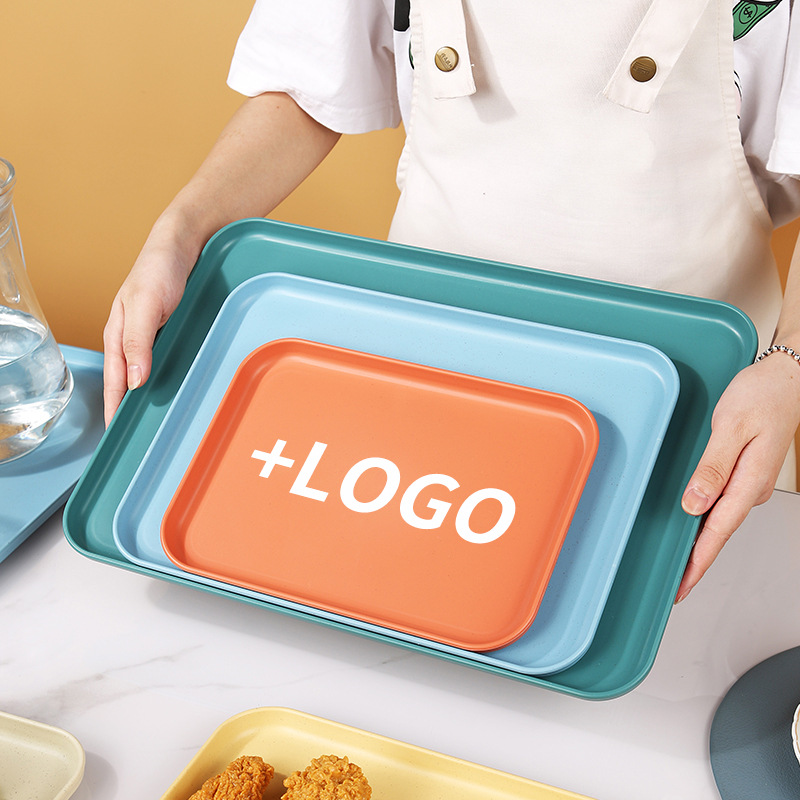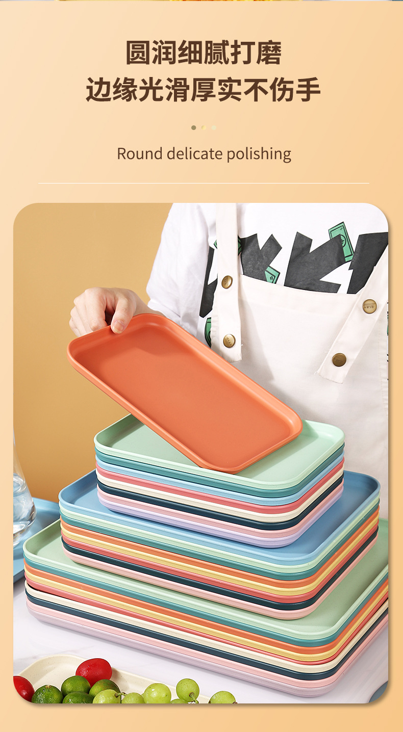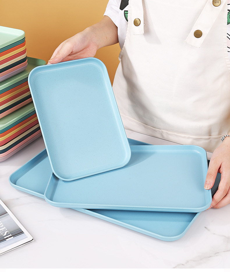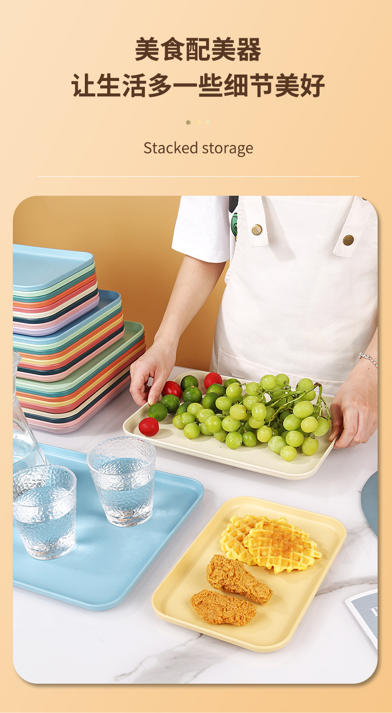 小麦秸秆托盘放杯家用酒店餐厅长方形盘子果盘茶水盘塑料盘子餐盘