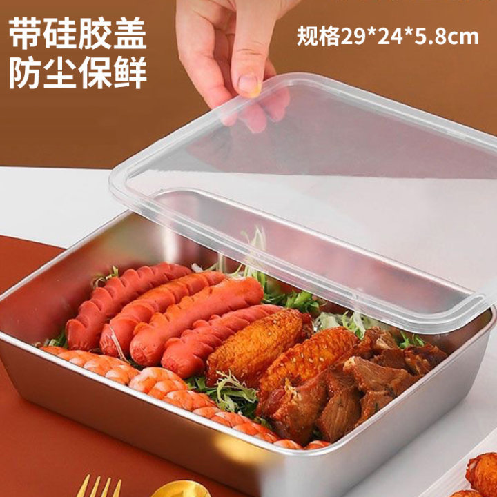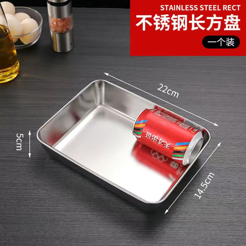 不锈钢盘子长方形平底烧烤托盘餐厅备用菜盘肠粉蒸盘批发