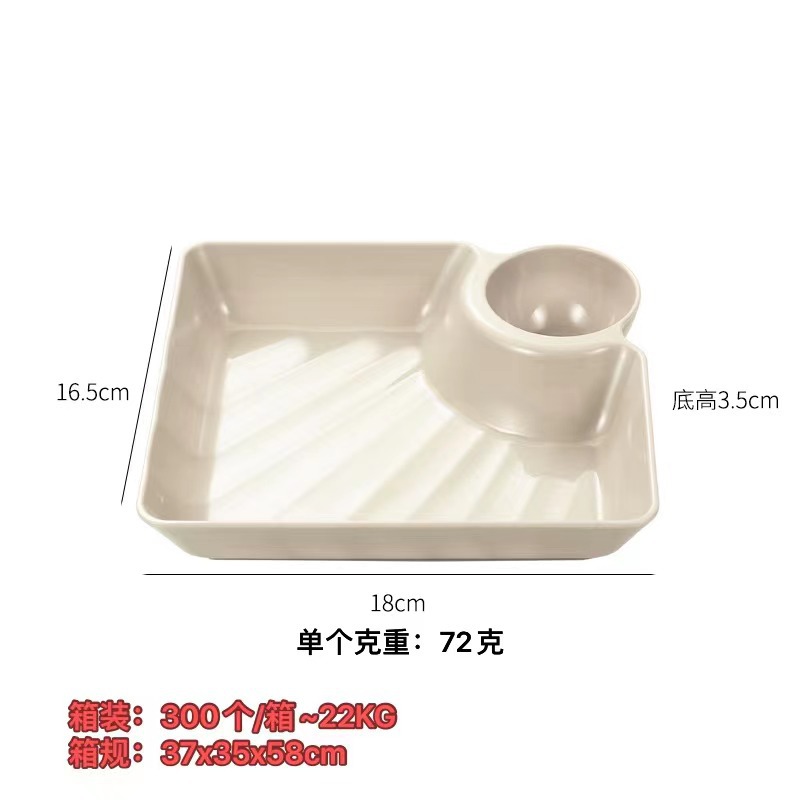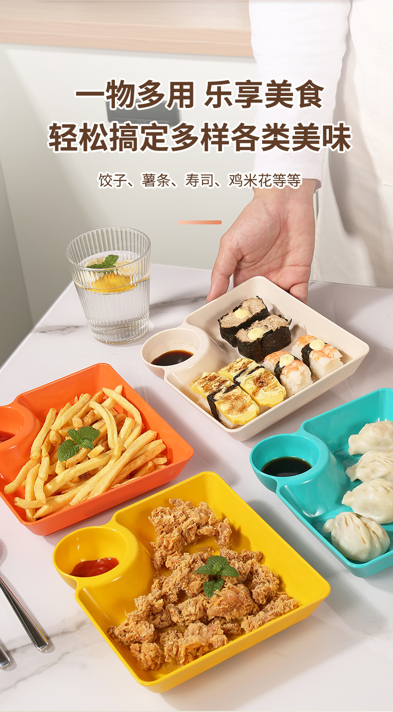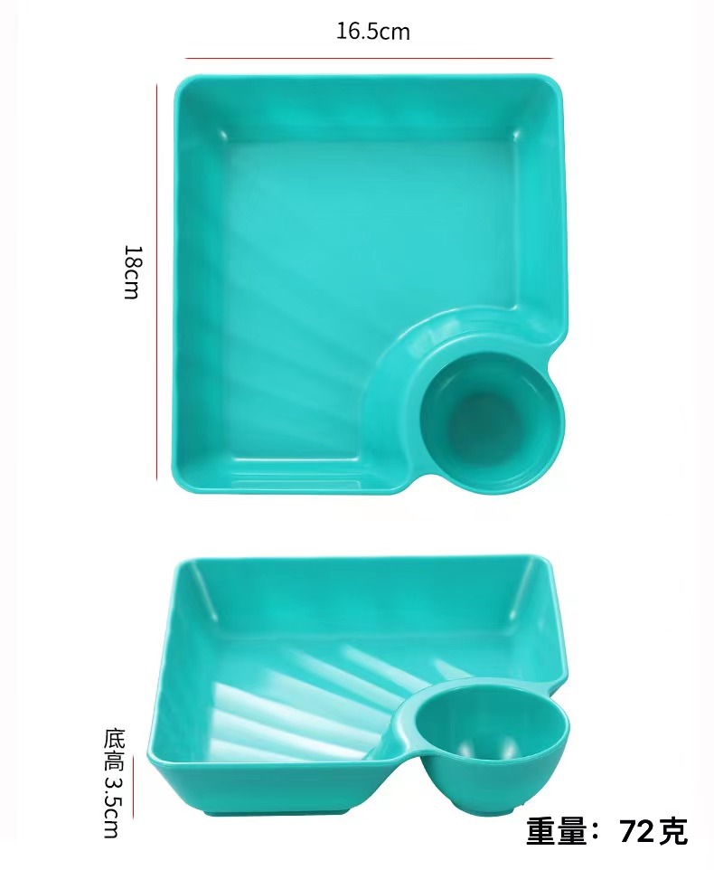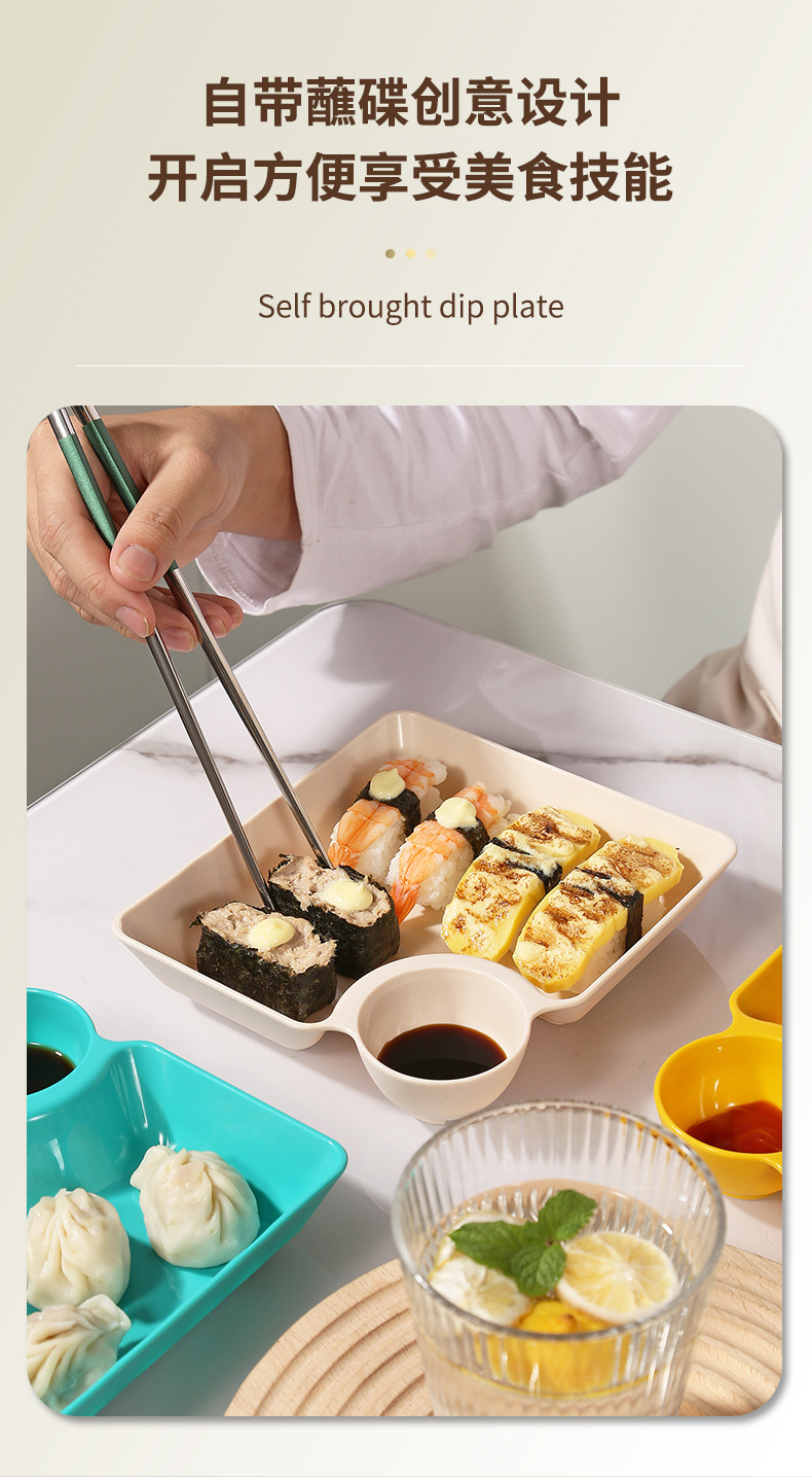 日式饺子盘带醋碟创意塑料餐盘寿司盘家用小吃盘方形点心盘糕点盘