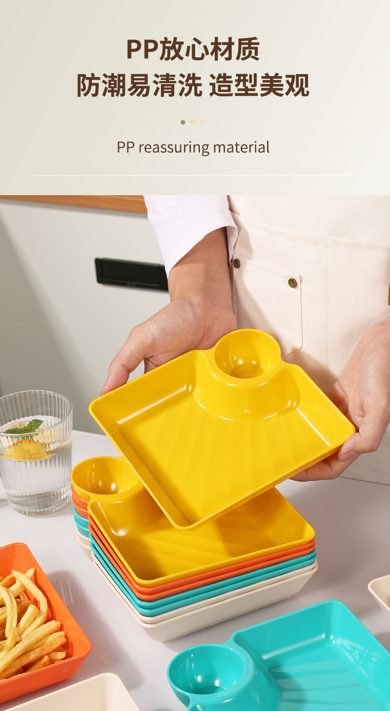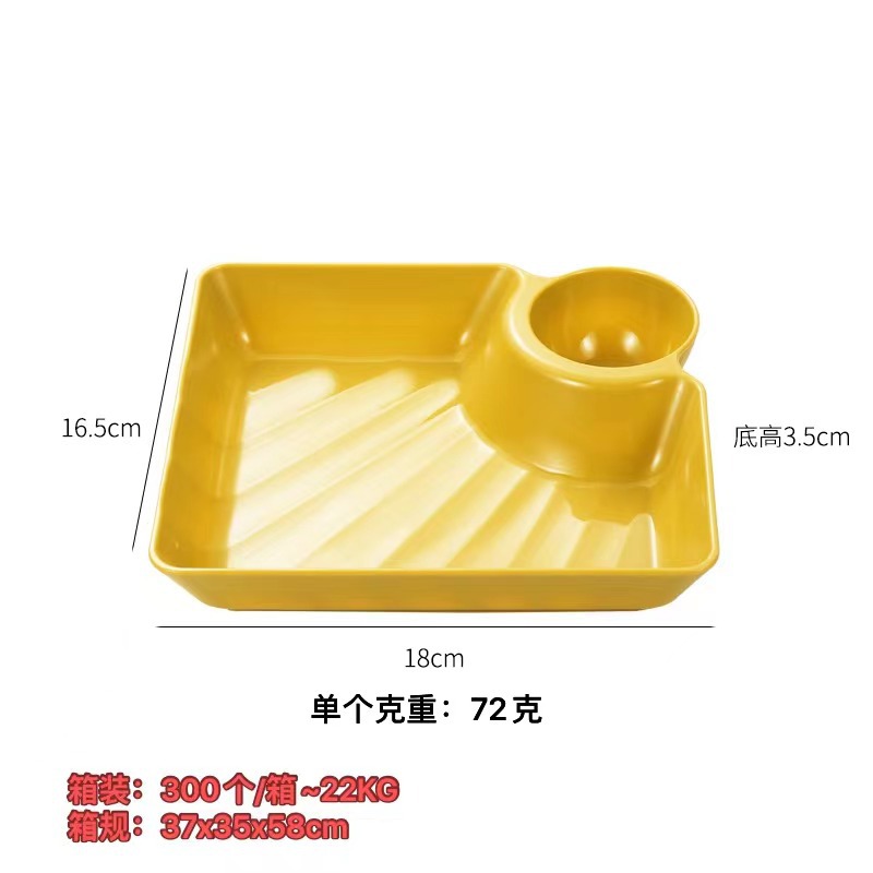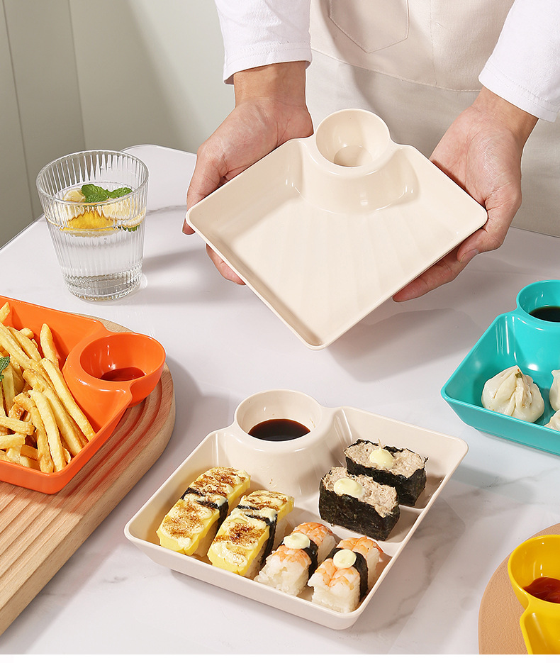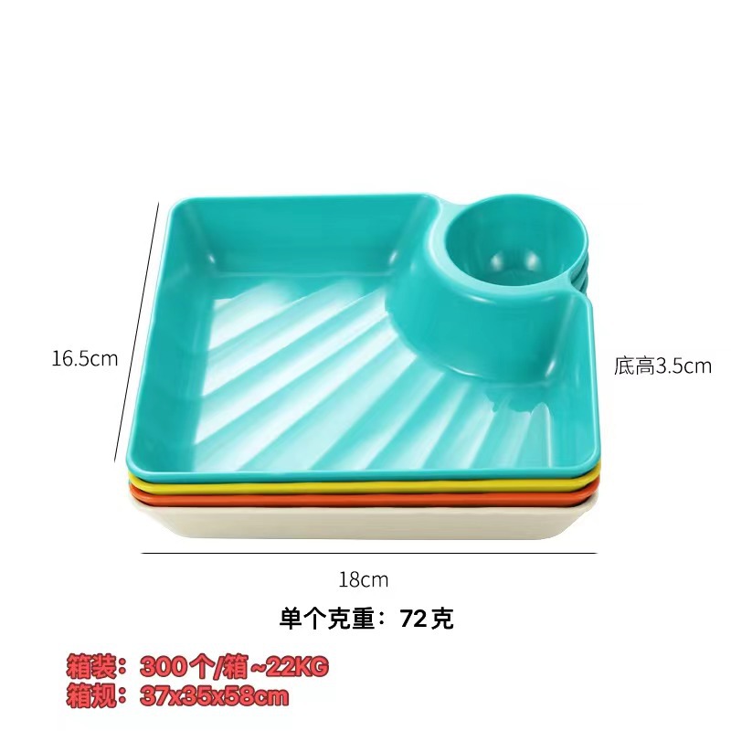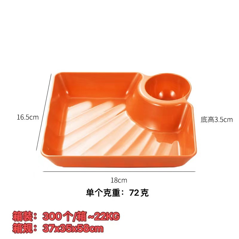 日式饺子盘带醋碟创意塑料餐盘寿司盘家用小吃盘方形点心盘糕点盘