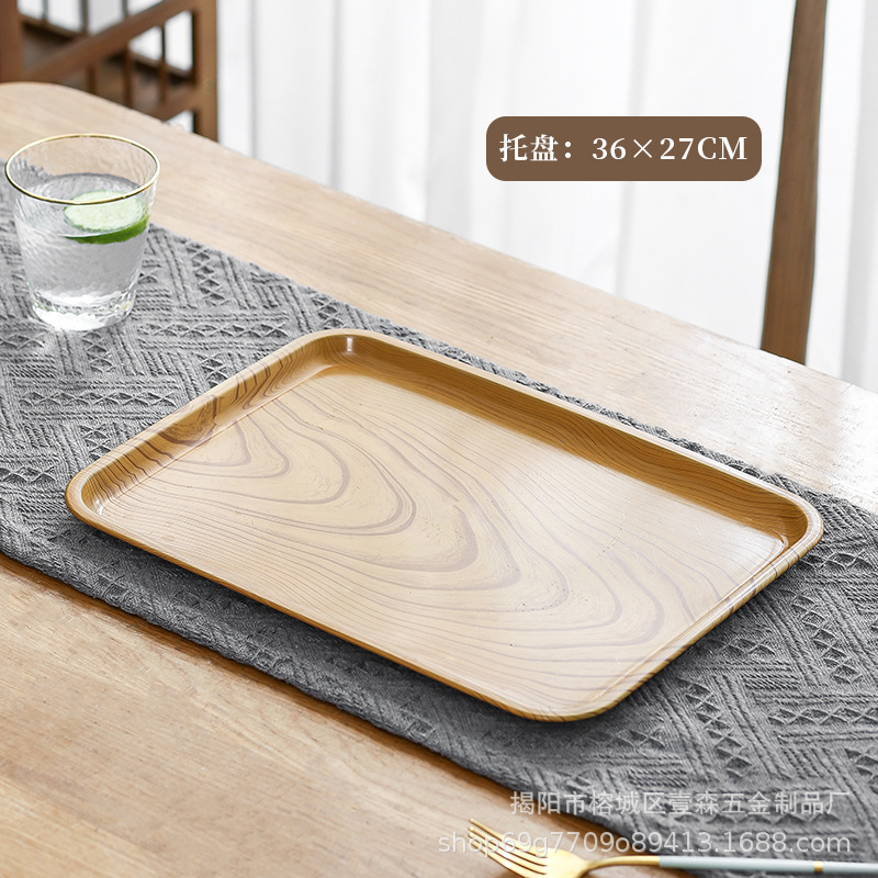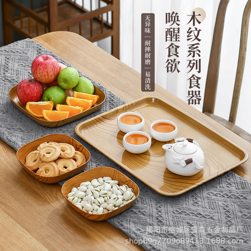 新款轻奢创意仿木纹塑料吐骨盒下午茶点心托盘木纹碟高颜值水果盘