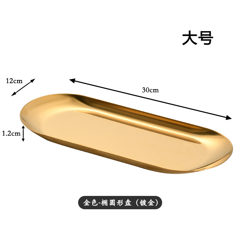 北欧ins盘子不锈钢椭圆盘金色托盘糕点心盘首饰收纳金属盘子跨境