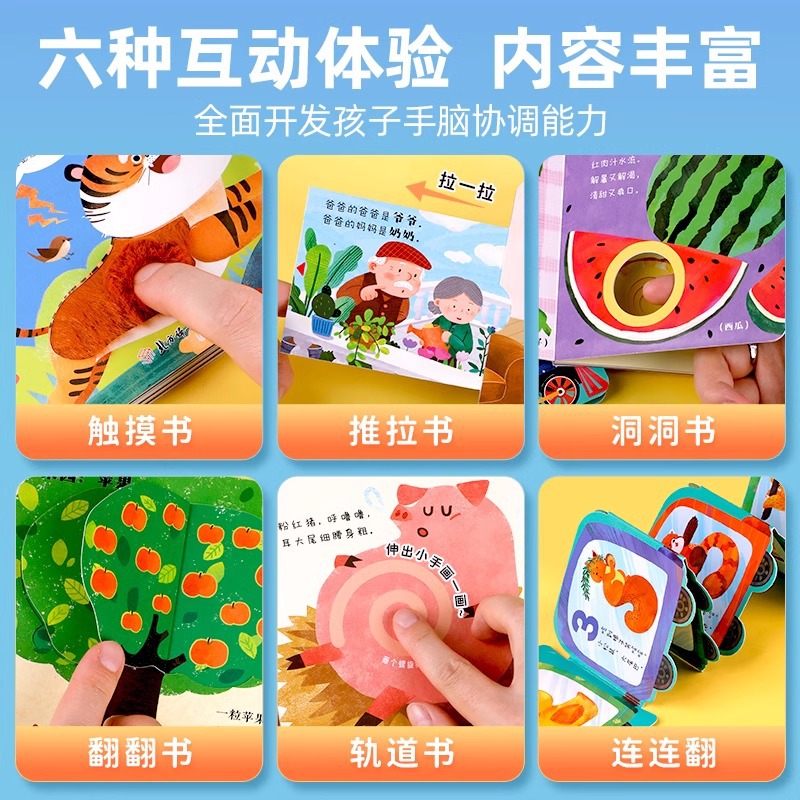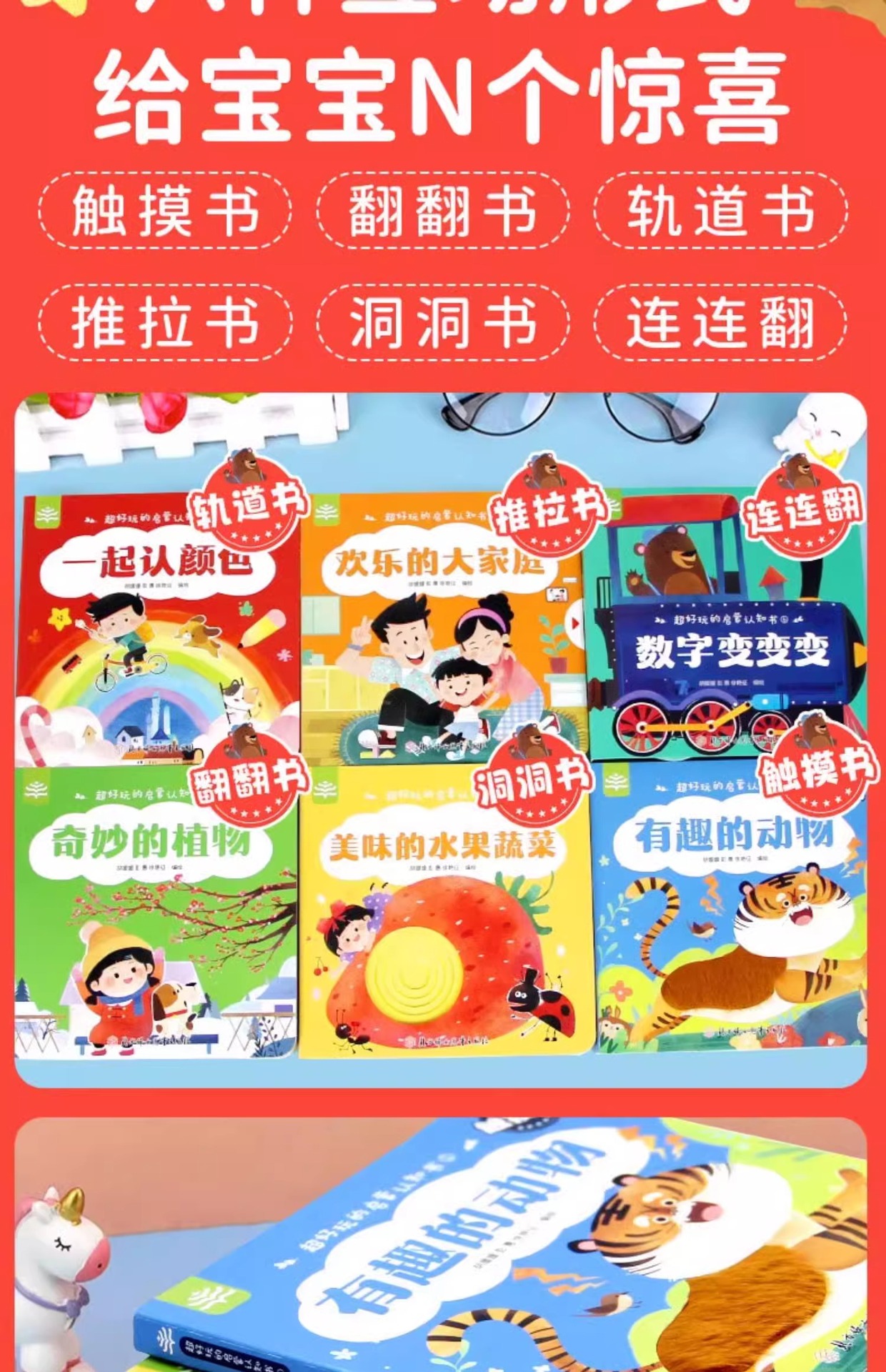 好玩的启蒙认知书全套6册 宝宝绘本0到3岁婴儿早教书触摸翻翻书