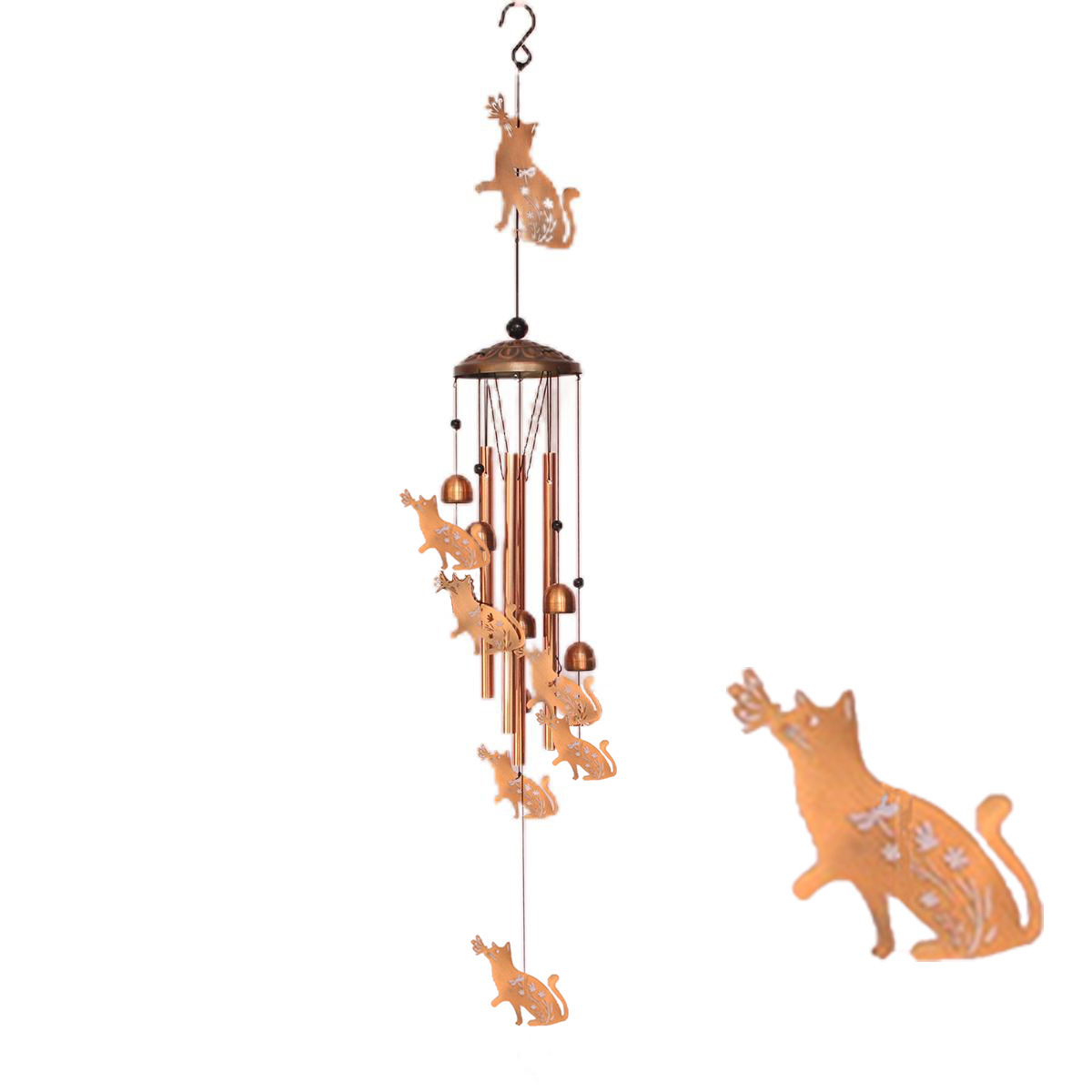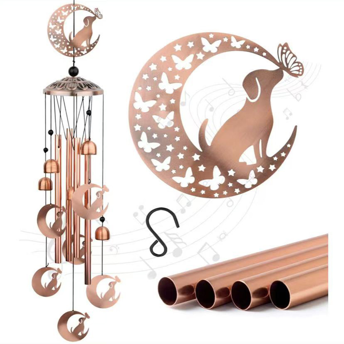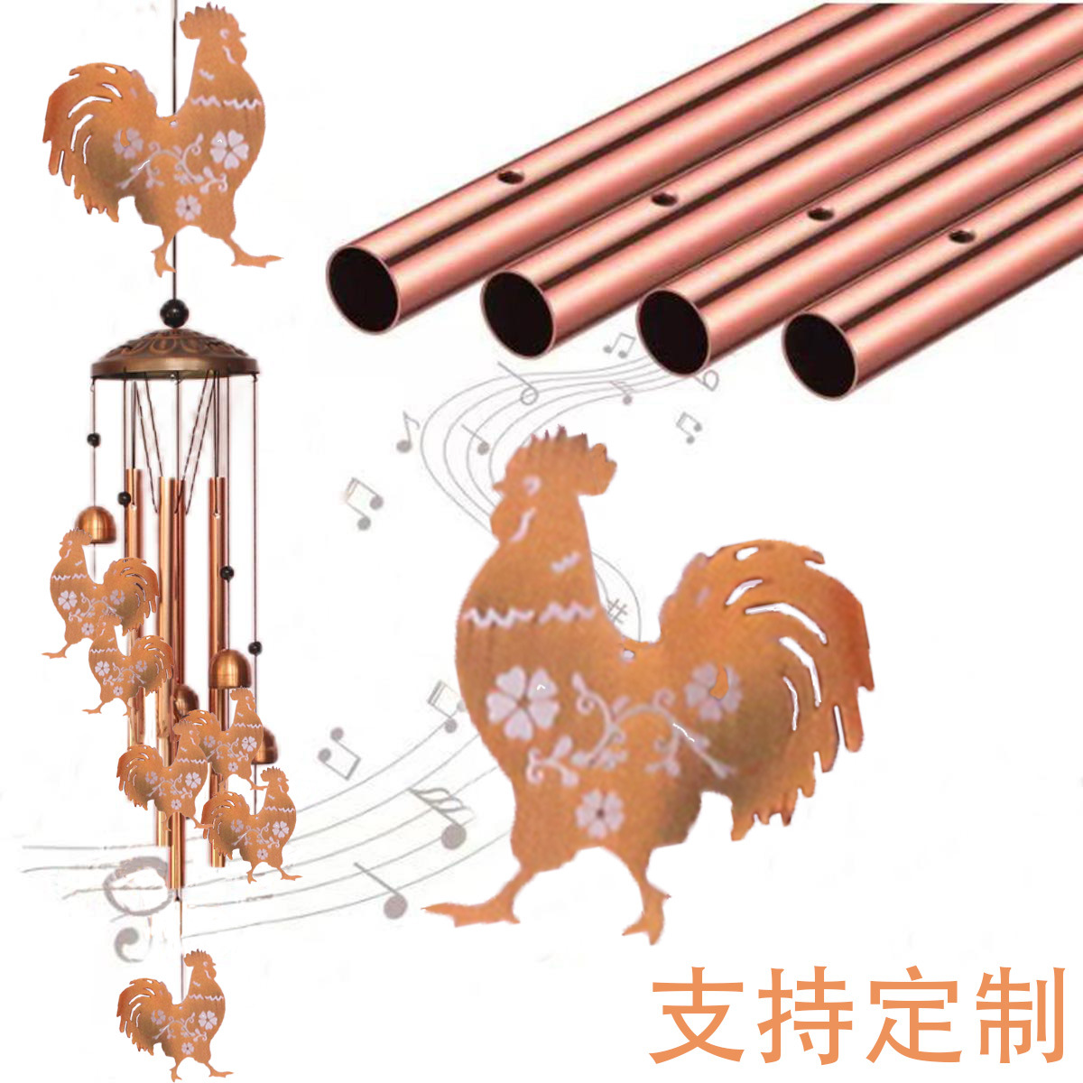 欧美高级感复古金属鸡猫狗动物铁艺铝管风铃庭院户外挂饰跨境新品