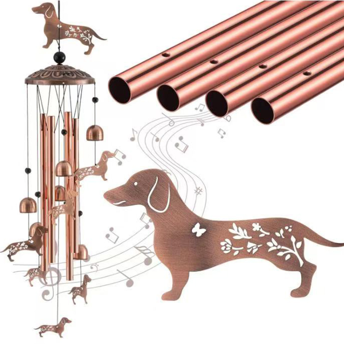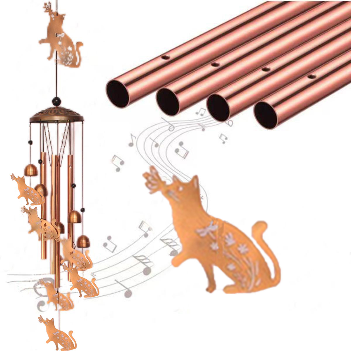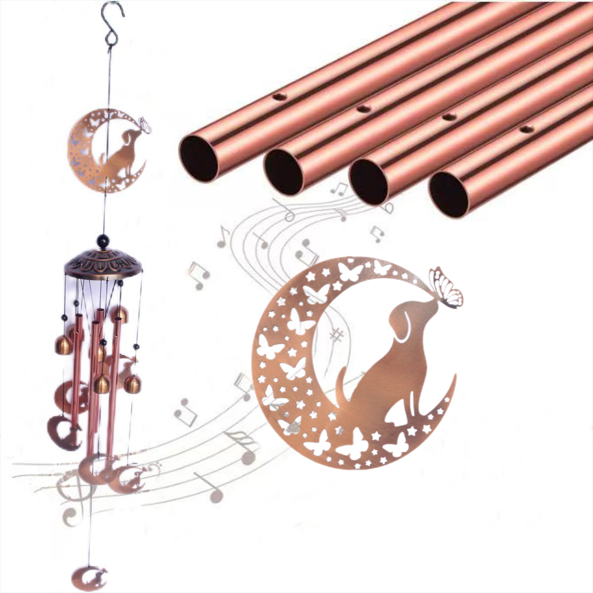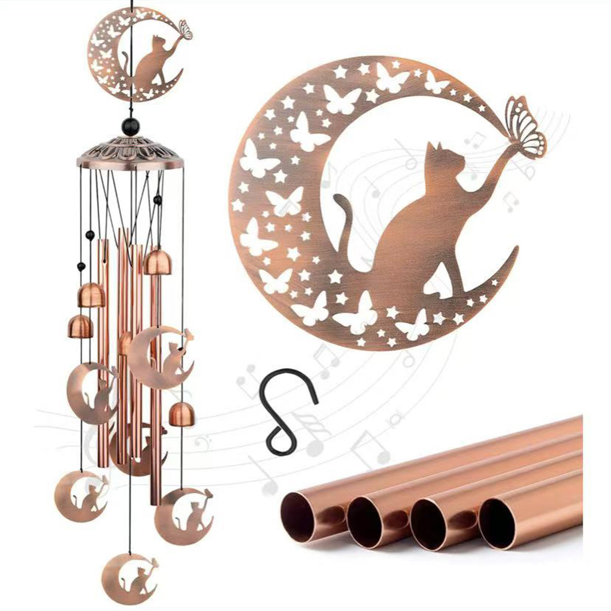 欧美高级感复古金属鸡猫狗动物铁艺铝管风铃庭院户外挂饰跨境新品