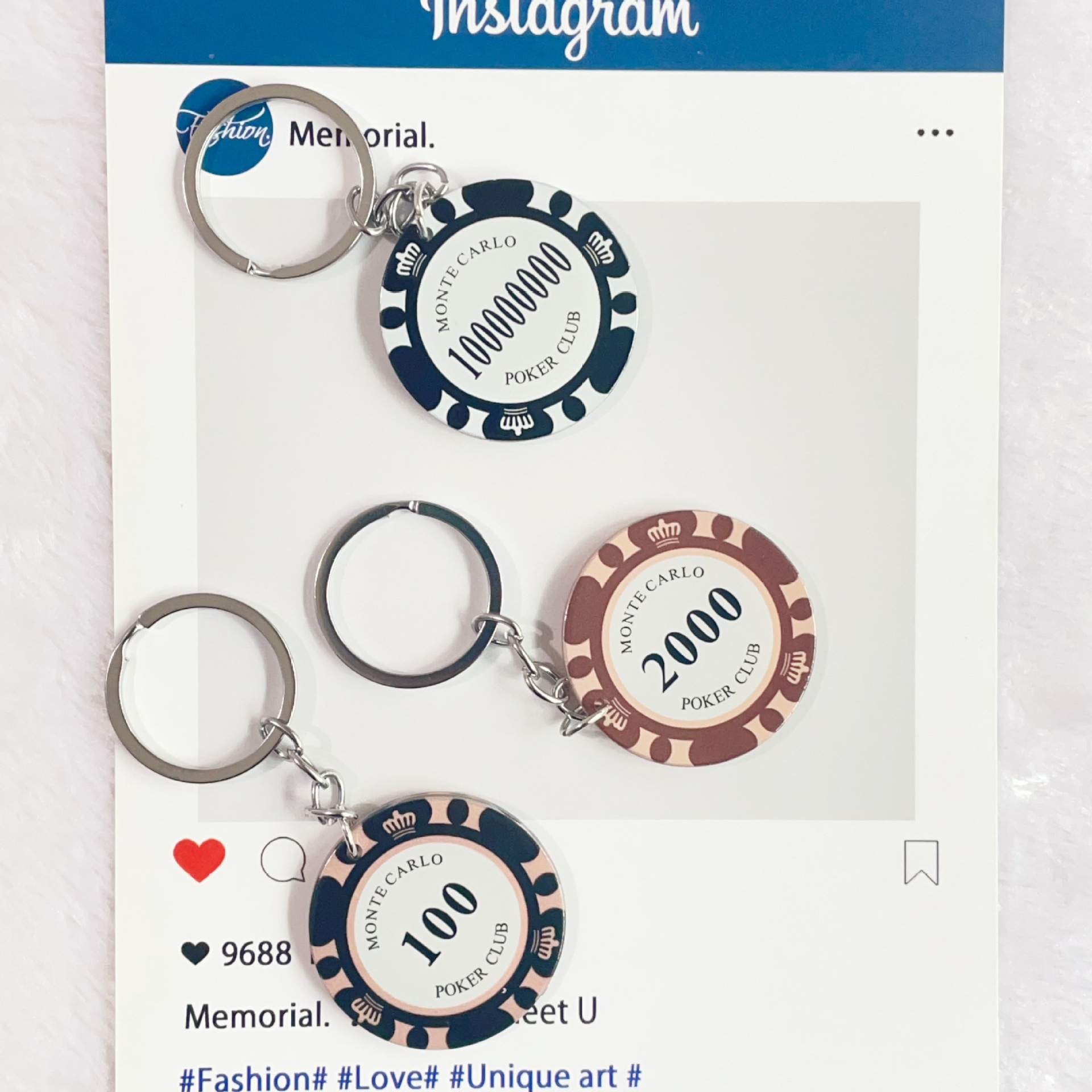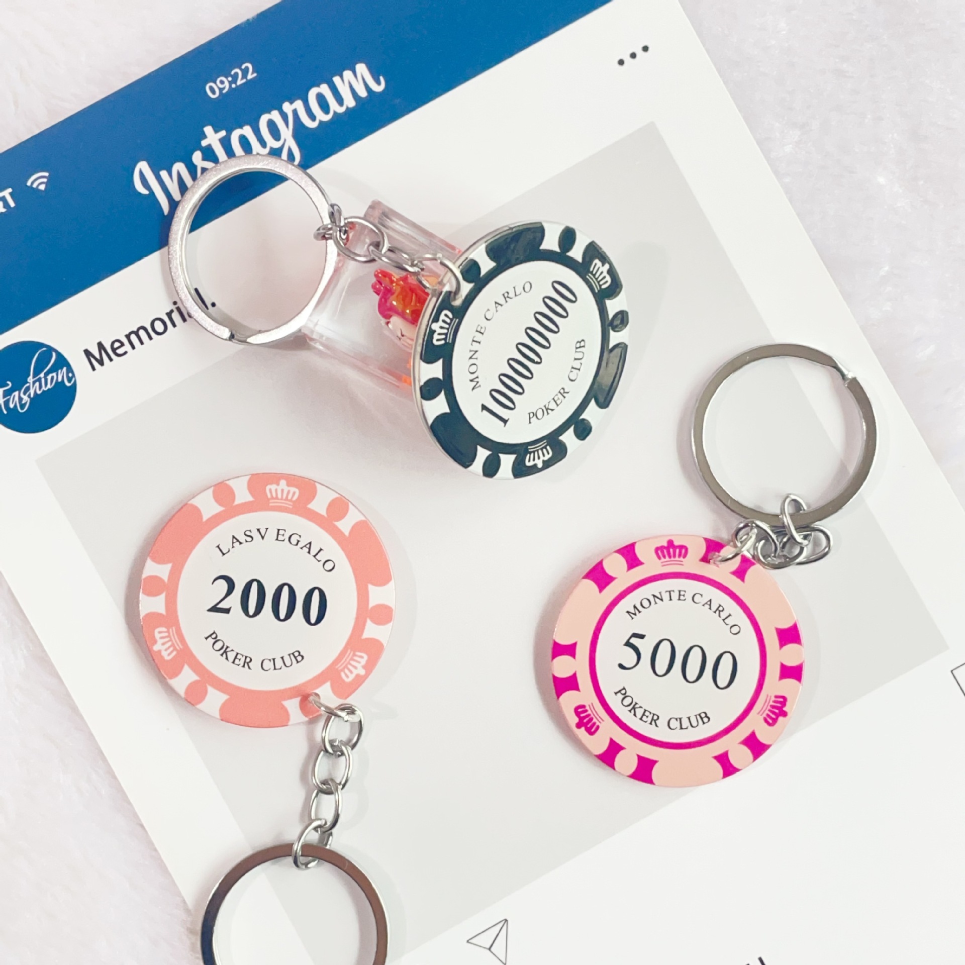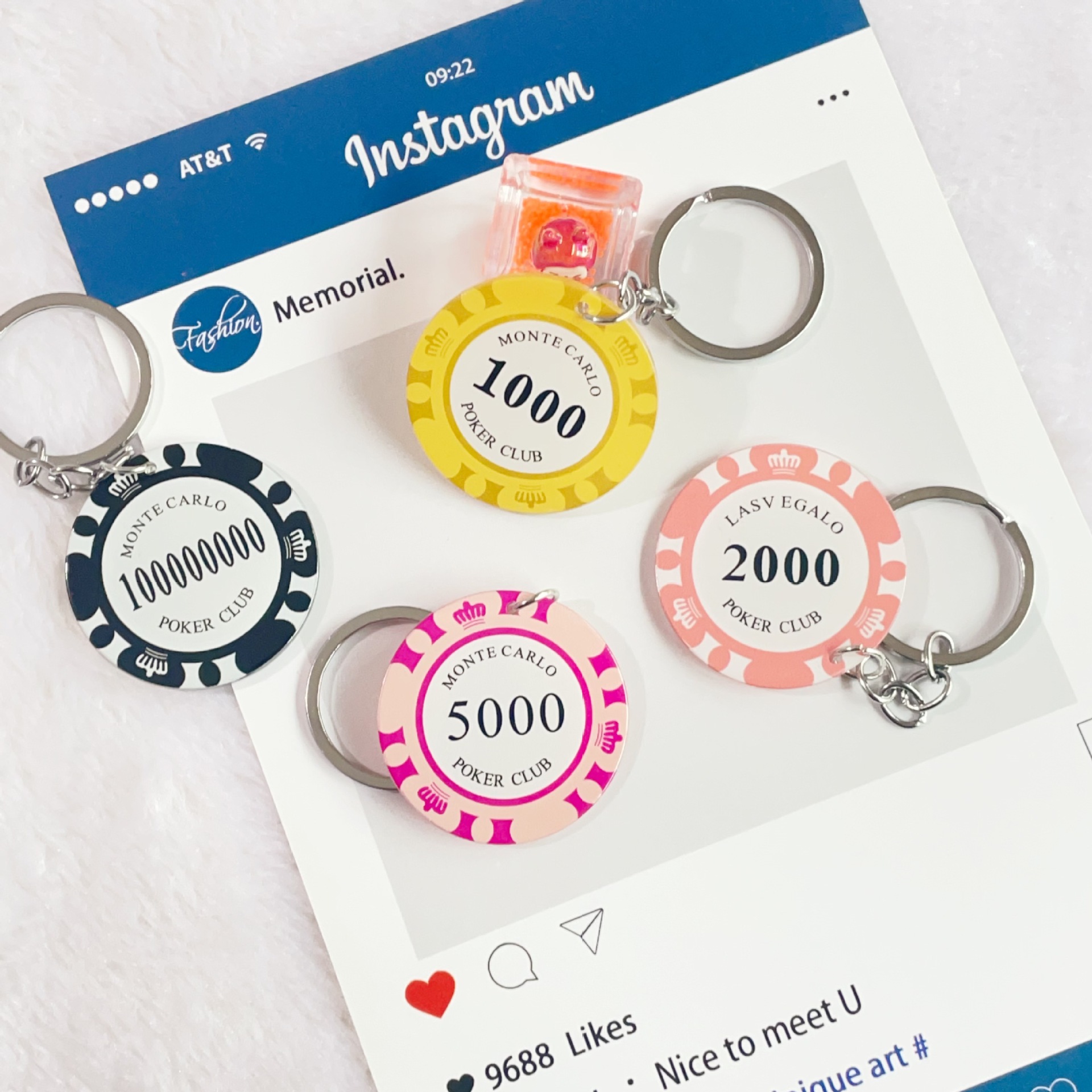 创意个性筹码双面彩印钥匙扣包包挂件diy饰品亚克力配件挂饰批发