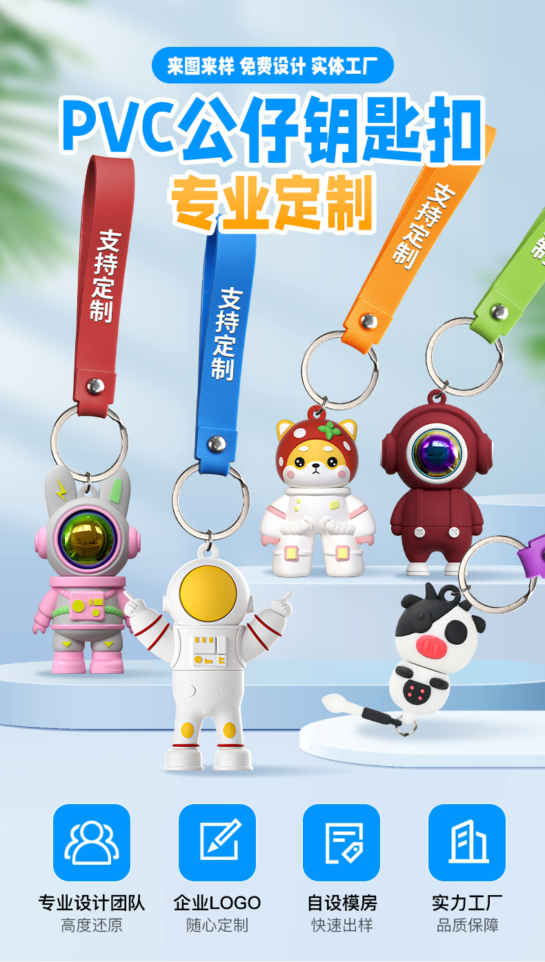 钥匙扣定制PVC软胶吉祥物3D立体卡通形象手办公仔礼品挂件钥匙扣
