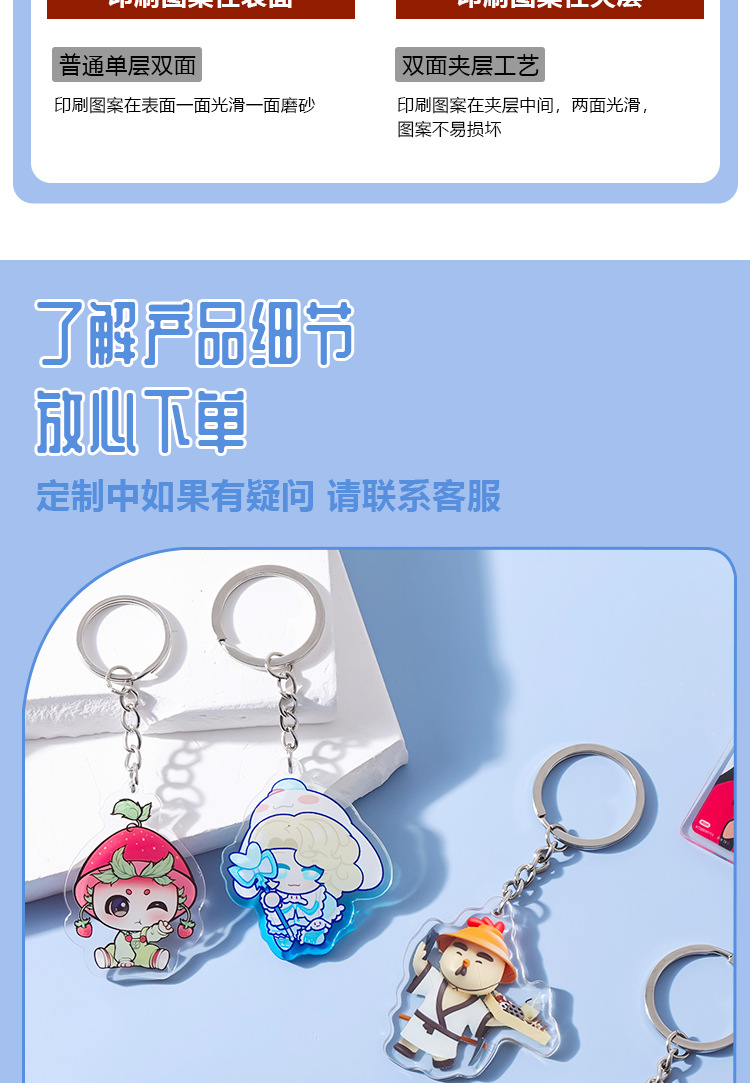 亚克力钥匙扣定制动漫卡通钥匙挂件创意明星周边透明立牌摆件订做