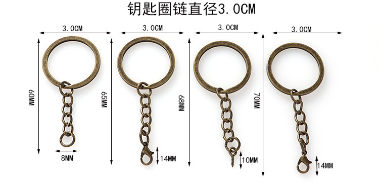 30青古铜钥匙扣DIY 饰品配件手工挂件金属钥匙链批发钥匙圈环复古
