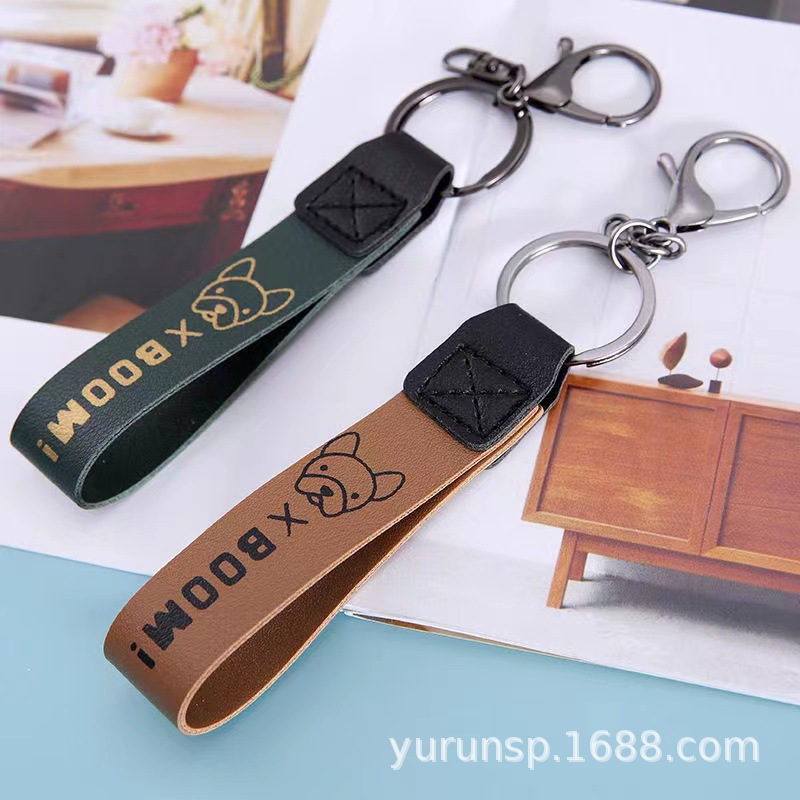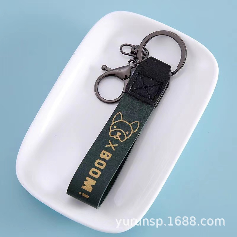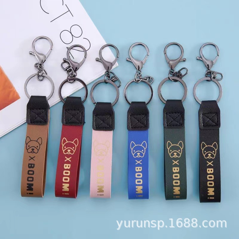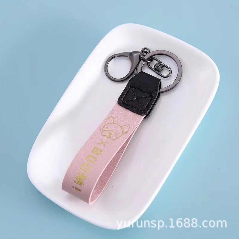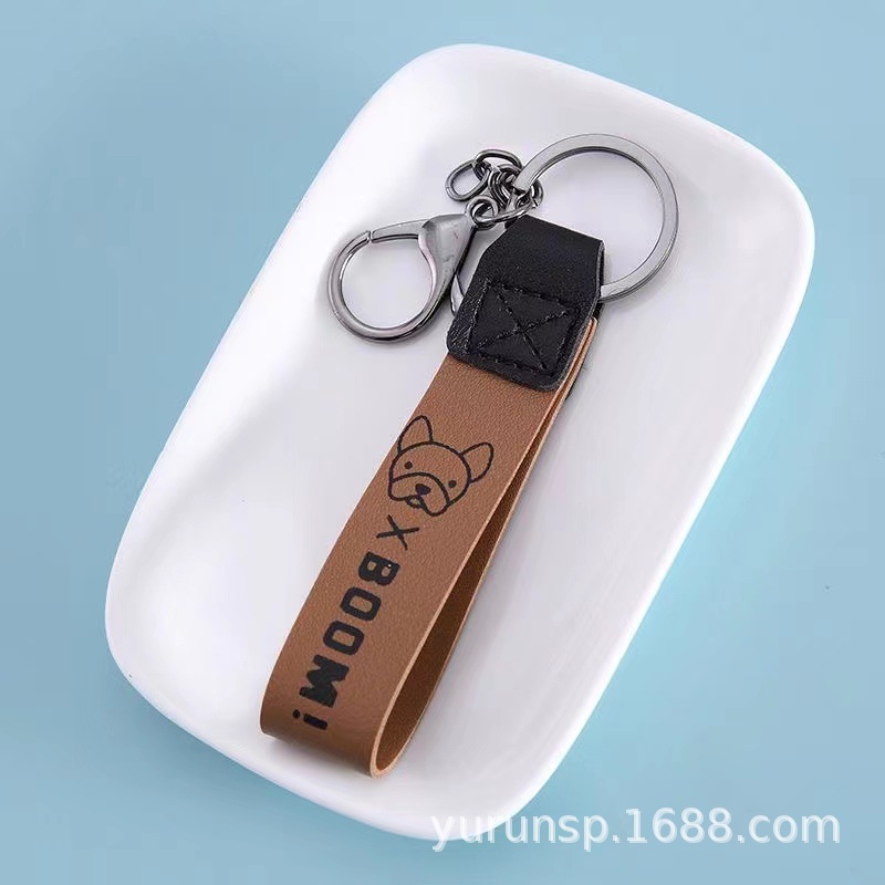 法斗小狗钥匙扣时尚手绳 来图定制烫金图文 简约PU皮质钥匙扣配件