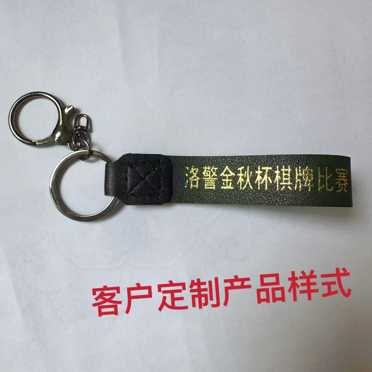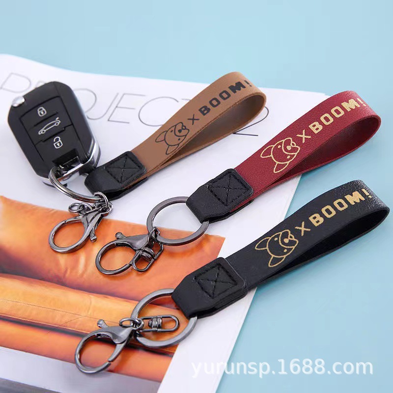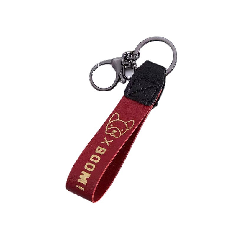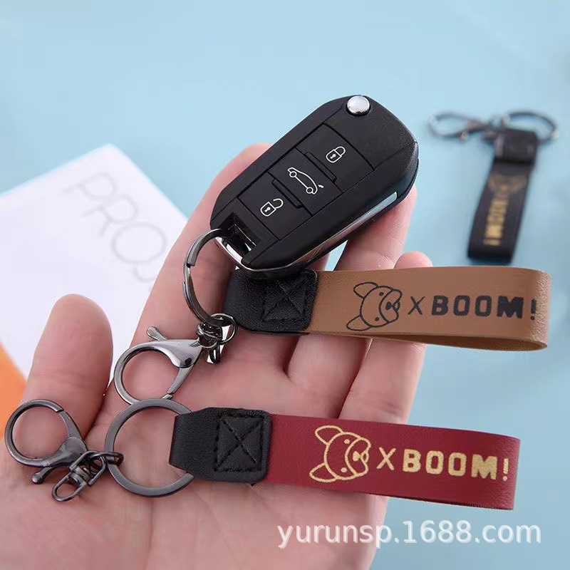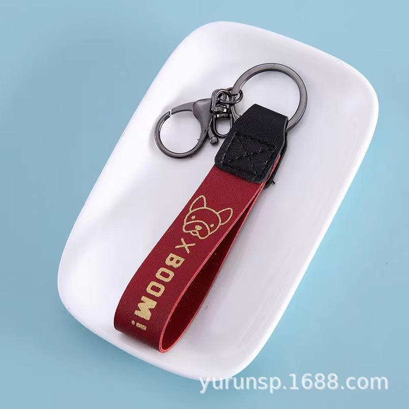 法斗小狗钥匙扣时尚手绳 来图定制烫金图文 简约PU皮质钥匙扣配件