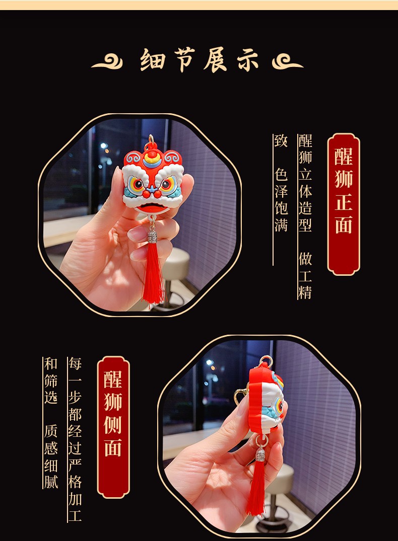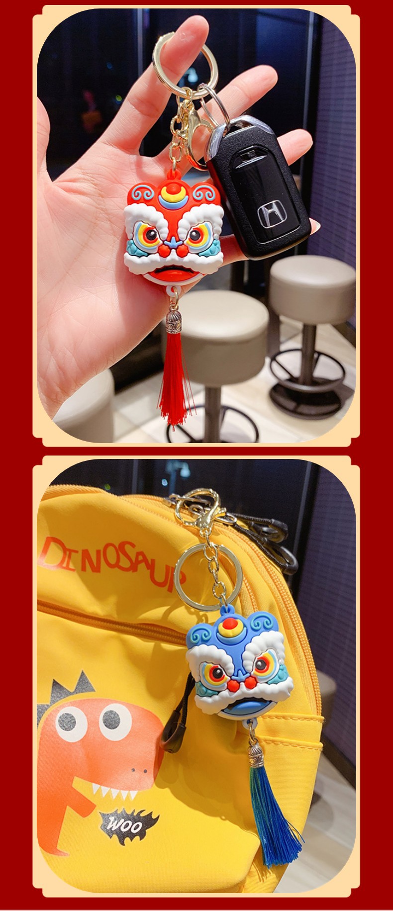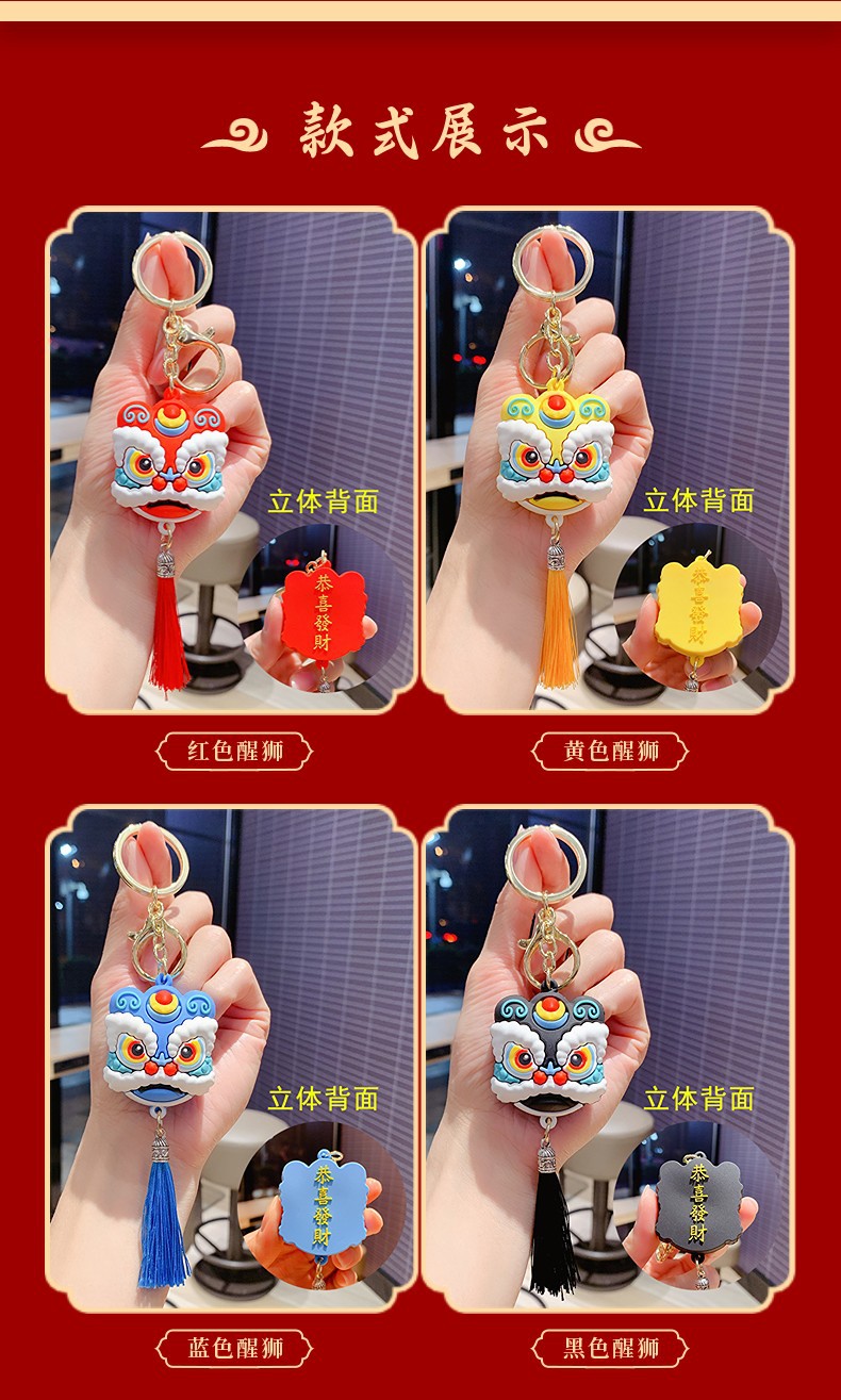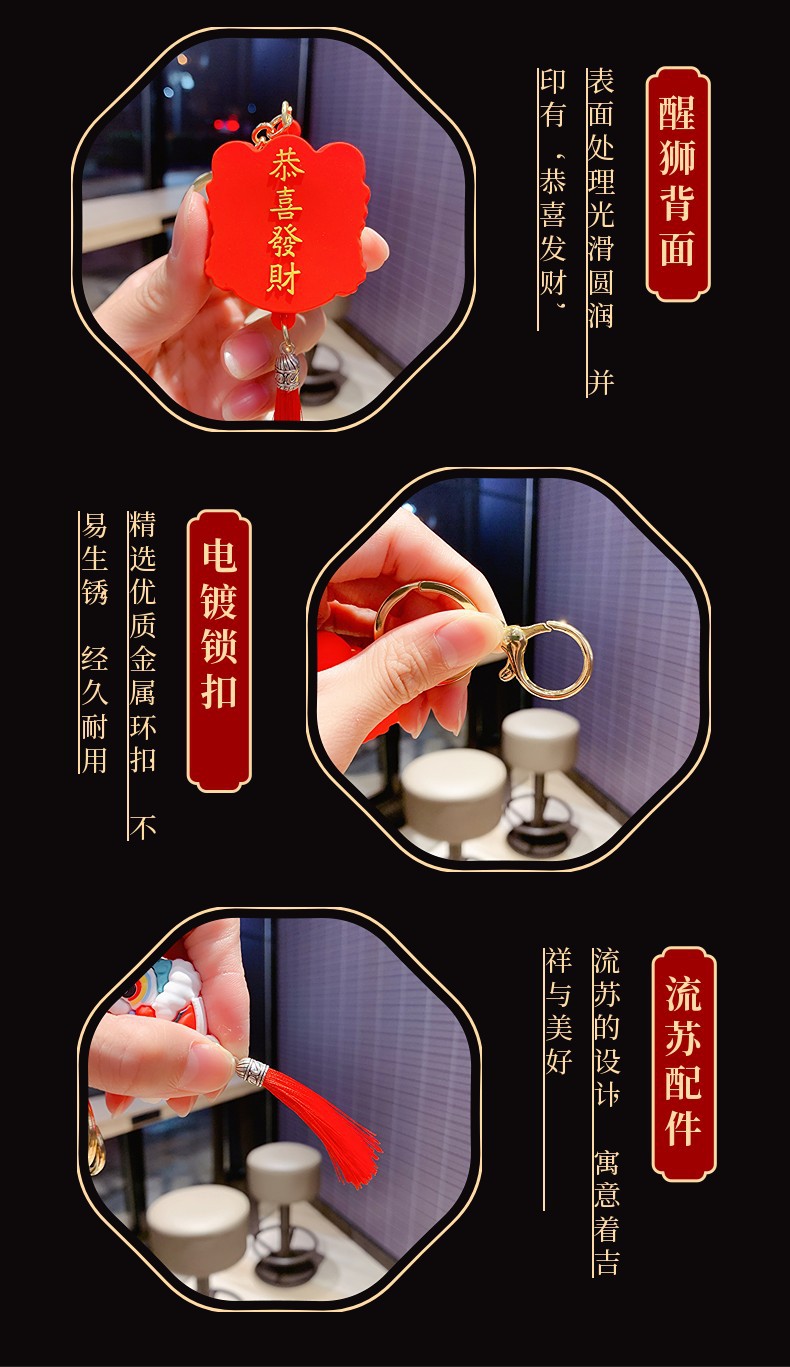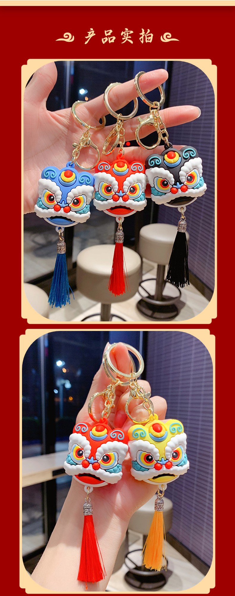 广东醒狮狮头钥匙扣挂件公仔国潮新年喜庆流苏挂饰蛇年小礼品