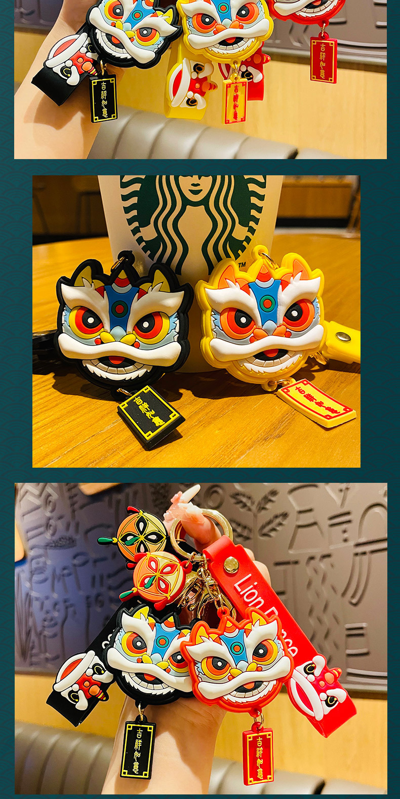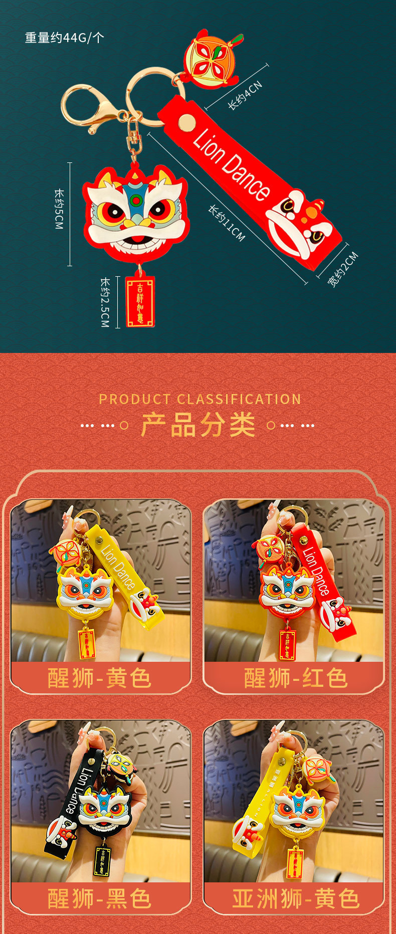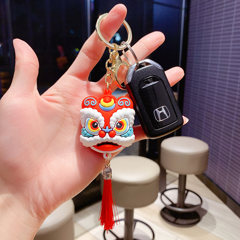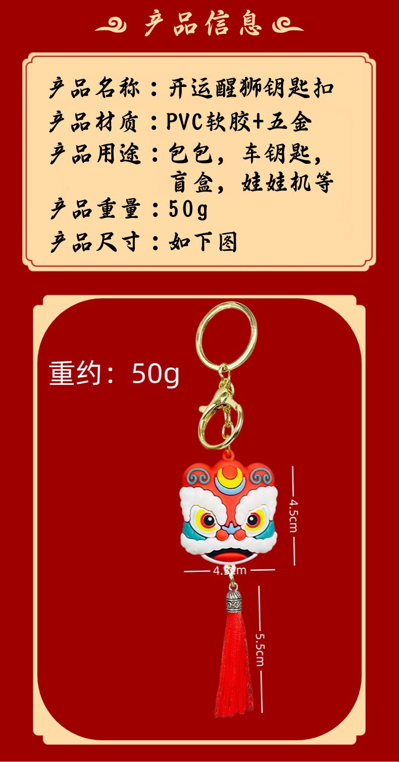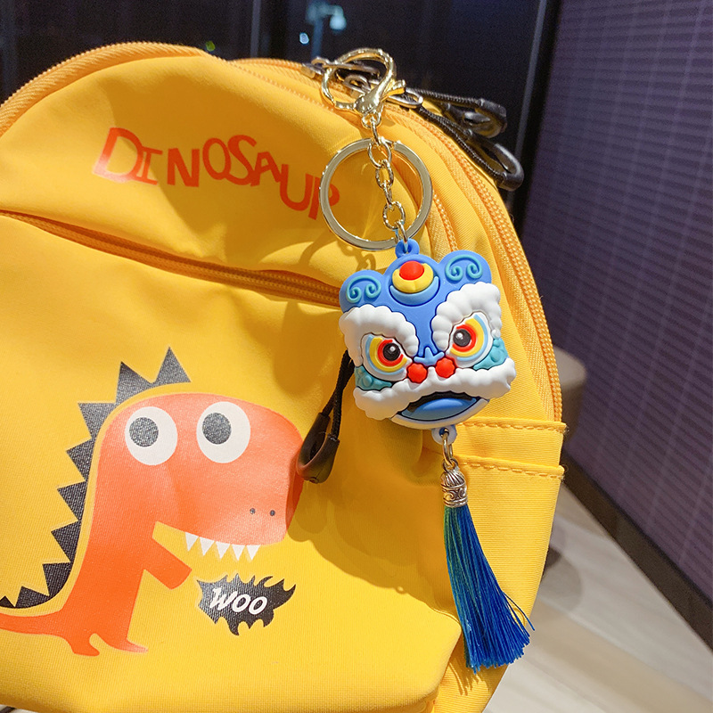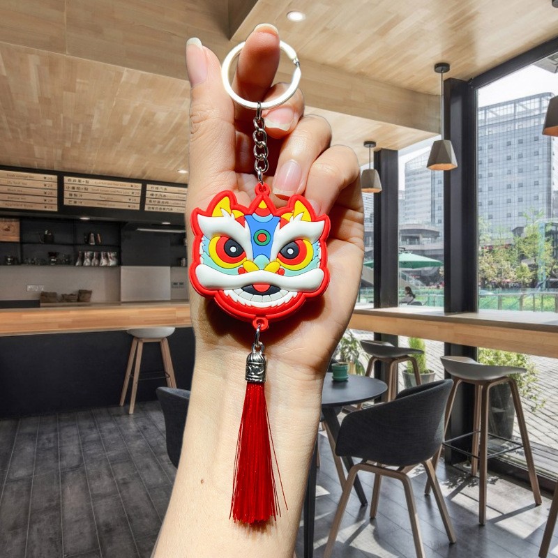 广东醒狮狮头钥匙扣挂件公仔国潮新年喜庆流苏挂饰蛇年小礼品