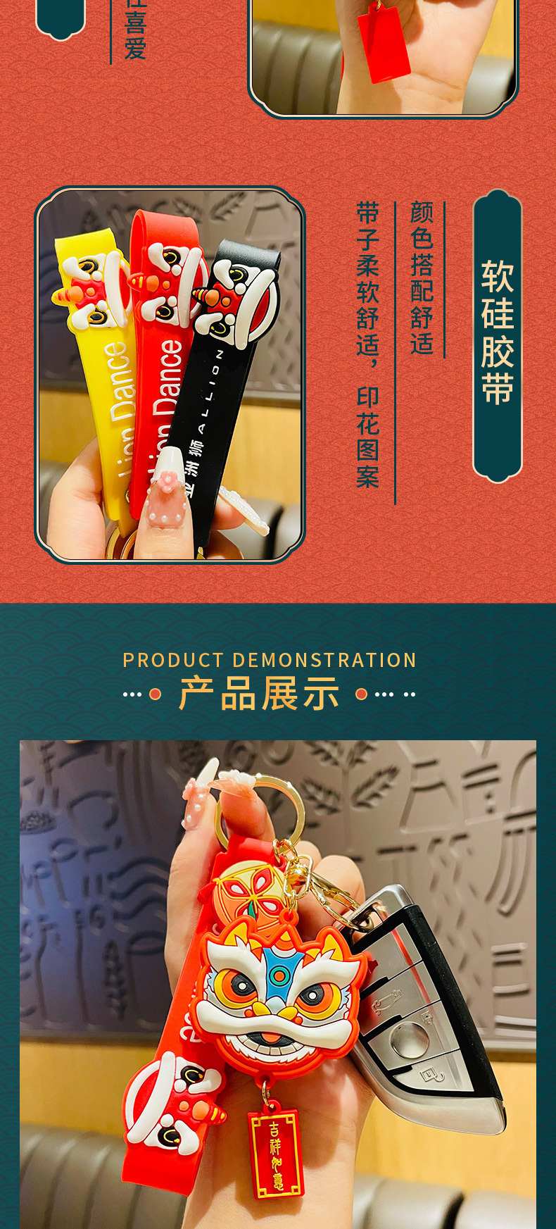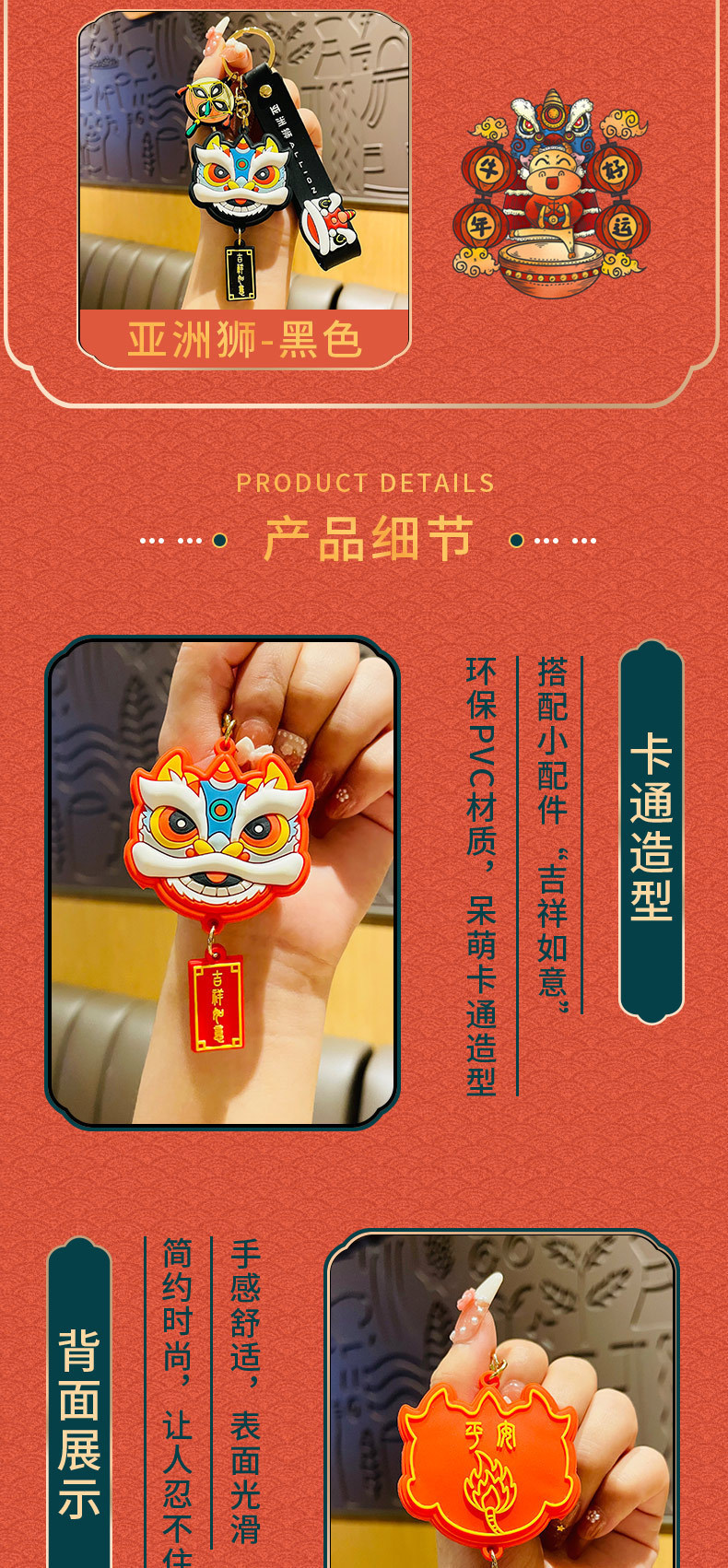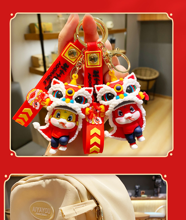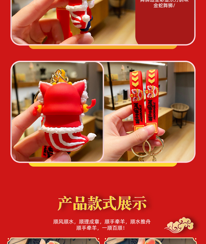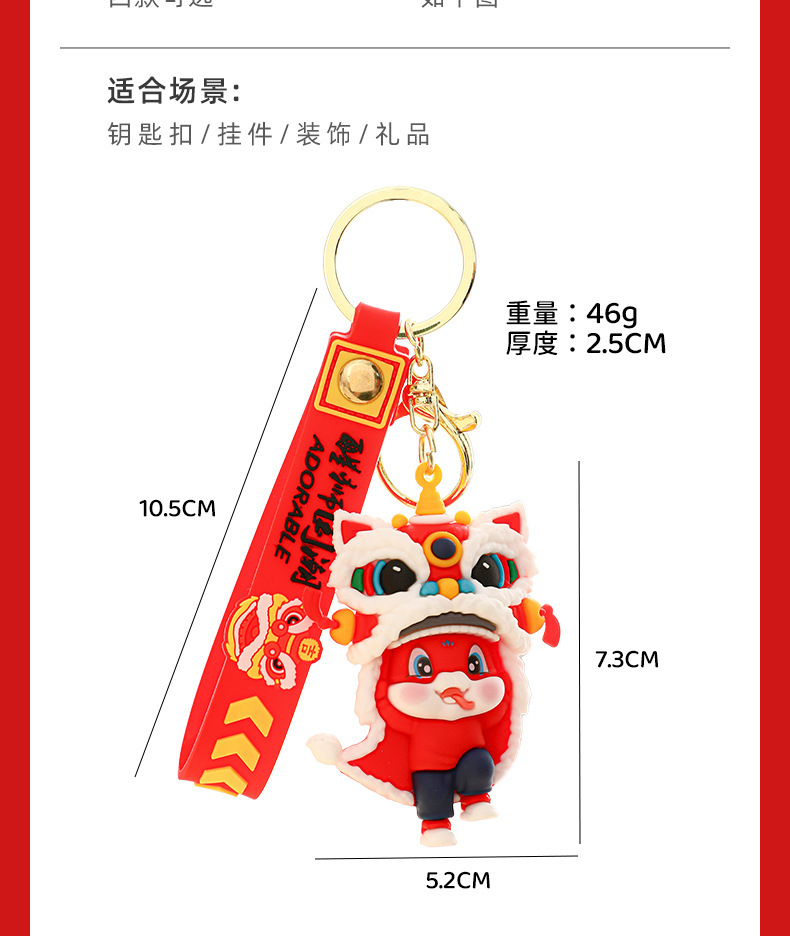 广东醒狮狮头钥匙扣挂件公仔国潮新年喜庆流苏挂饰蛇年小礼品