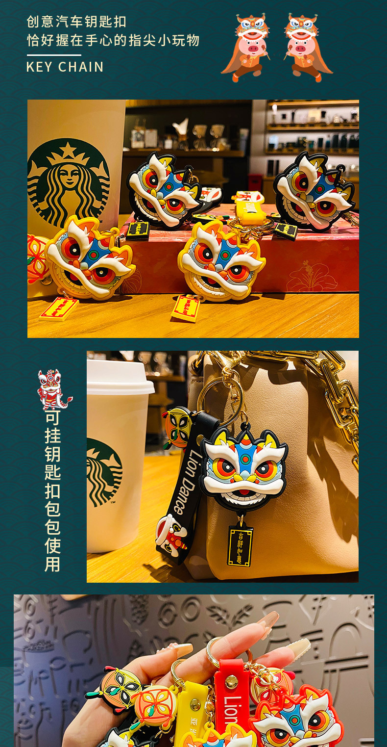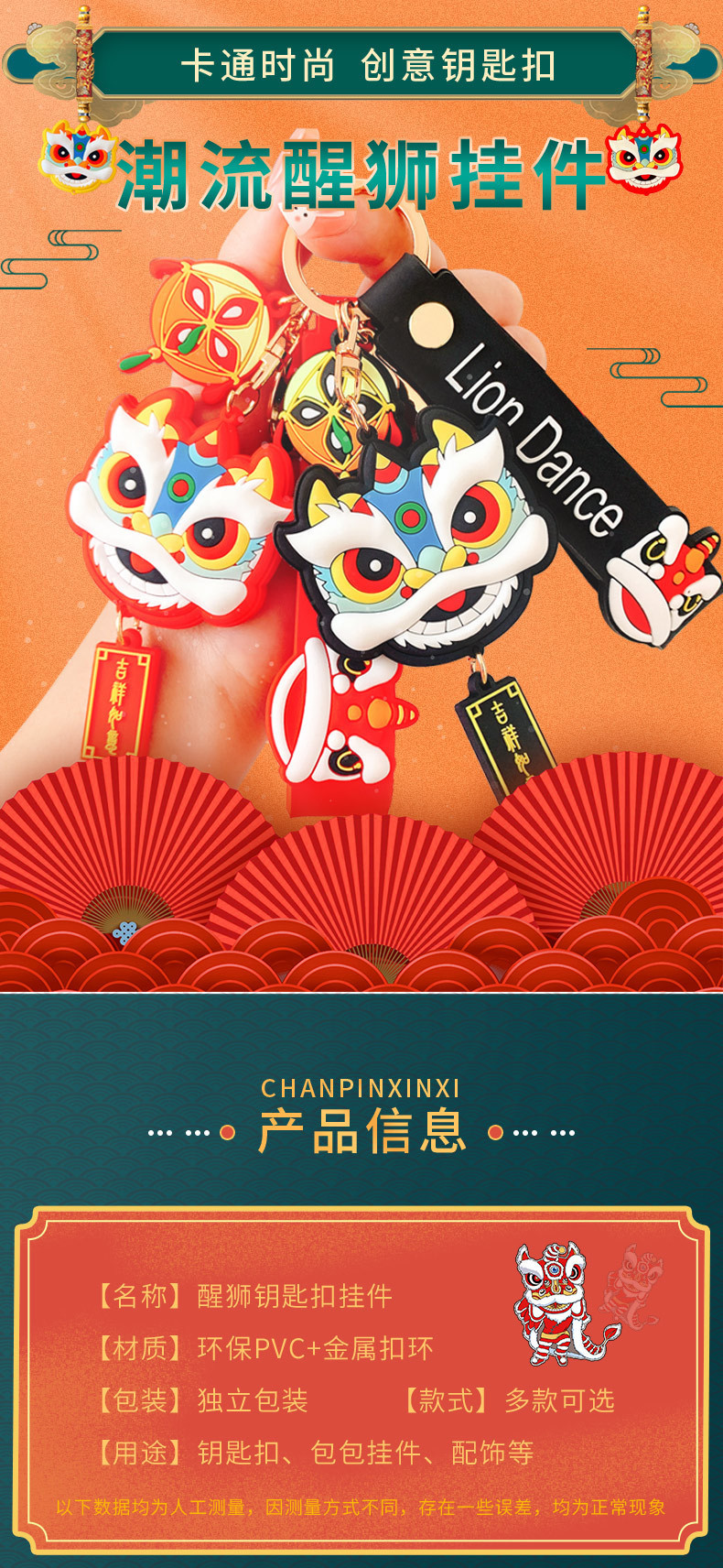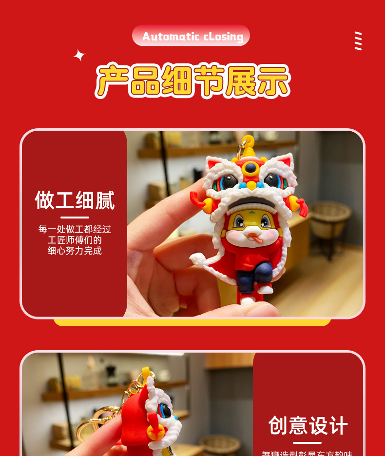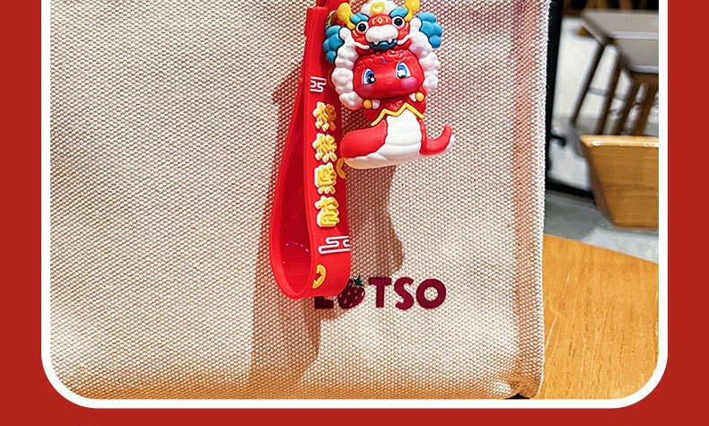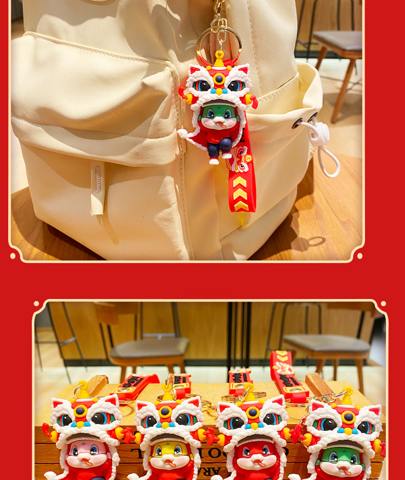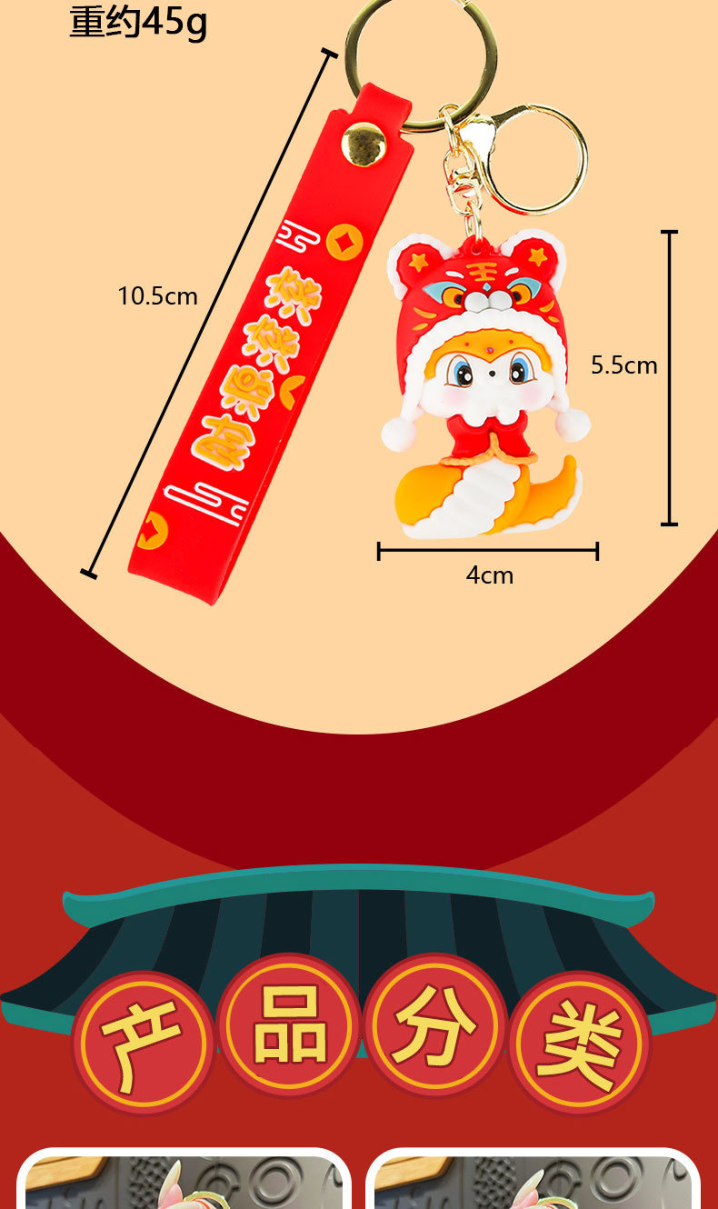 广东醒狮狮头钥匙扣挂件公仔国潮新年喜庆流苏挂饰蛇年小礼品