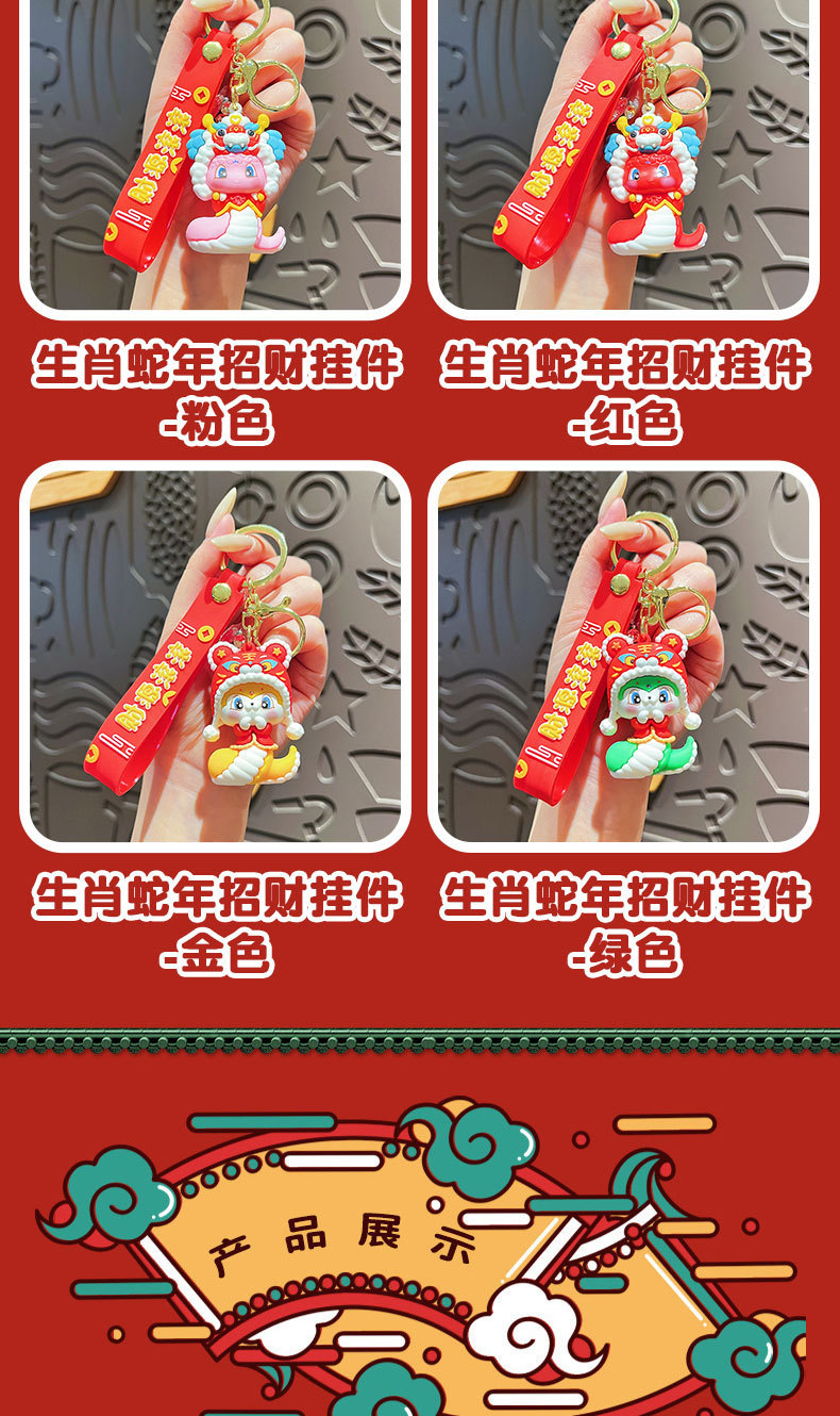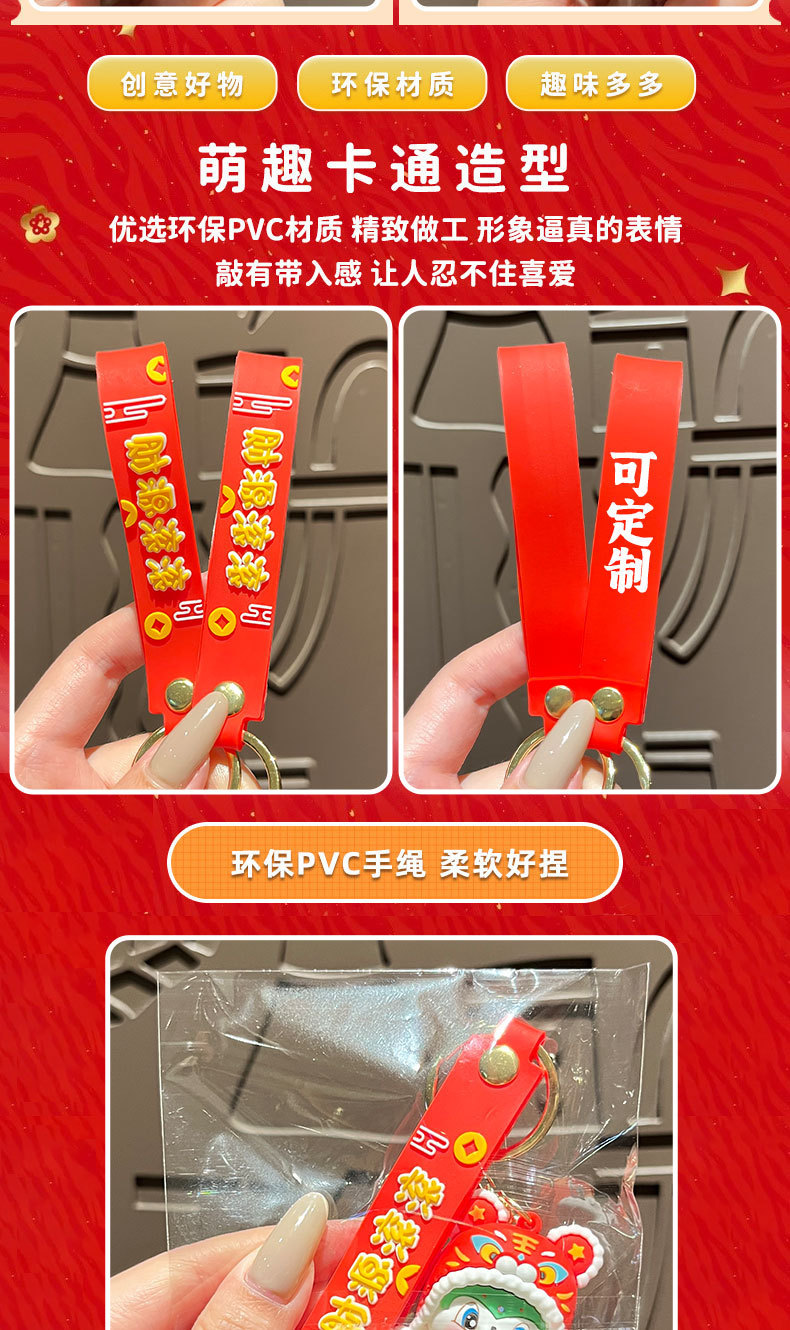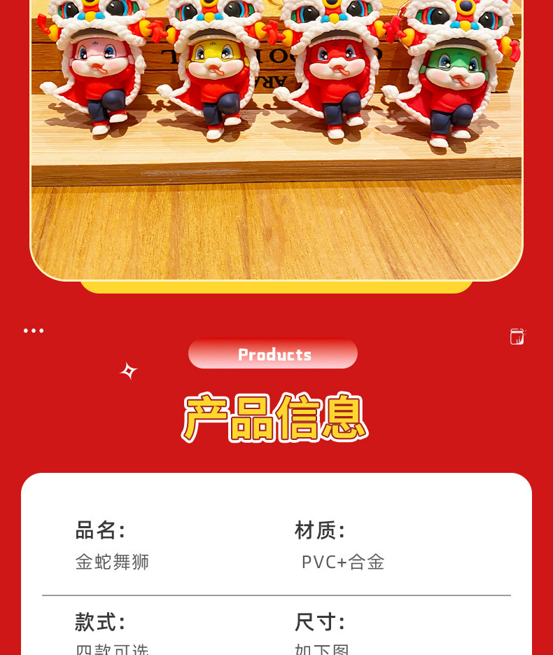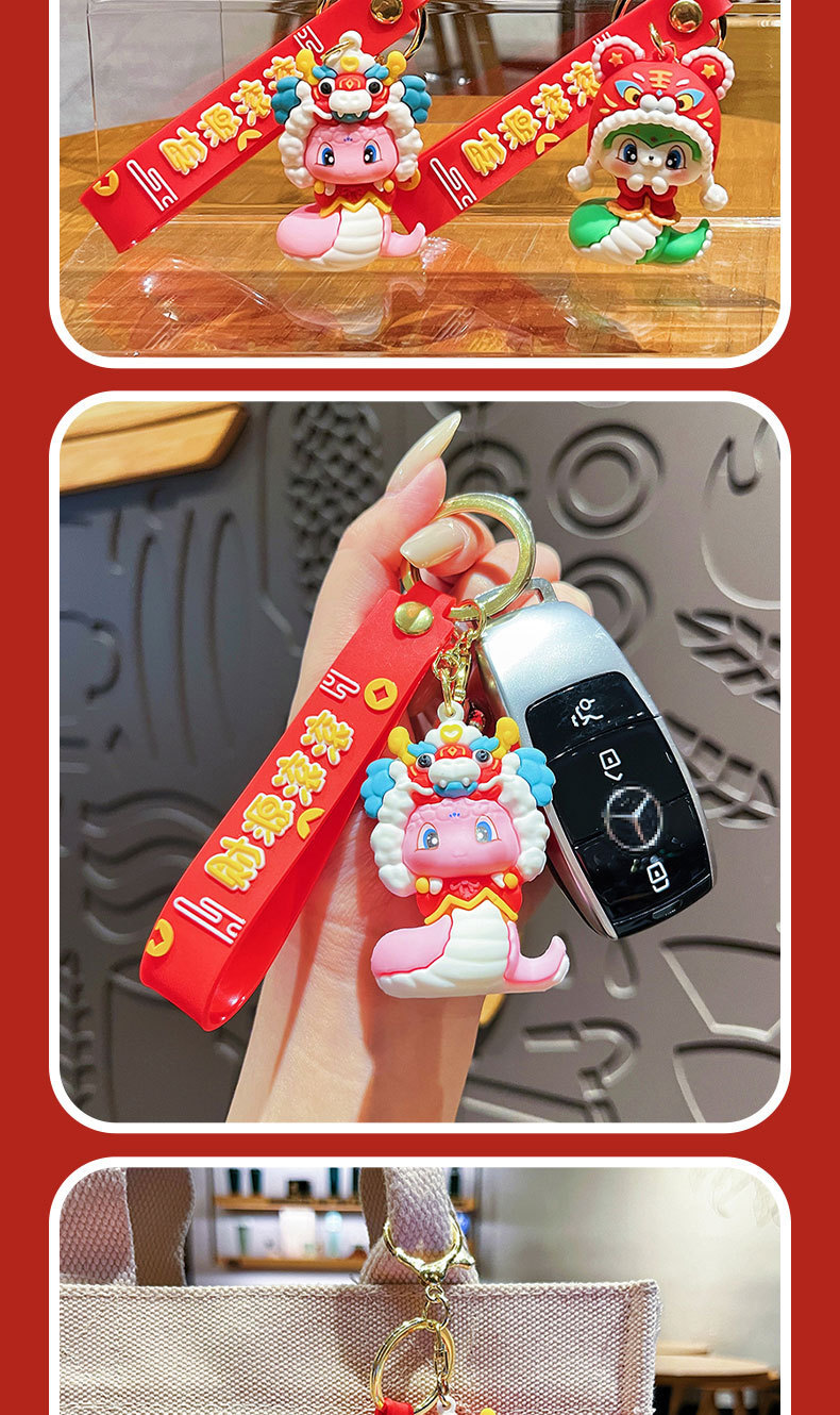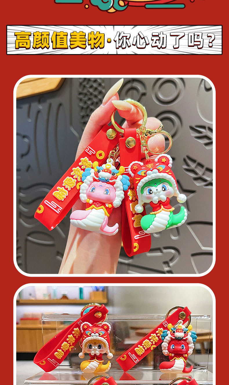 广东醒狮狮头钥匙扣挂件公仔国潮新年喜庆流苏挂饰蛇年小礼品
