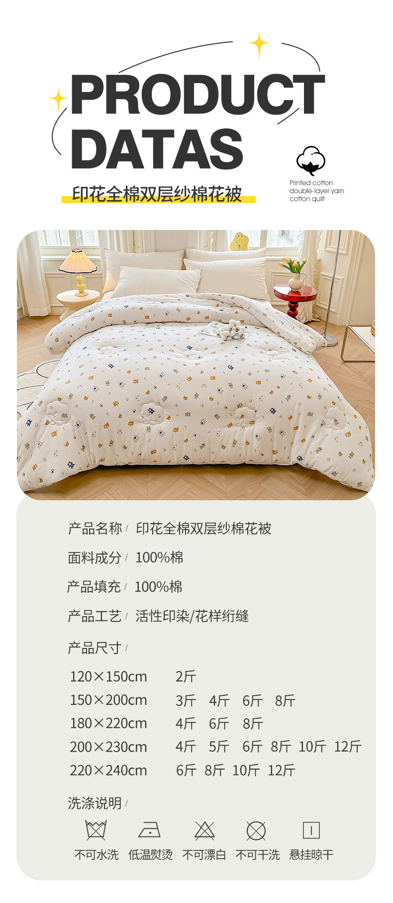 | 220 * 240cm-4.00kg winter quilt(220*240cm-8斤冬被) | USD $36.35 | 1990 bed available |