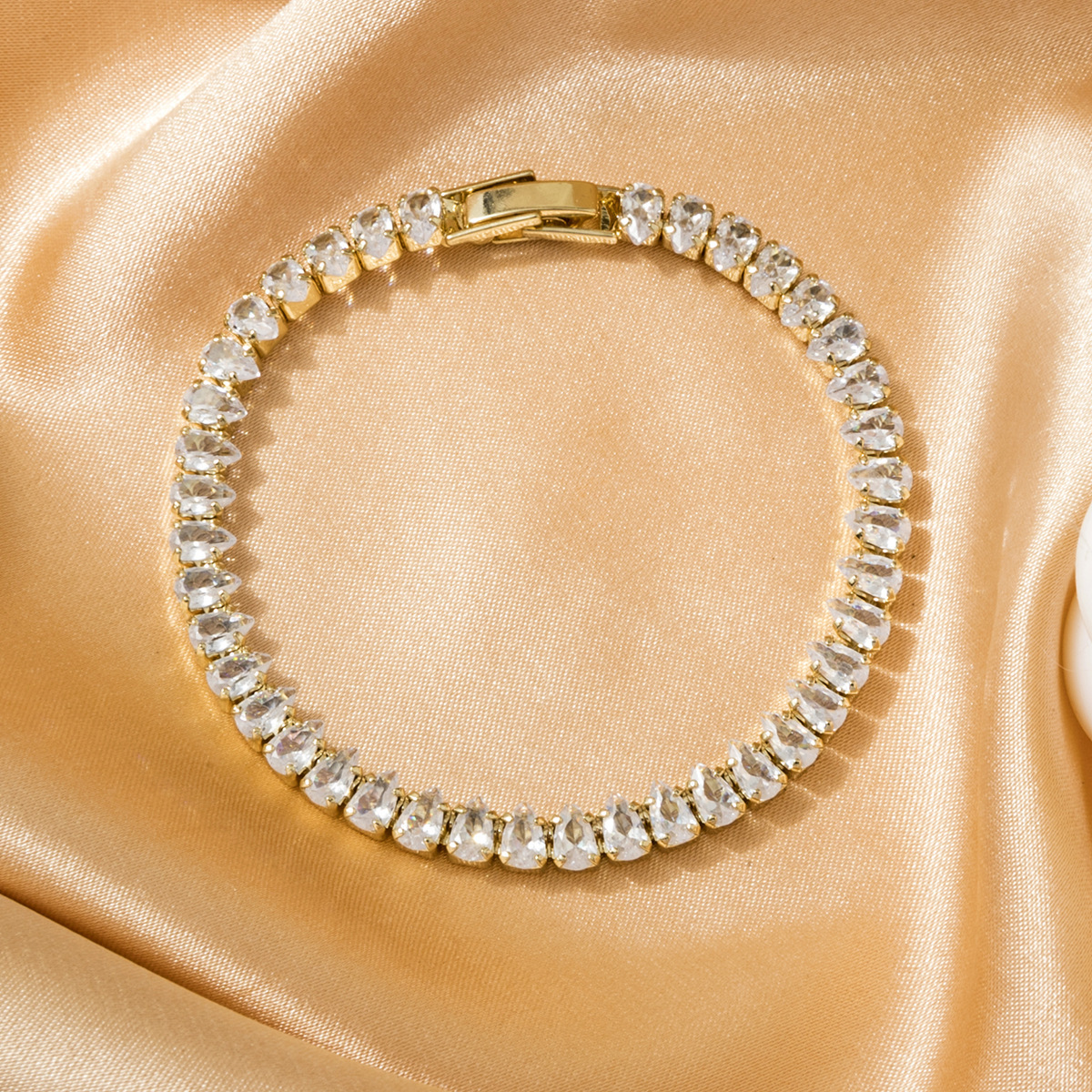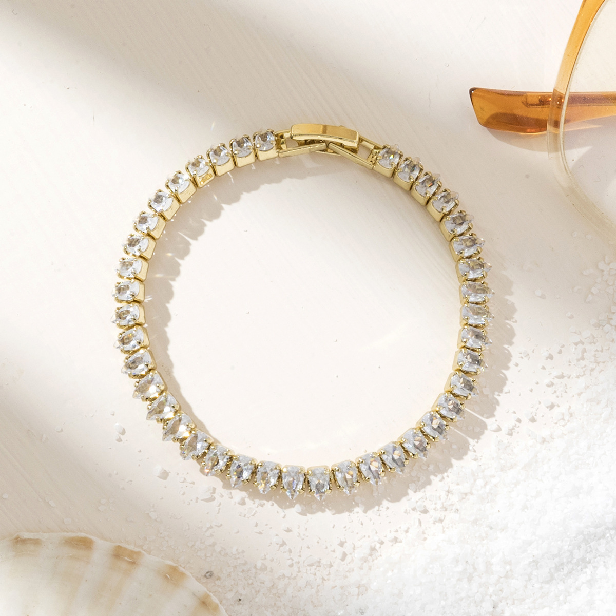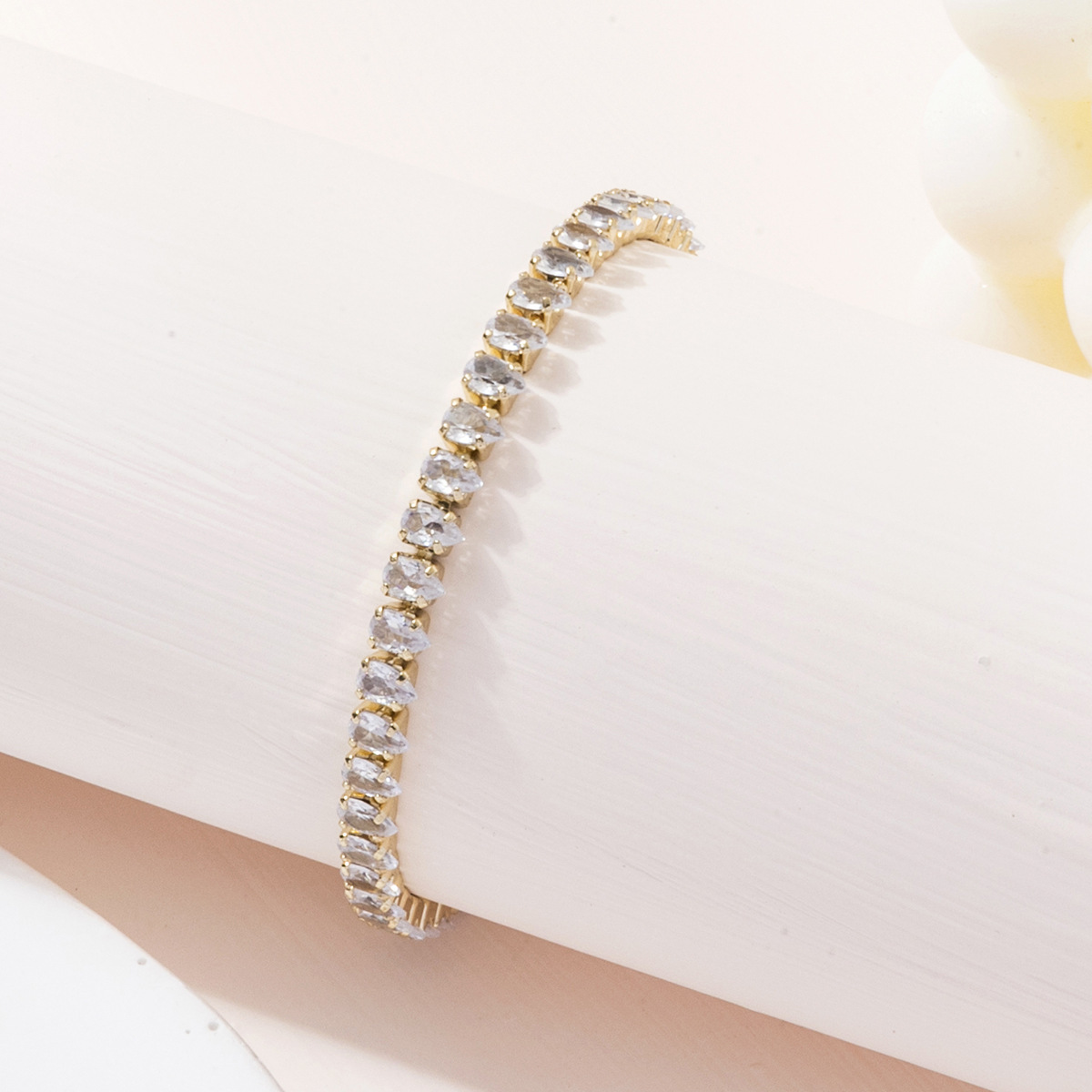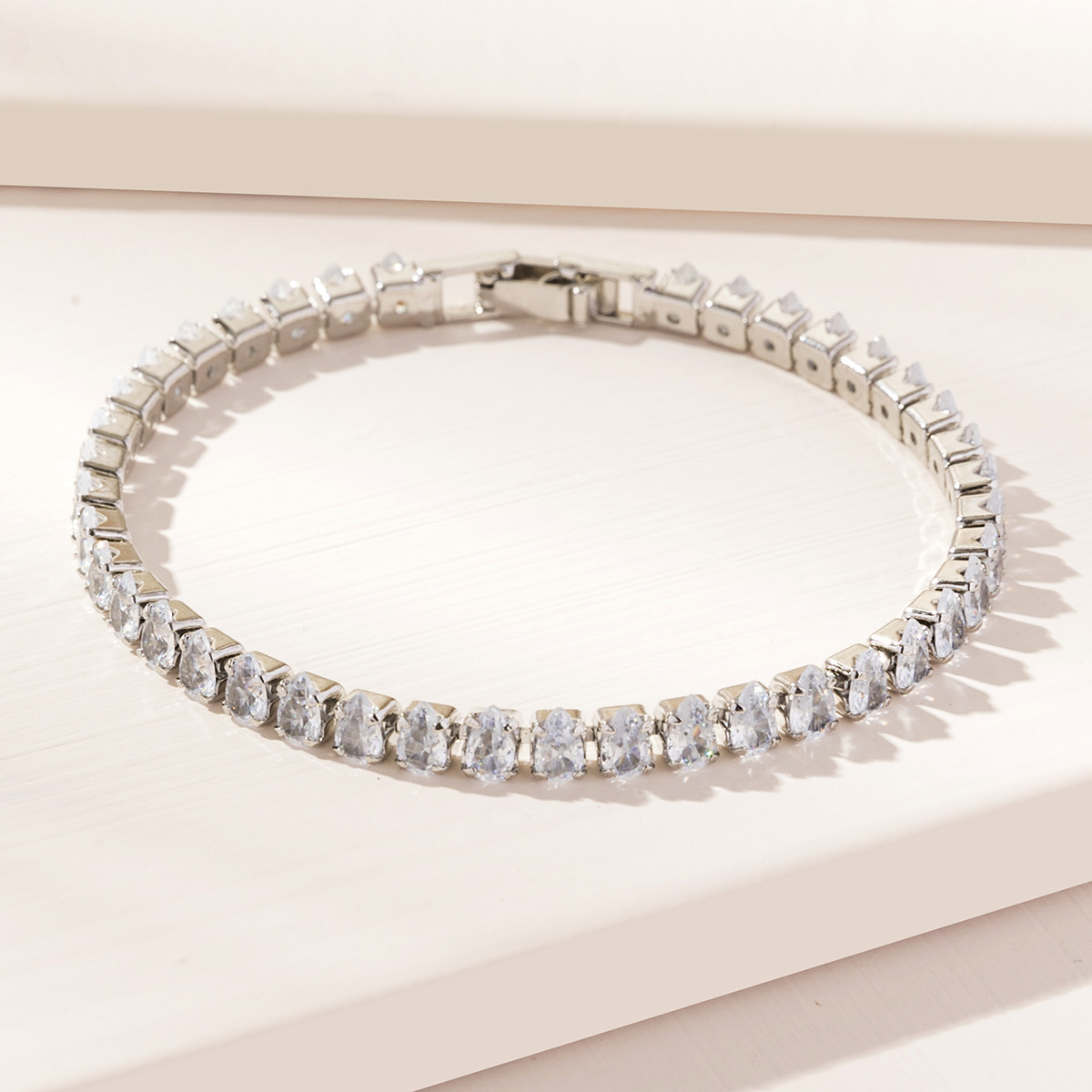 新款镶水滴锆石手链单排满钻高品质轻奢个性手镯跨境男女手饰批发
