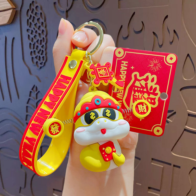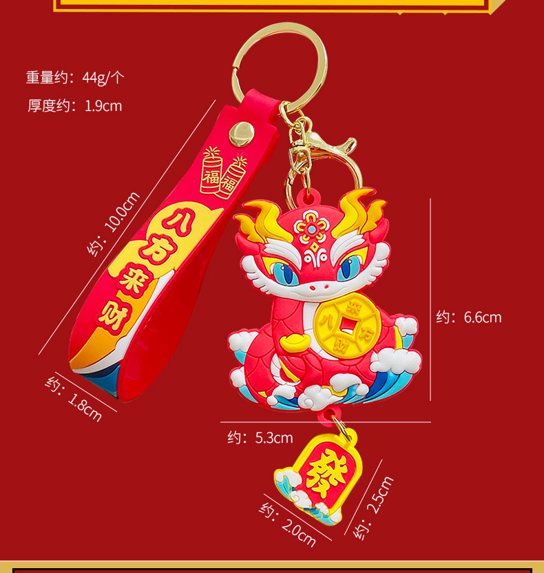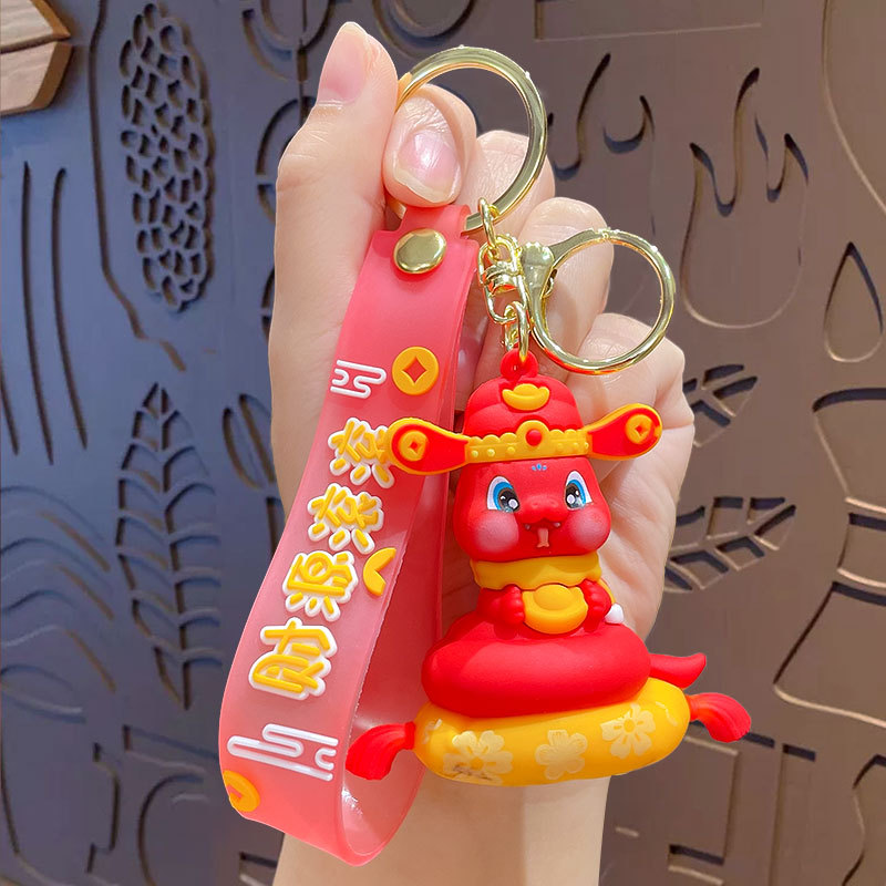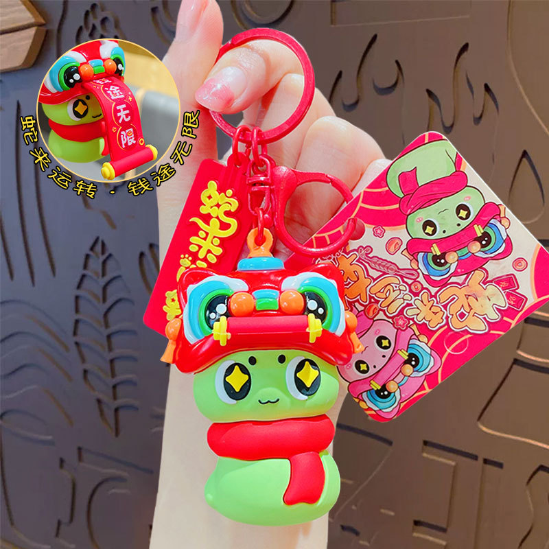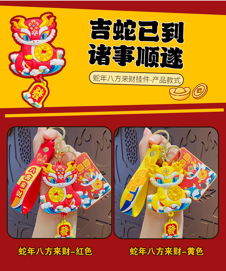 卡通国潮八方来财蛇年钥匙扣公仔小挂件包包钥匙链挂饰新年小礼品