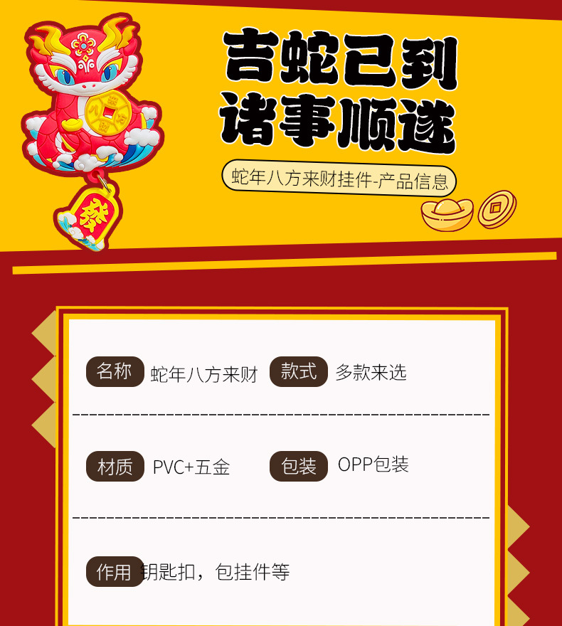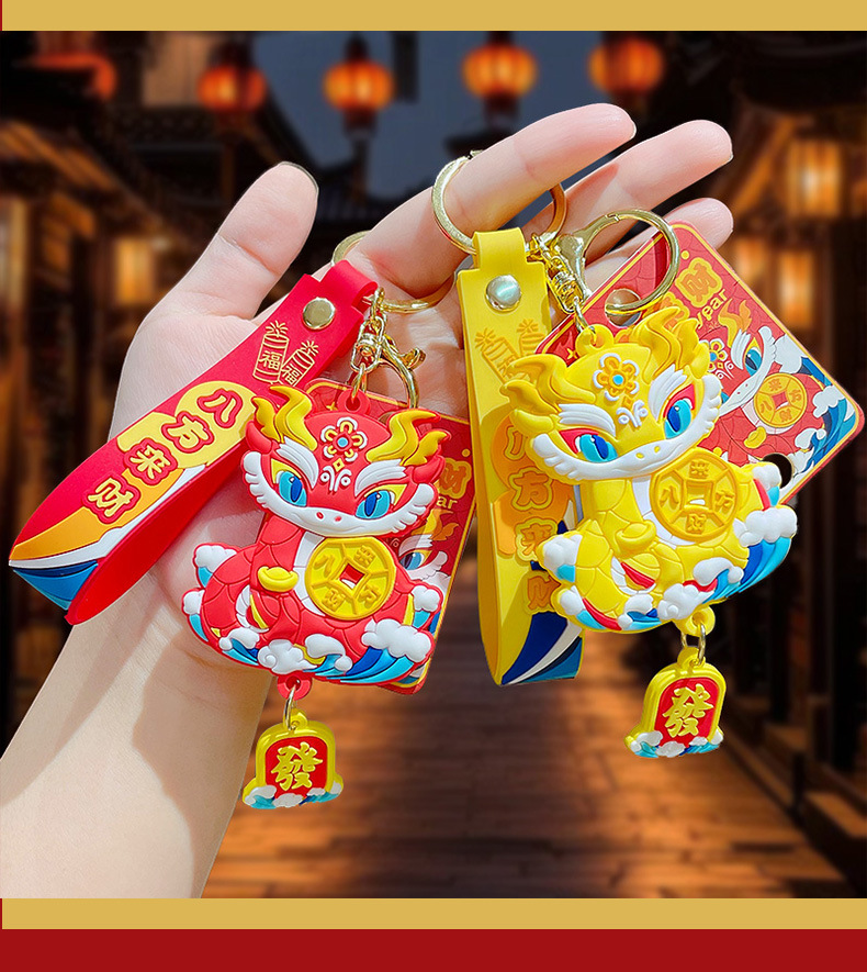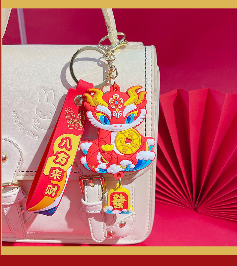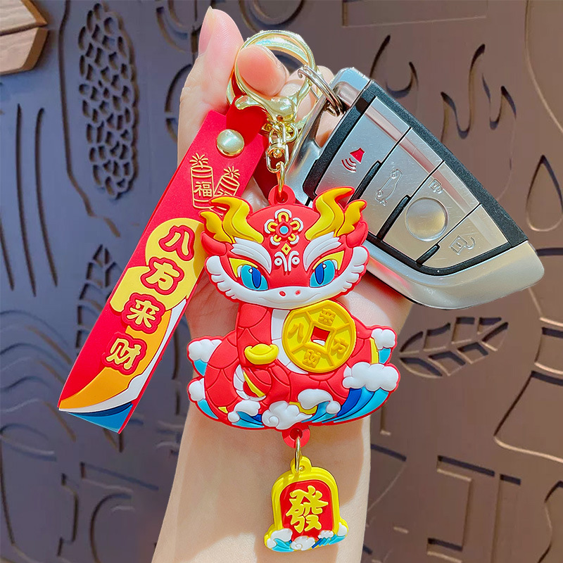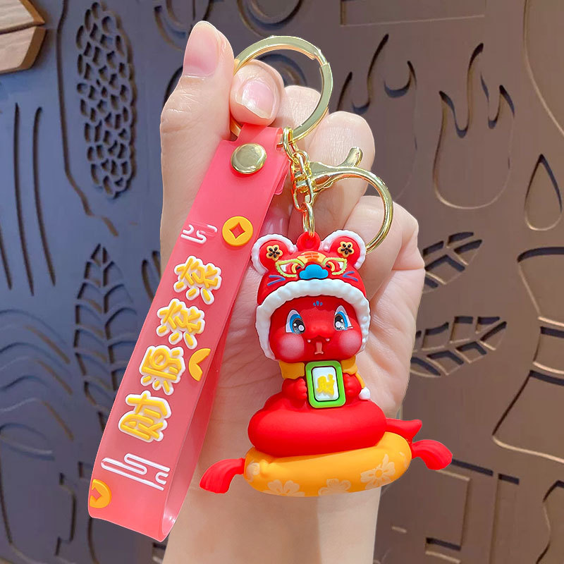 卡通国潮八方来财蛇年钥匙扣公仔小挂件包包钥匙链挂饰新年小礼品