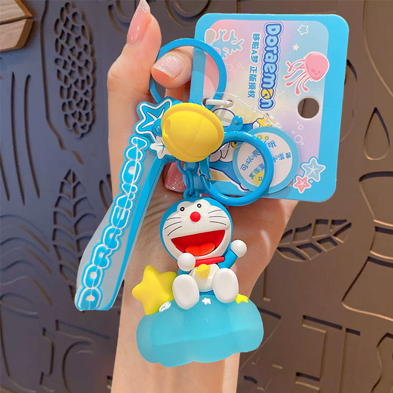 正版卡通哆啦A梦钥匙扣挂件可爱叮当猫公仔车钥匙链包包礼品批发