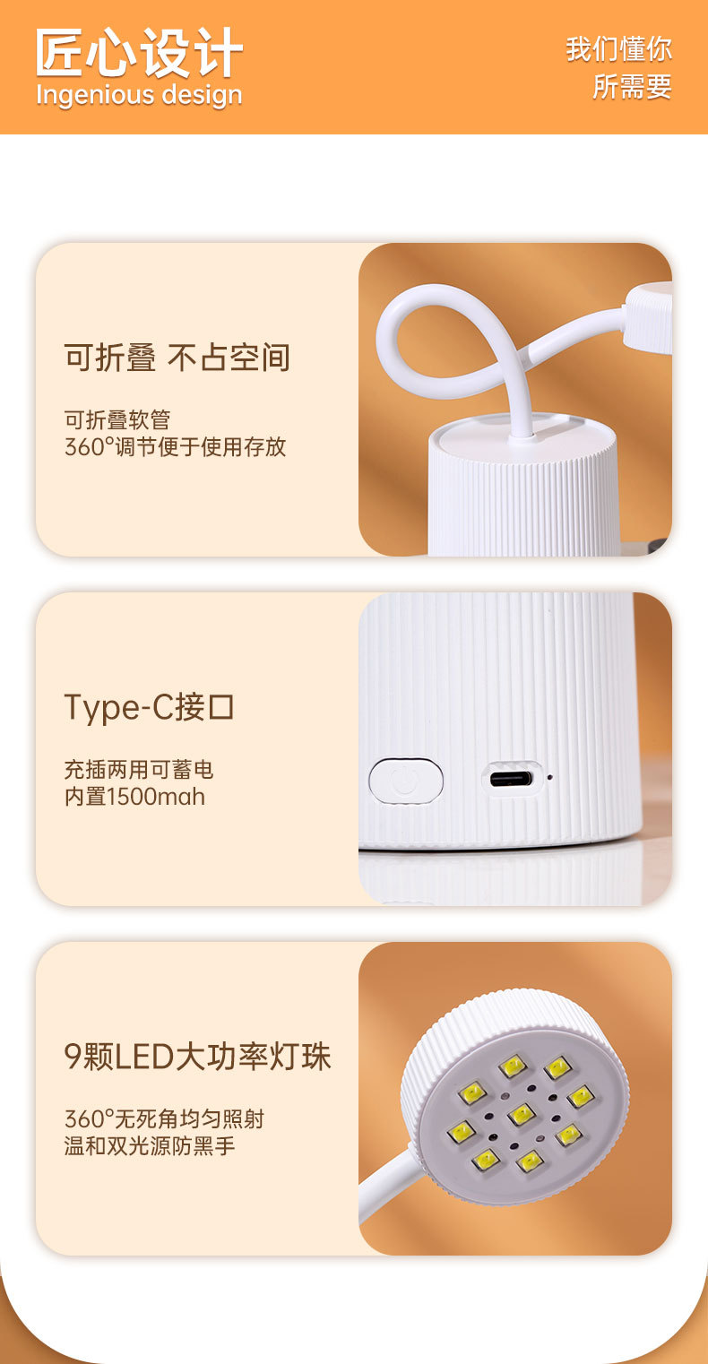新款莲花灯美甲感应款台式蓄电美甲灯鹅颈灯贴甲片光疗灯速干M1U