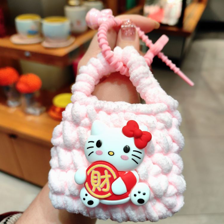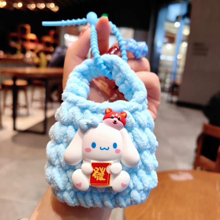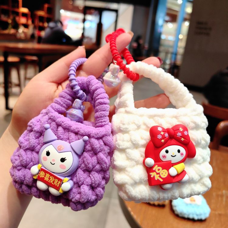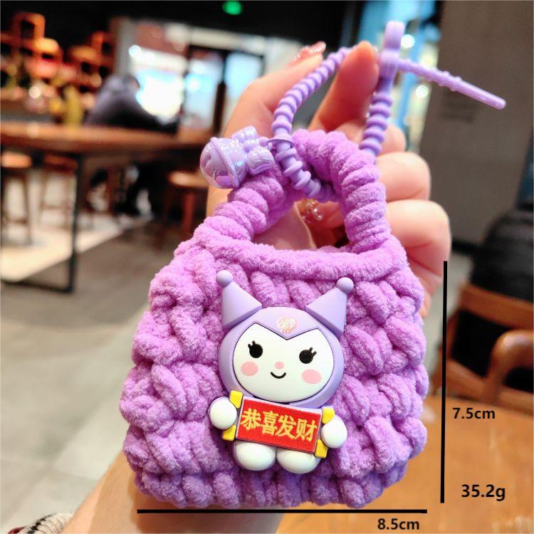 卡通三丽鸥钥匙扣挂件毛线手工编织零钱包耳机包迷你收纳包小礼品