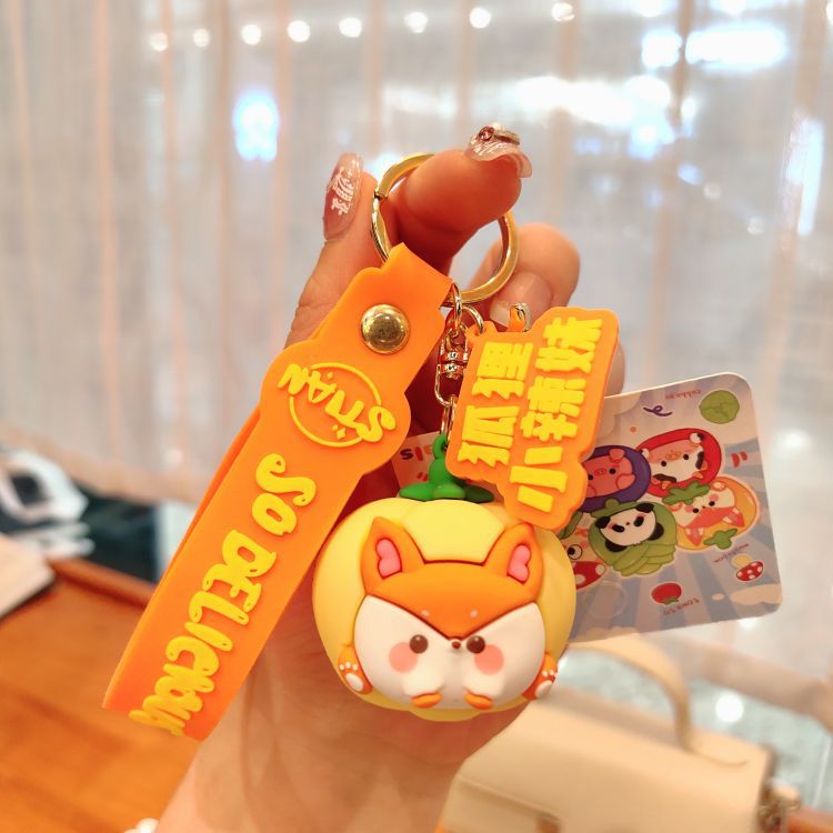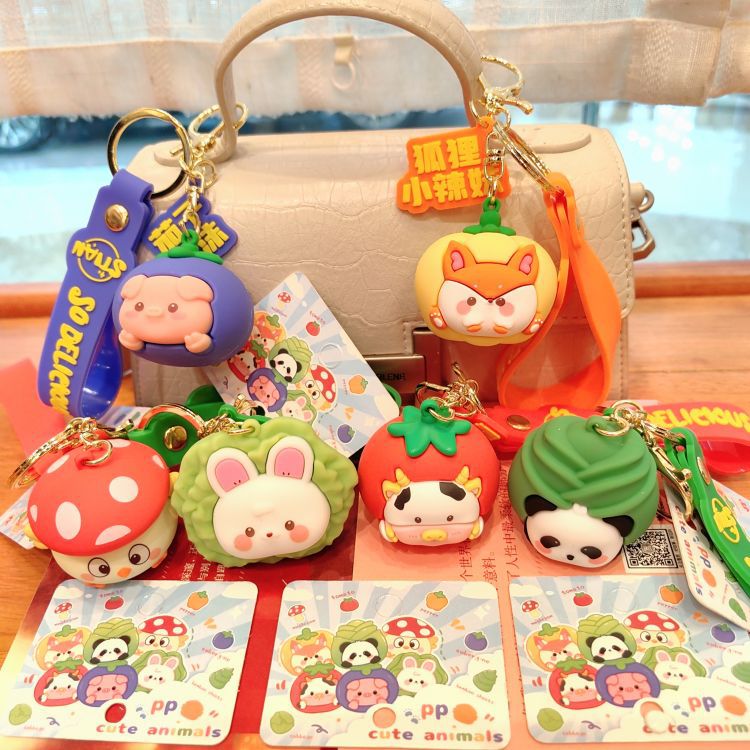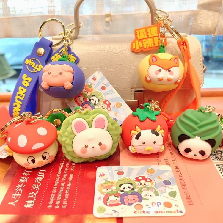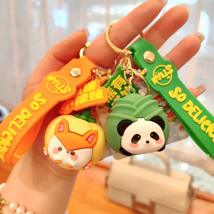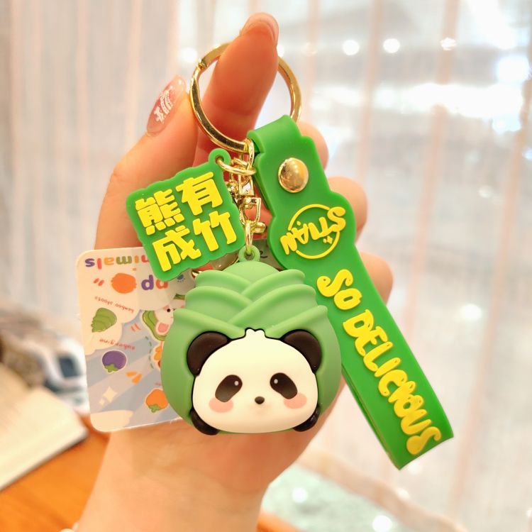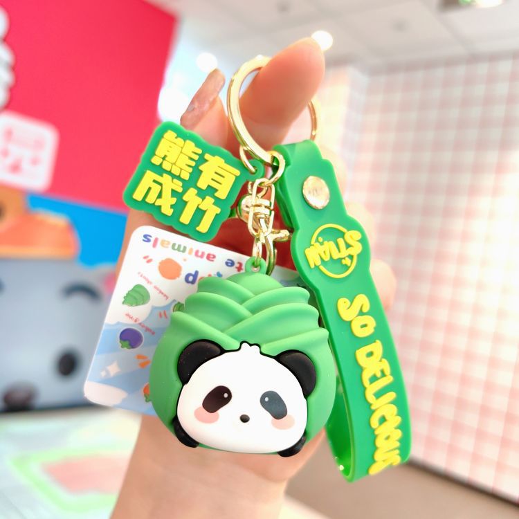 正版卡通动物蔬菜乐园钥匙扣可爱动物熊猫公仔钥匙链包包挂件礼品