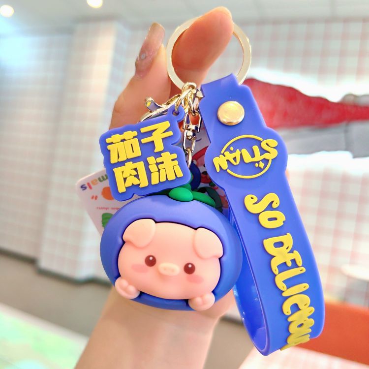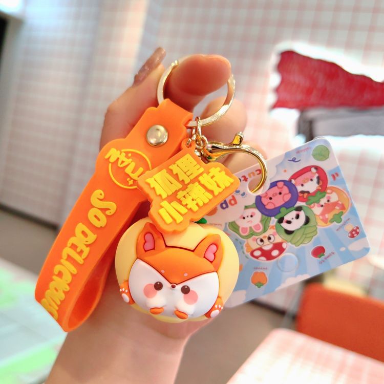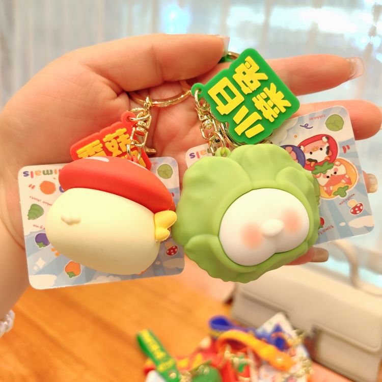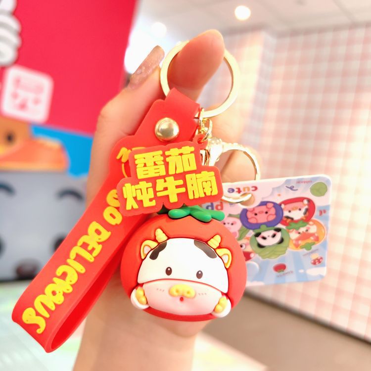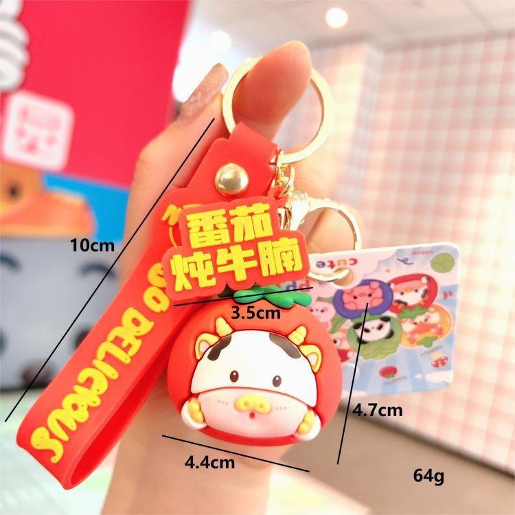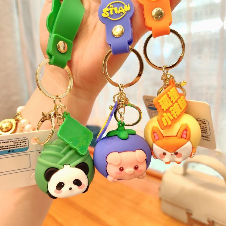 正版卡通动物蔬菜乐园钥匙扣可爱动物熊猫公仔钥匙链包包挂件礼品