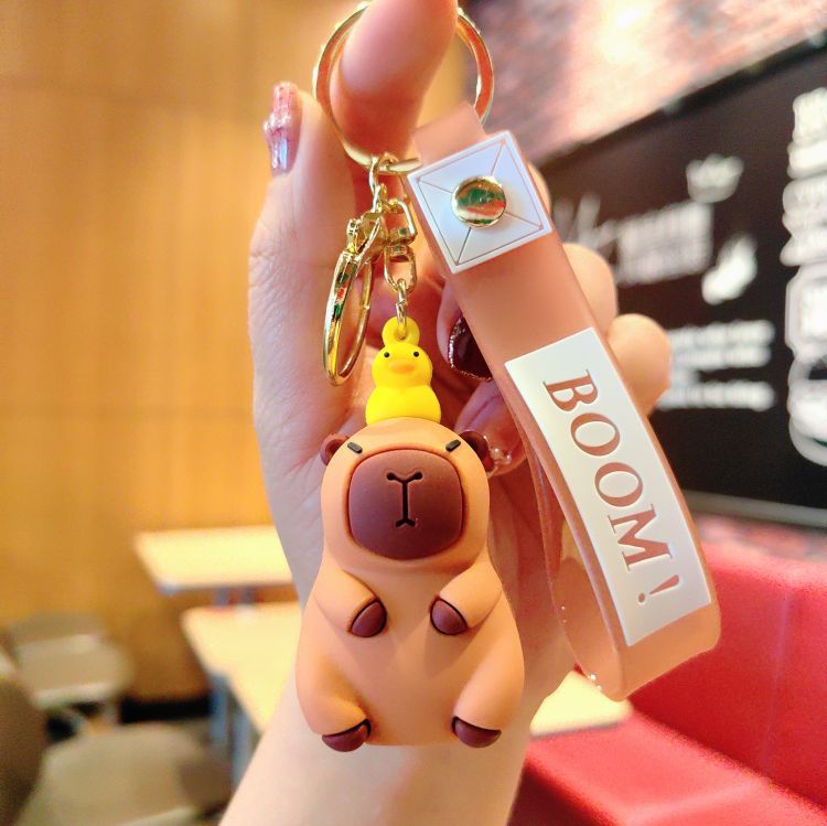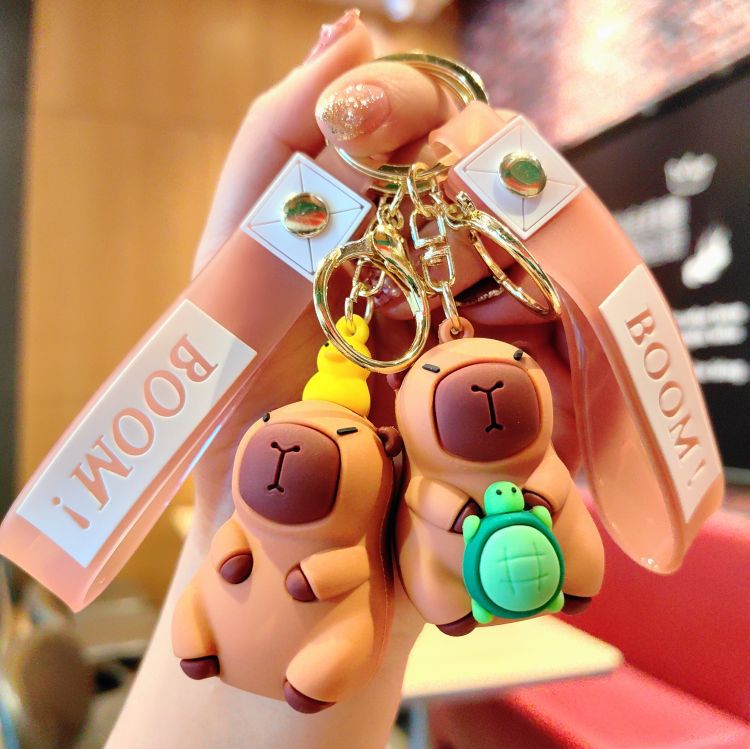 网红创意卡通小水豚钥匙扣可爱公仔汽车钥匙链包包挂件小礼品批发