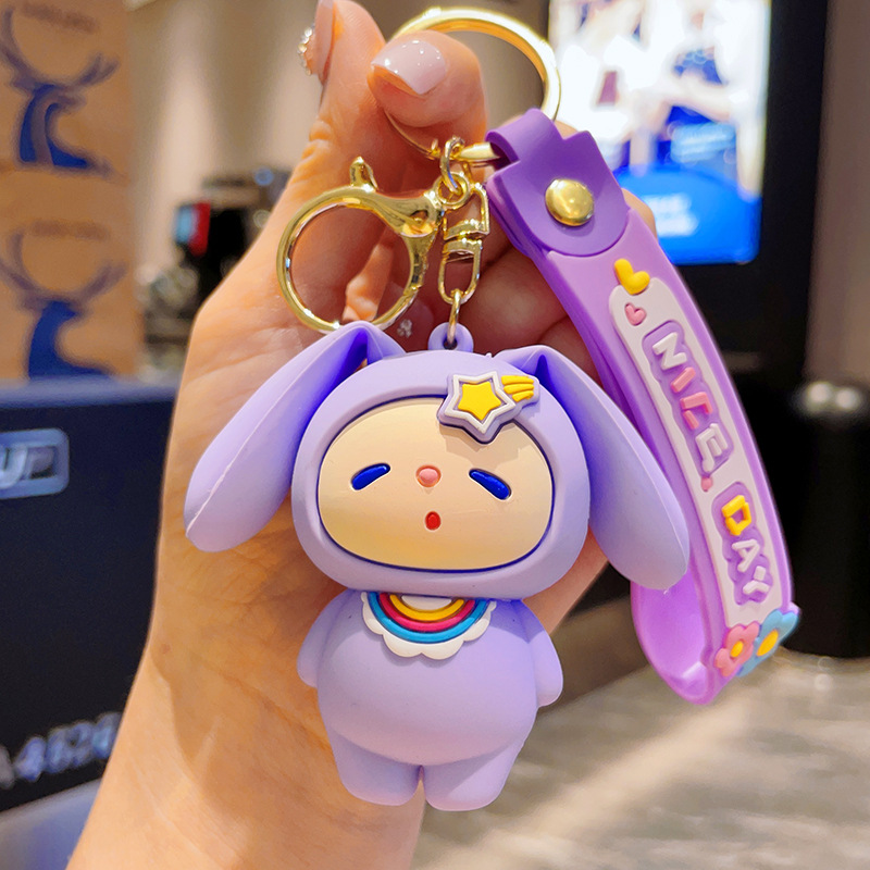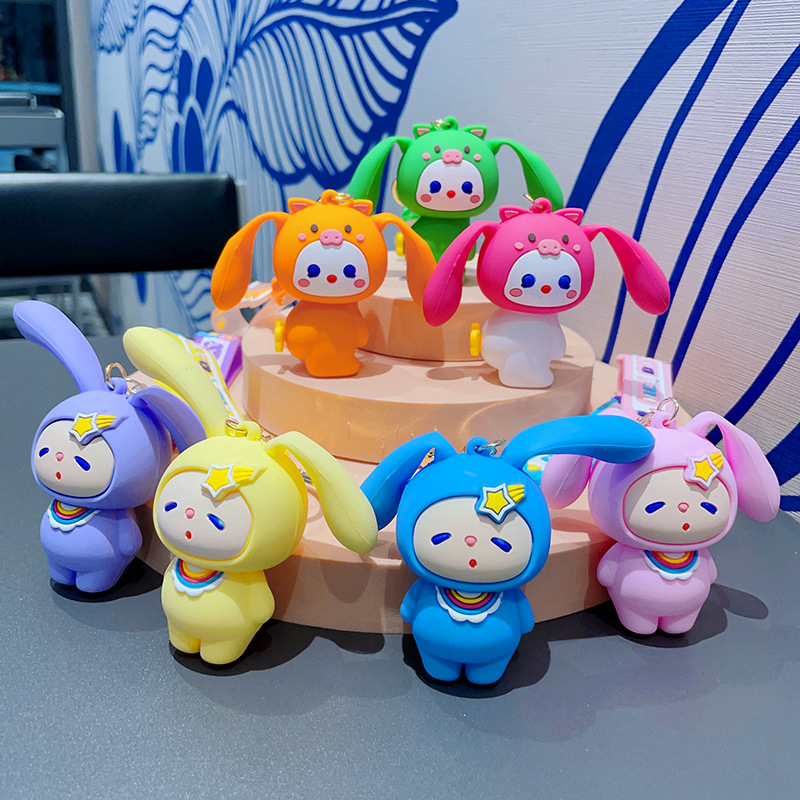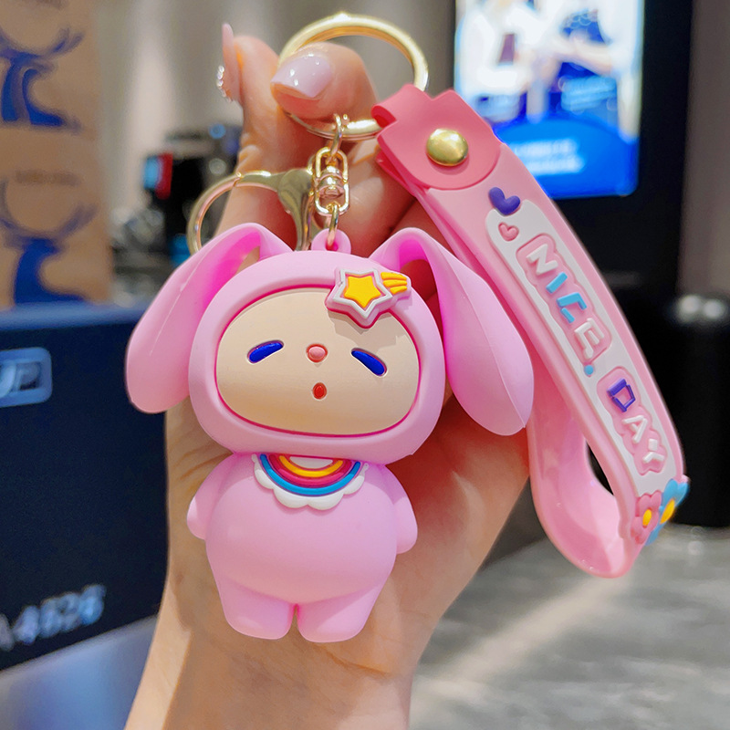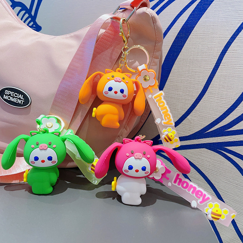 新款萌萌公仔捏耳兔钥匙扣可爱汽车钥匙链解压包包挂件小礼品批发