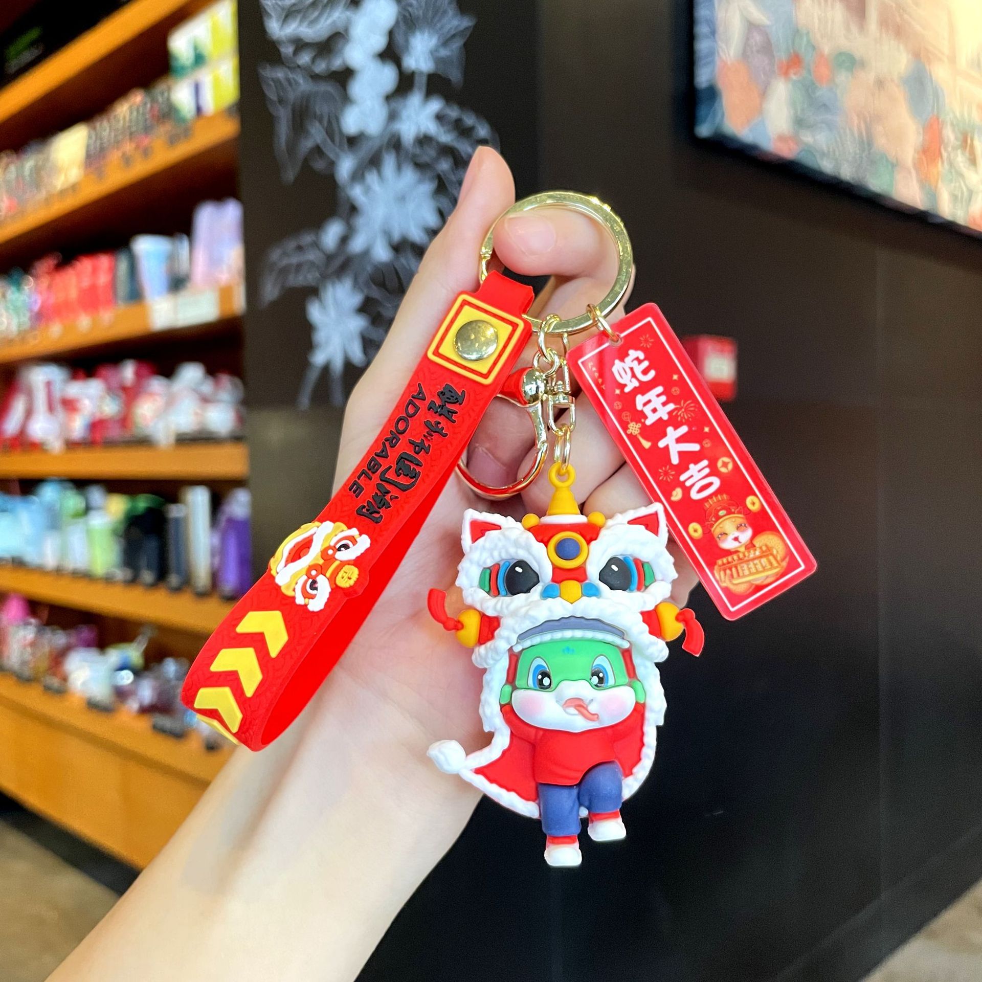 2025新款卡通蛇年醒狮小蛇钥匙扣女可爱精致公仔书包钥匙链挂件