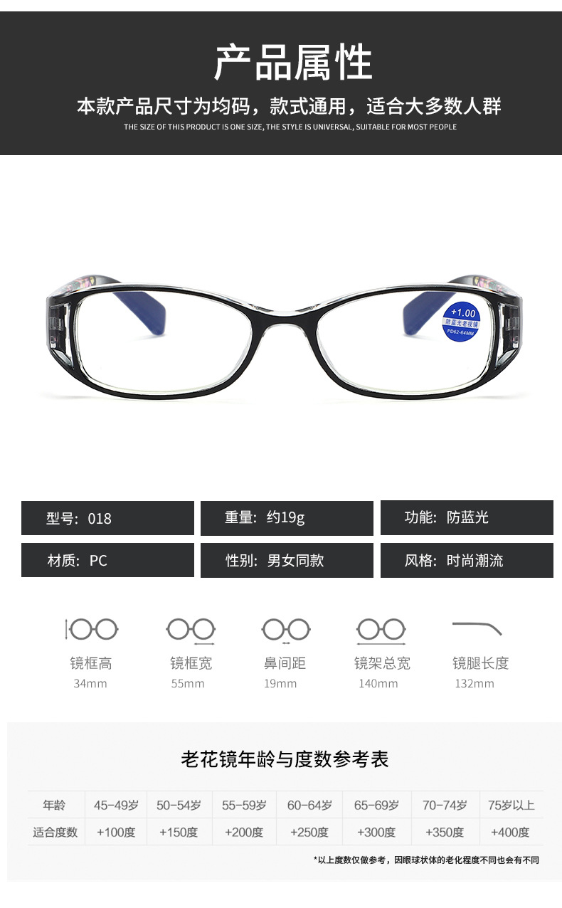 新款跨境防蓝光老花镜 男女pc跑江湖地摊老花眼镜 老人高清阅读镜