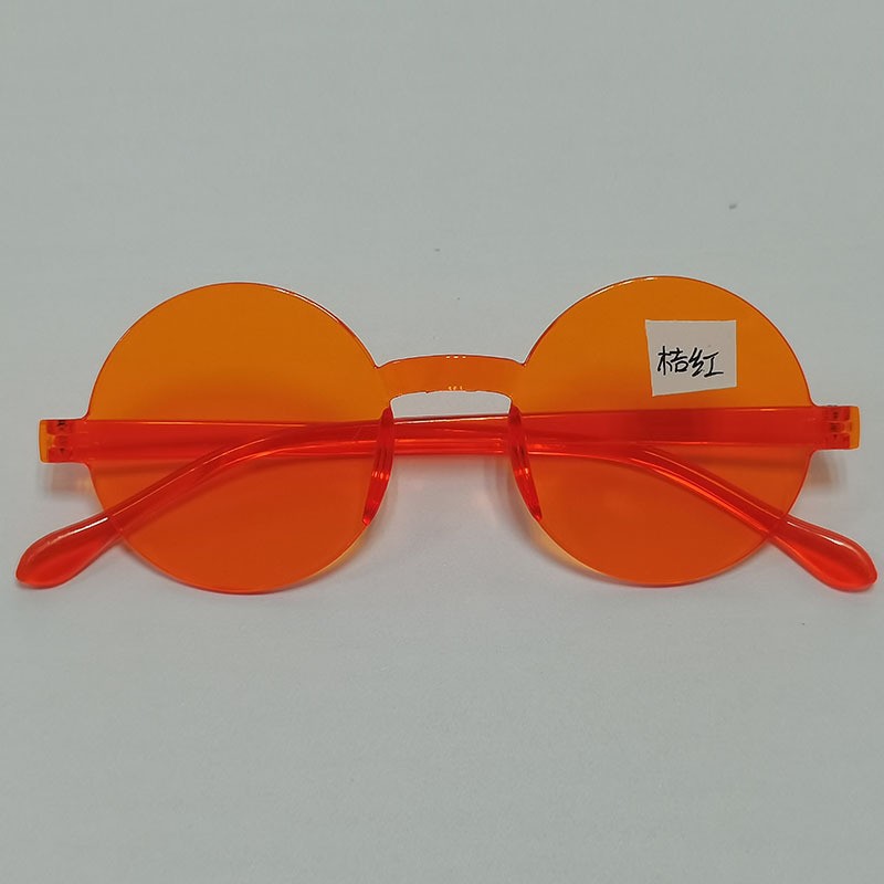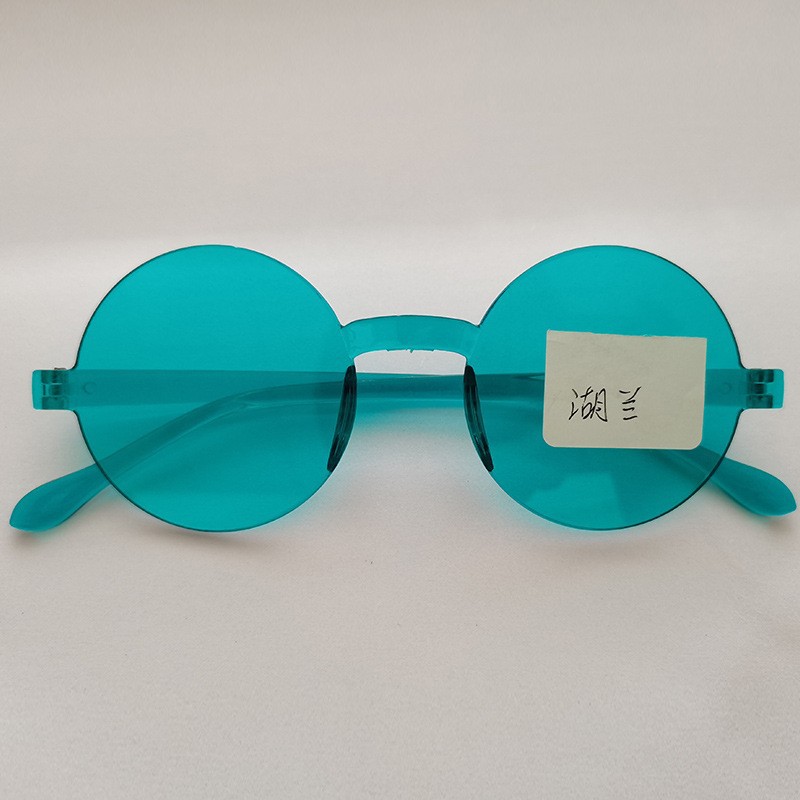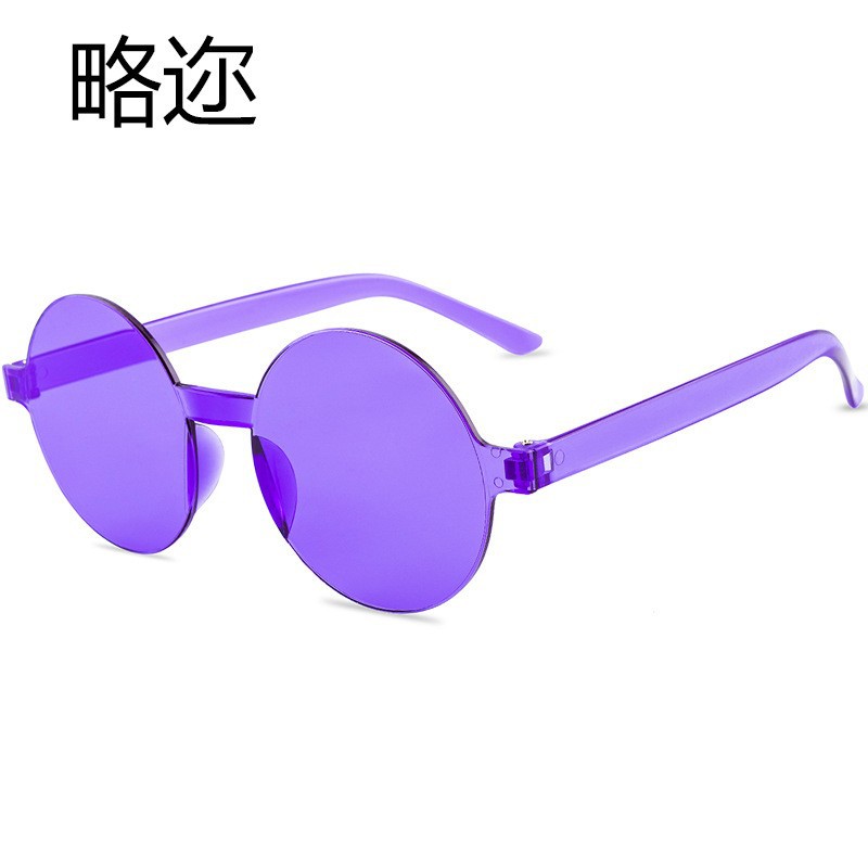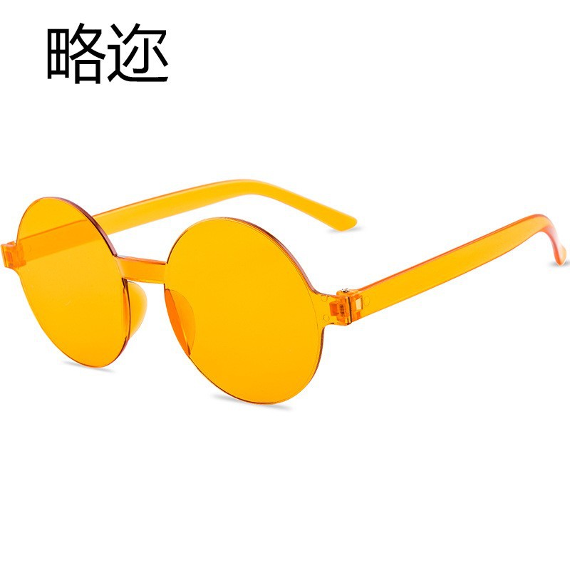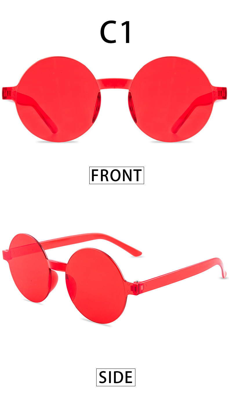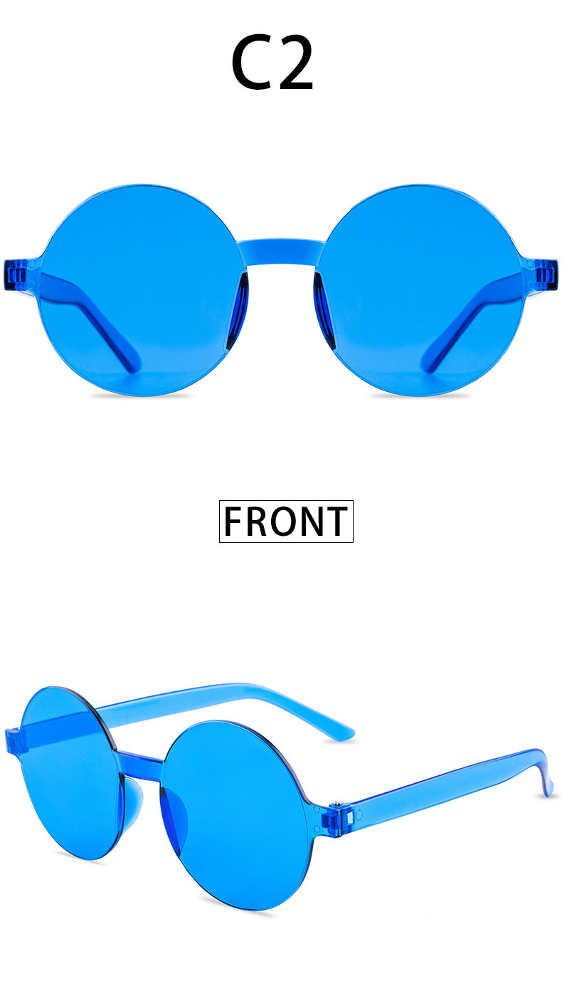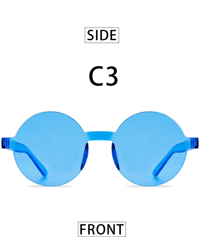 112糖果色圆形太阳镜欧美潮流圆形无框PC连体海洋片墨镜舞会系列