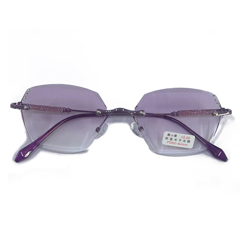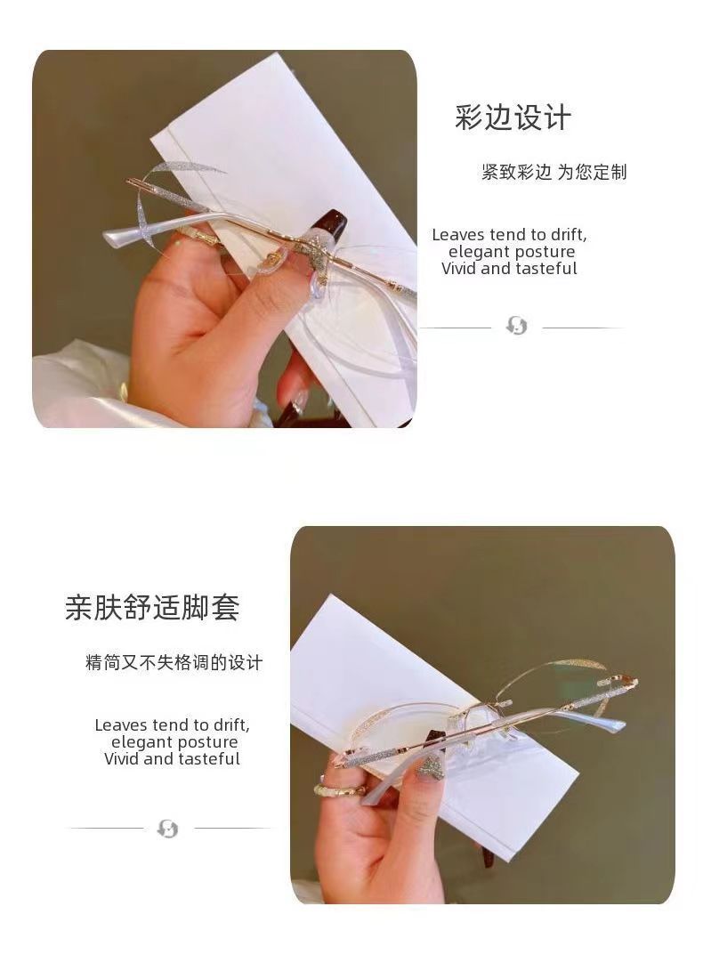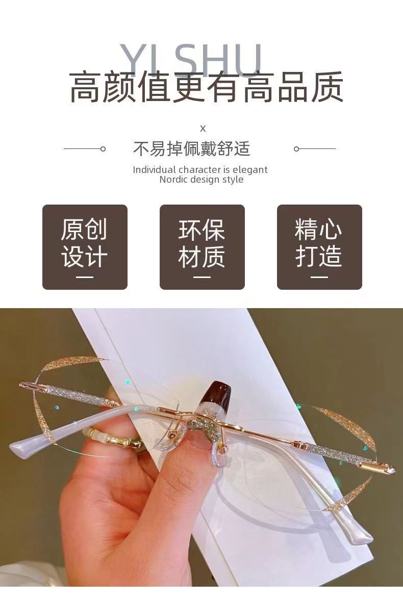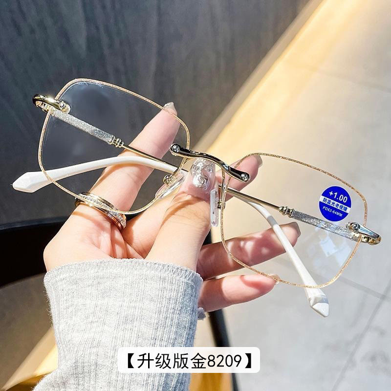 新品时尚减龄女士防蓝光老花镜高清超轻超轻金属钻石切边无框眼镜