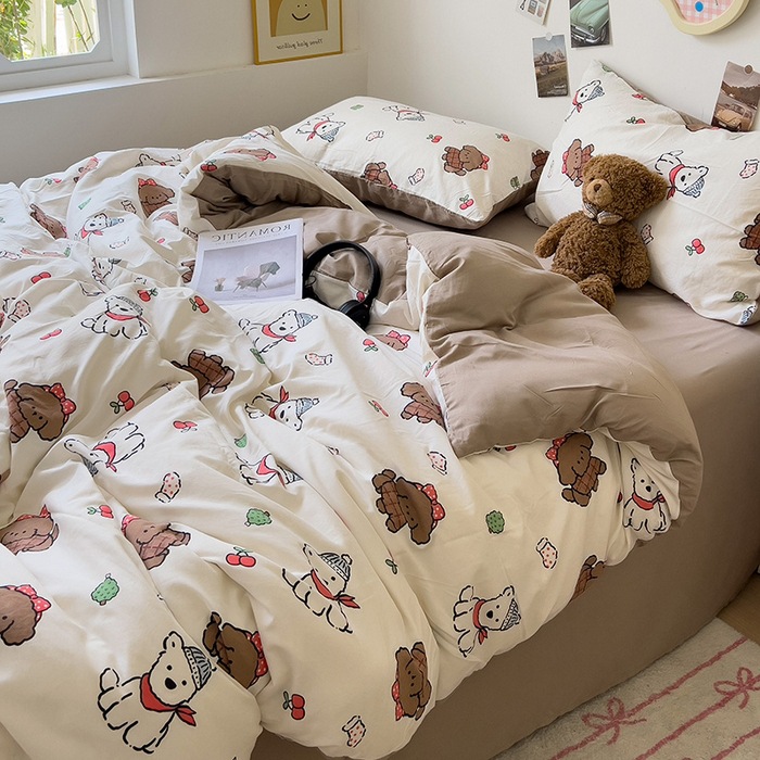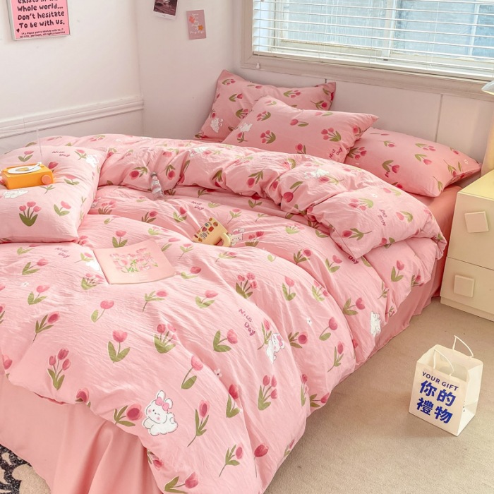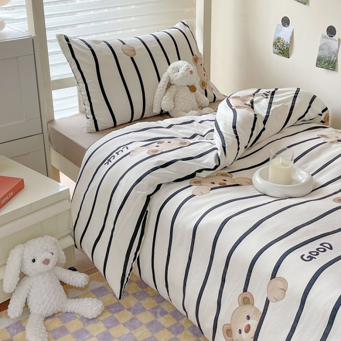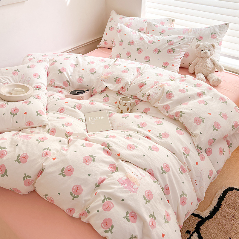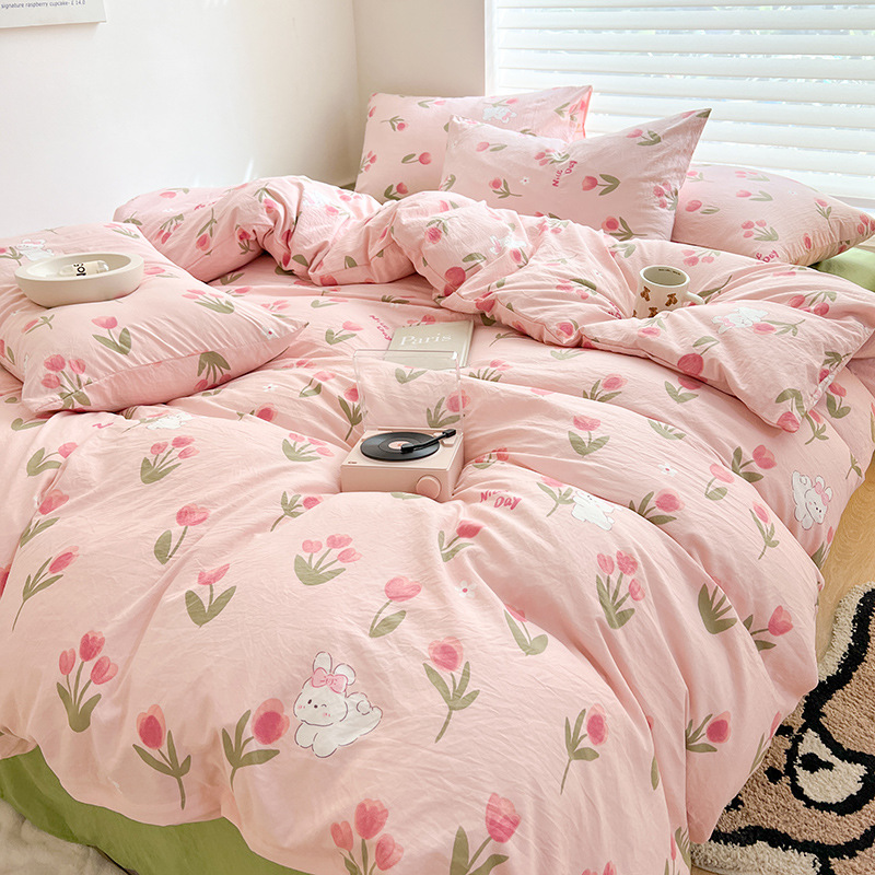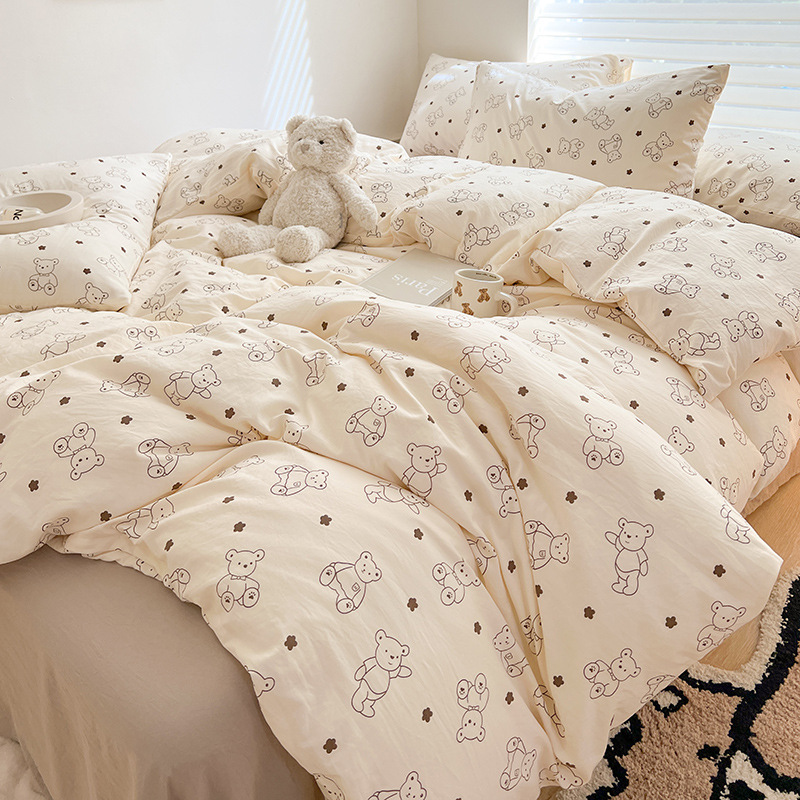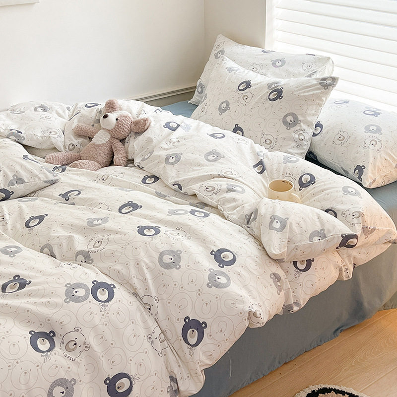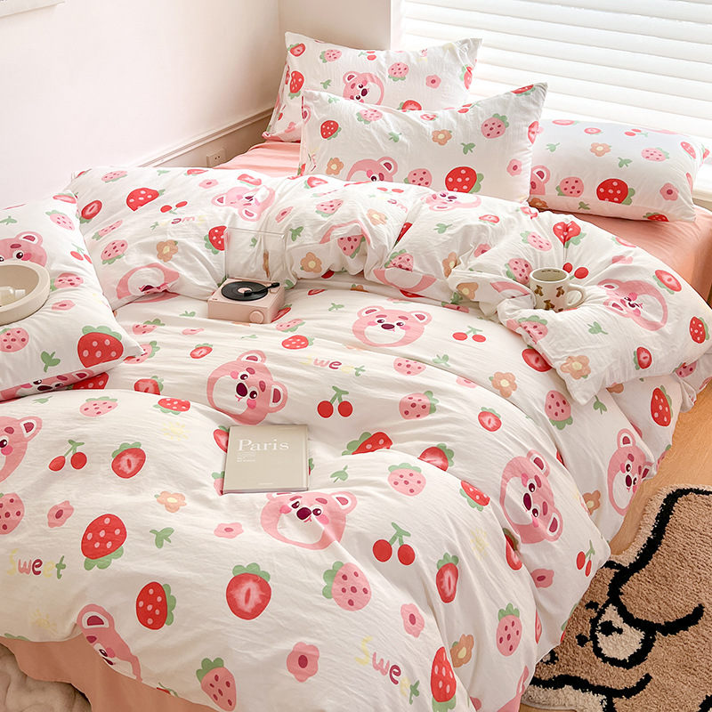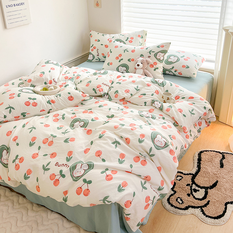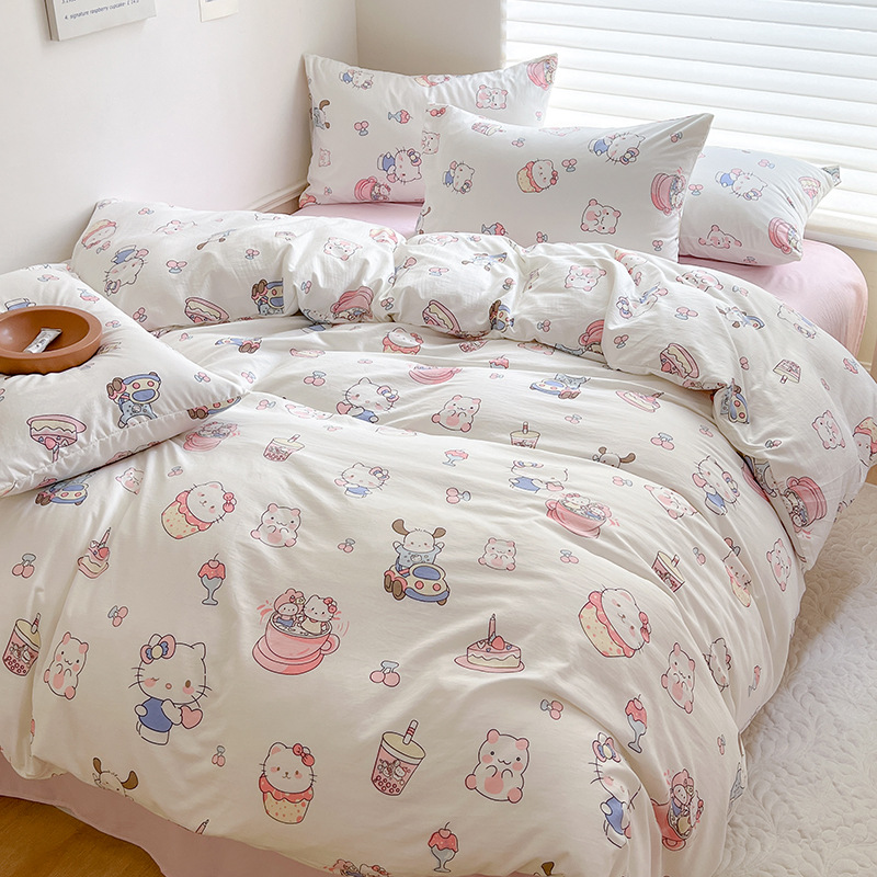 A类双层纱四件套学生宿舍床上用品卡通可爱被套床笠款棉麻三件套