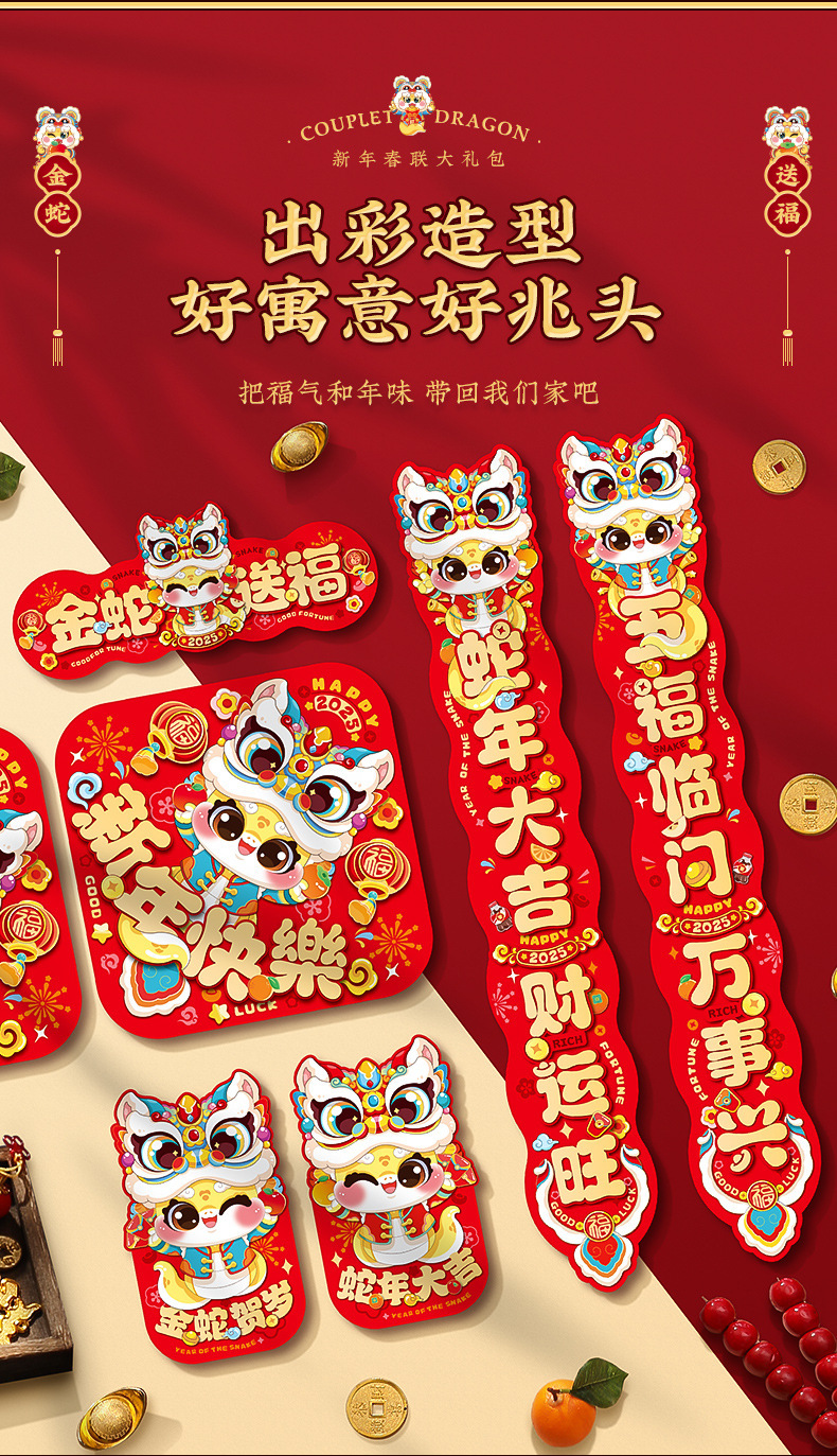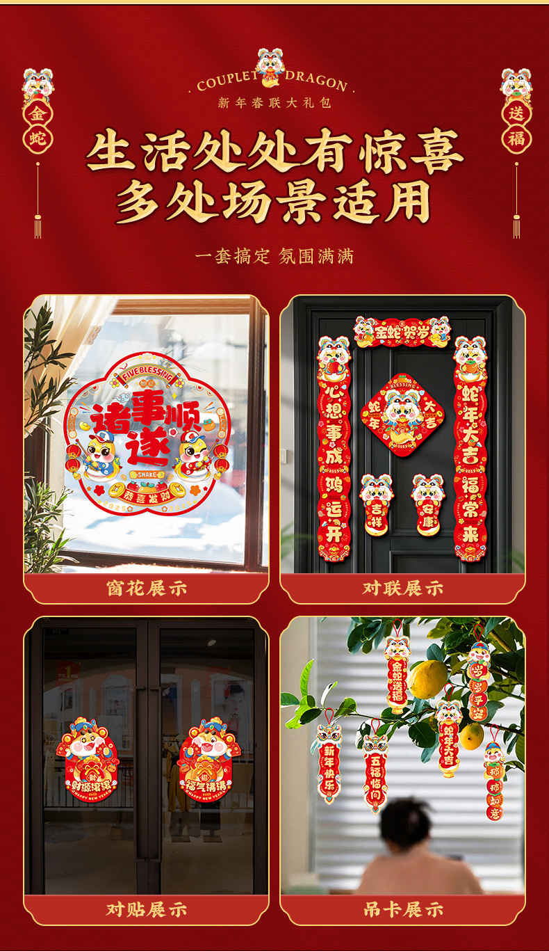 蛇年对联批发春联大礼包新款春节家用福字大门贴过年装饰布置