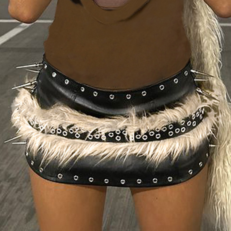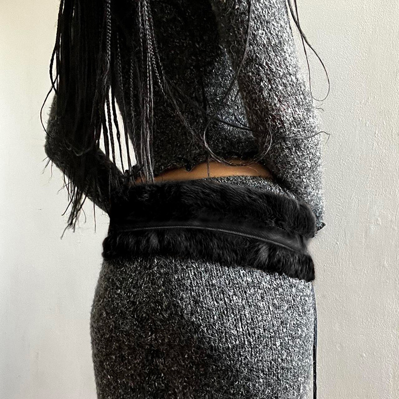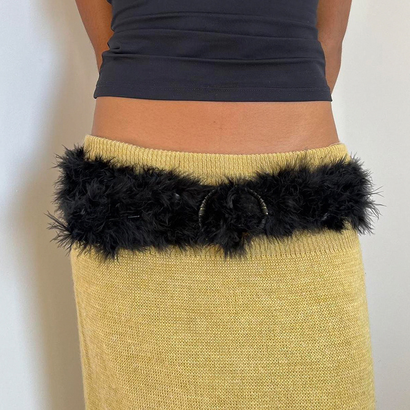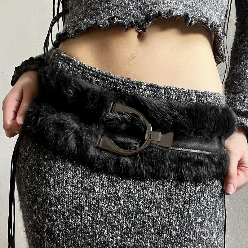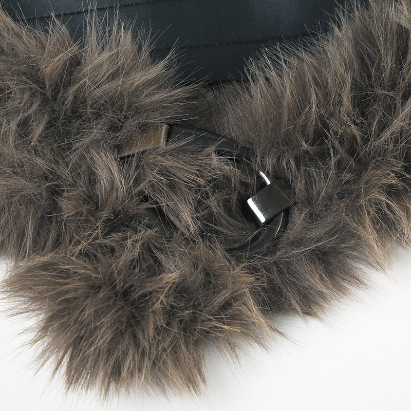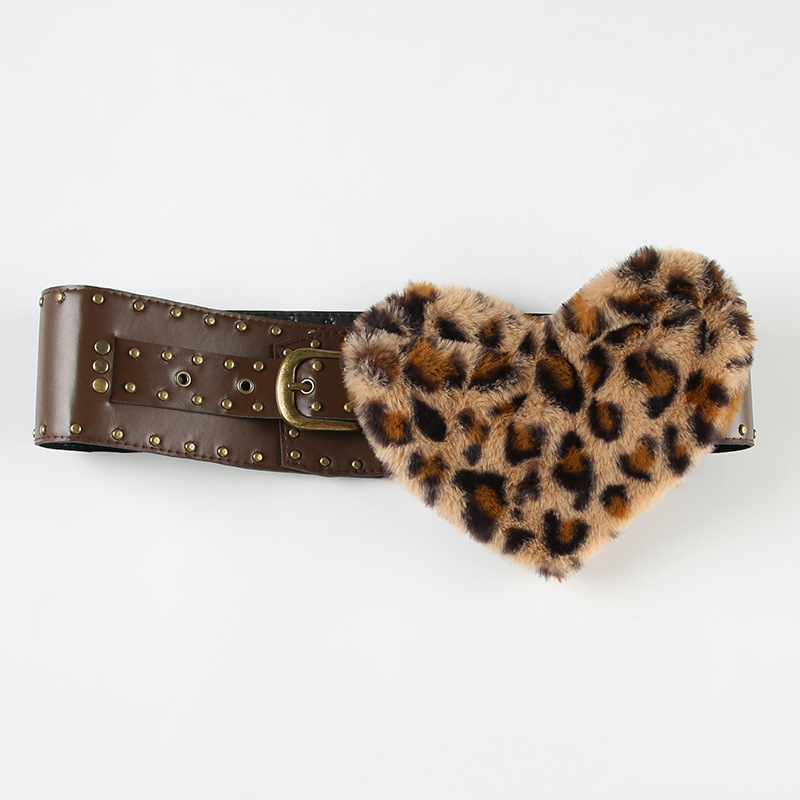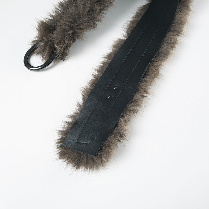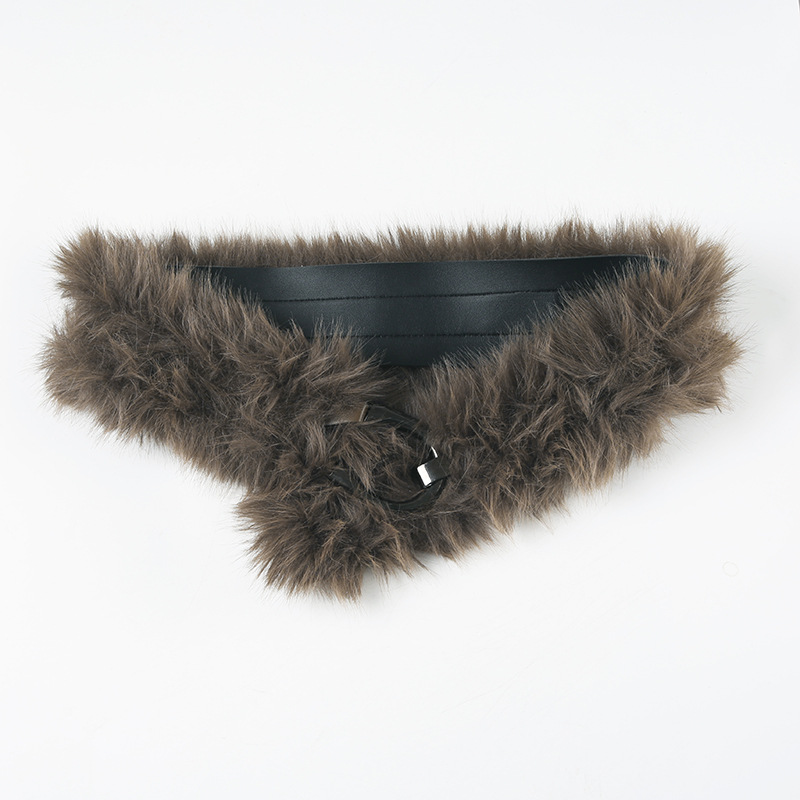 美式2024秋冬新款复古棕色PU皮毛毛挂钩腰带女收腰装饰宽腰带