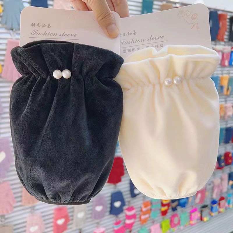 秋冬女短款纯色毛绒袖套办公家务耐脏套袖羽绒服棉衣袖口防污手袖