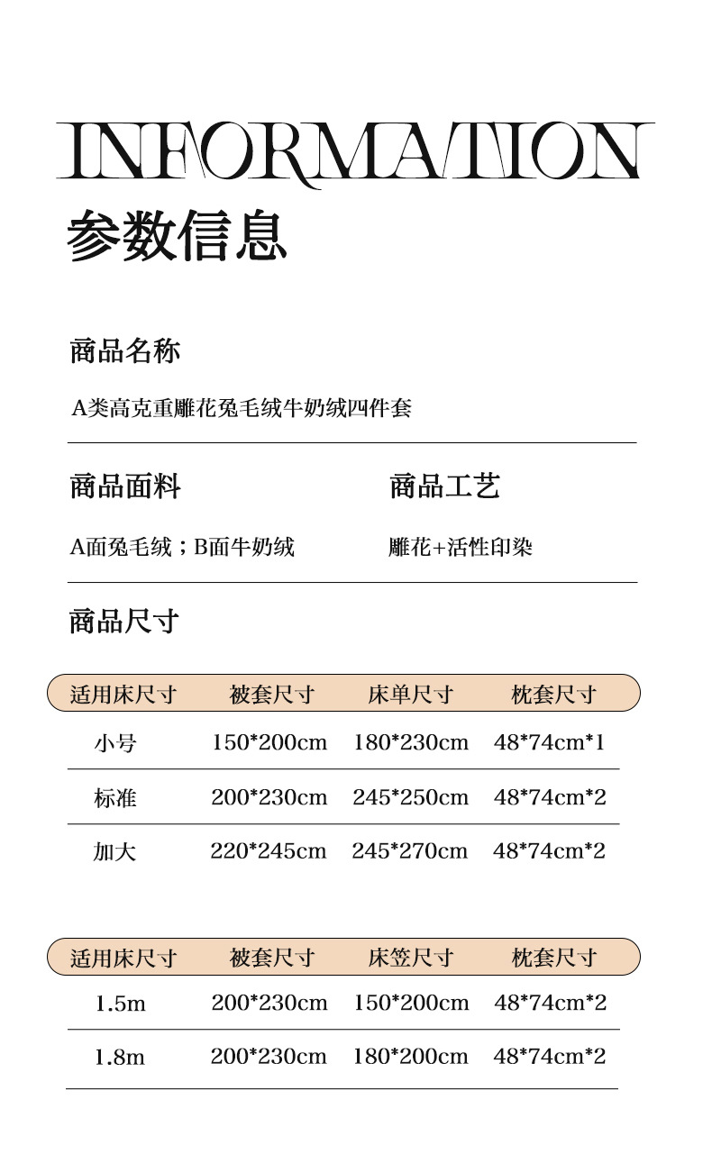 | 1.5m standard four-piece set (quilt cover 200*230 bed sheet 245*250 pillowcase 48*74*2)(1.5m标准四件套(被套200*230床单245*250枕套48*74*2)) | USD $36.21 | 1484 set available |
