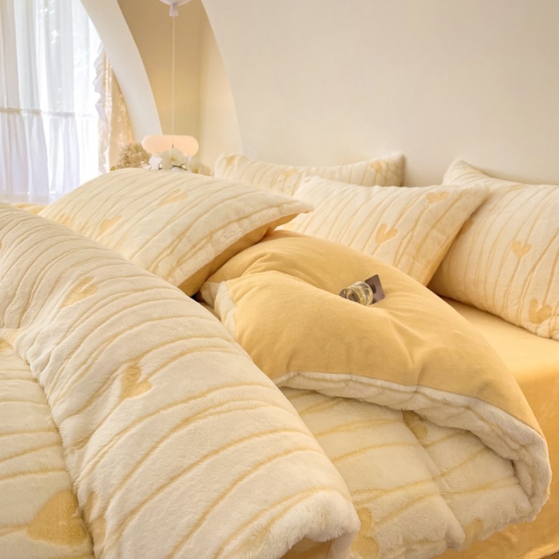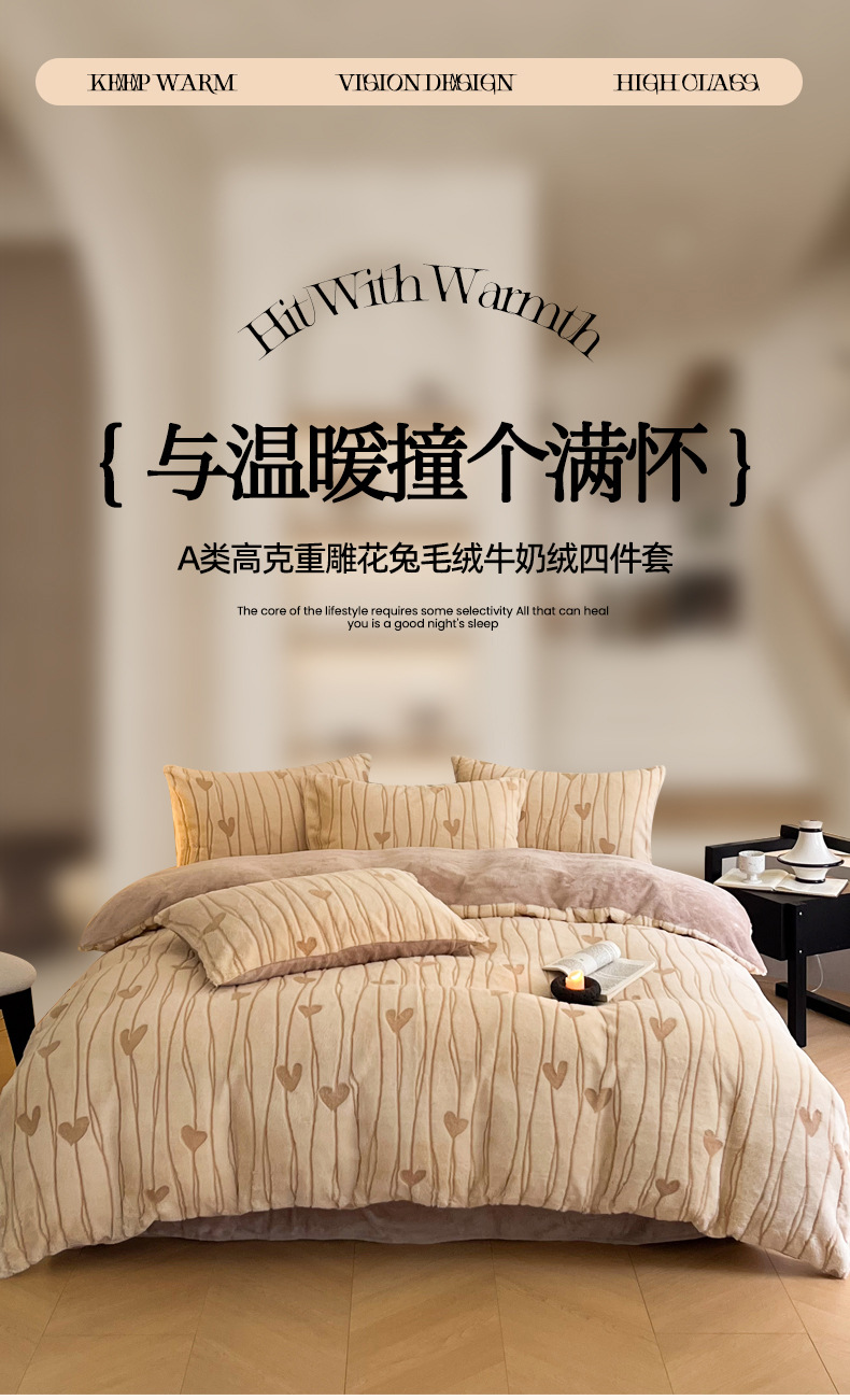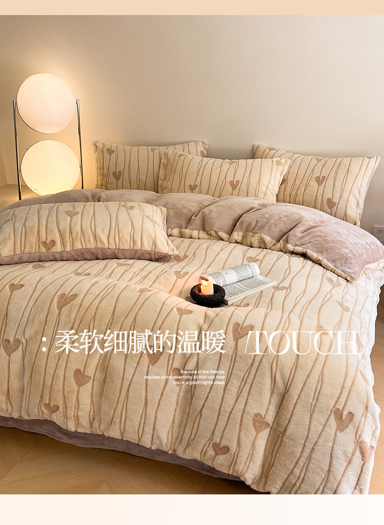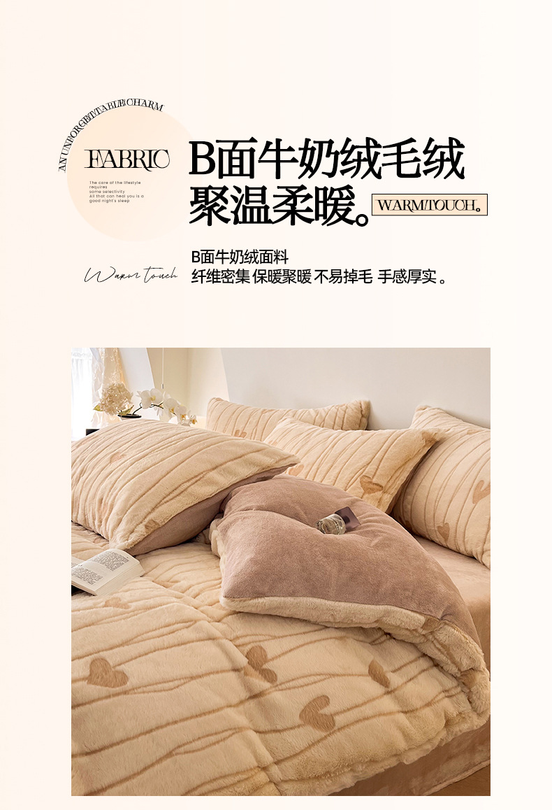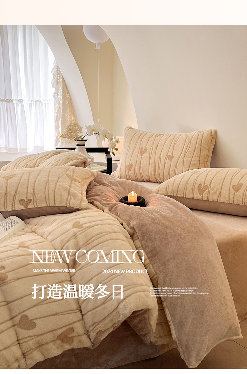 加绒秋冬兔毛绒四件套牛奶绒床上四件套a类南通家纺ins风绒四件套
