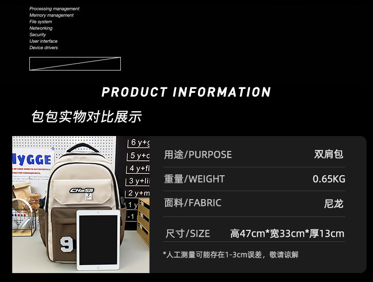 书包男生初中生撞色结实耐用高颜值高中生中学生双肩包