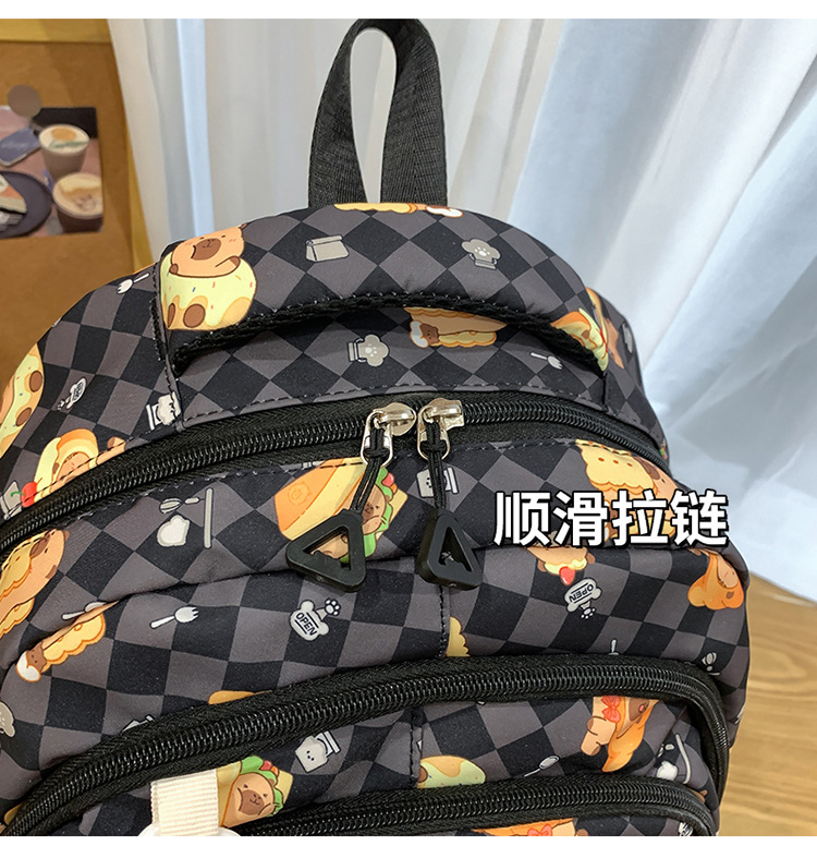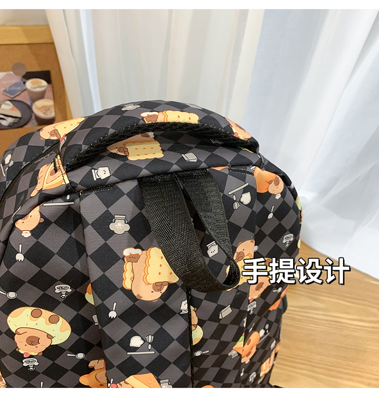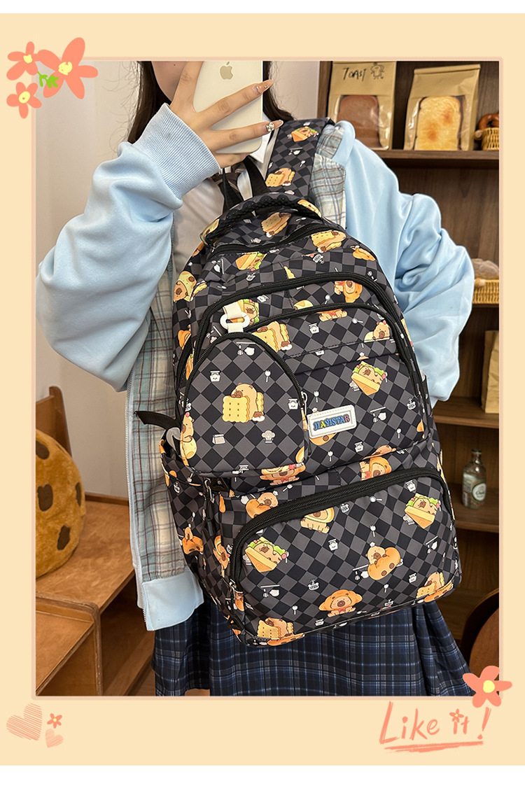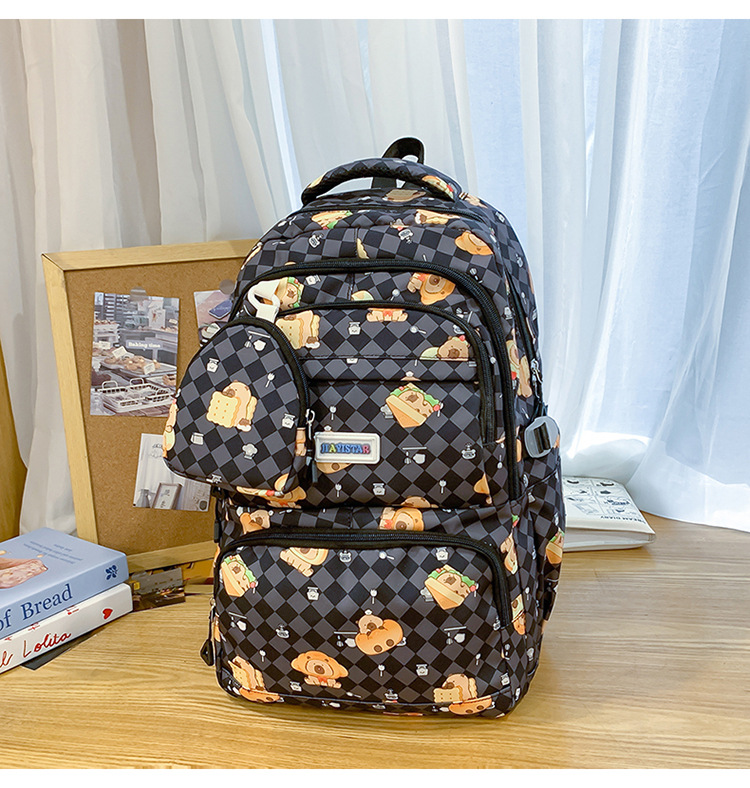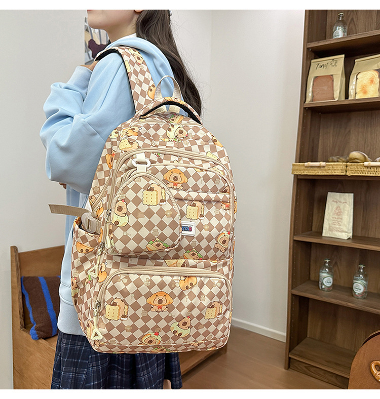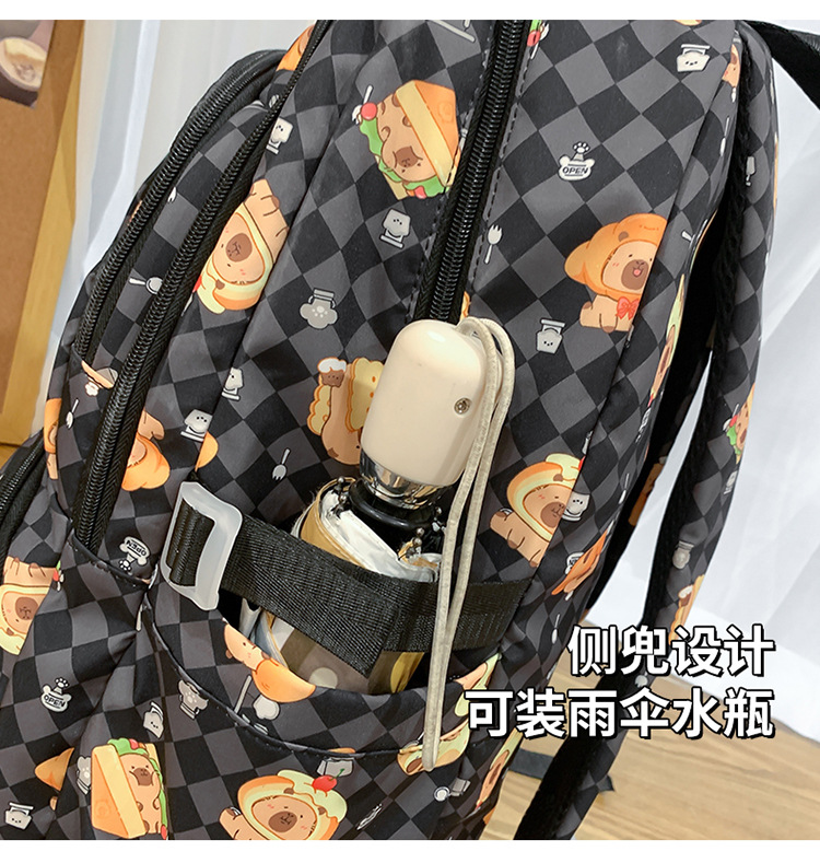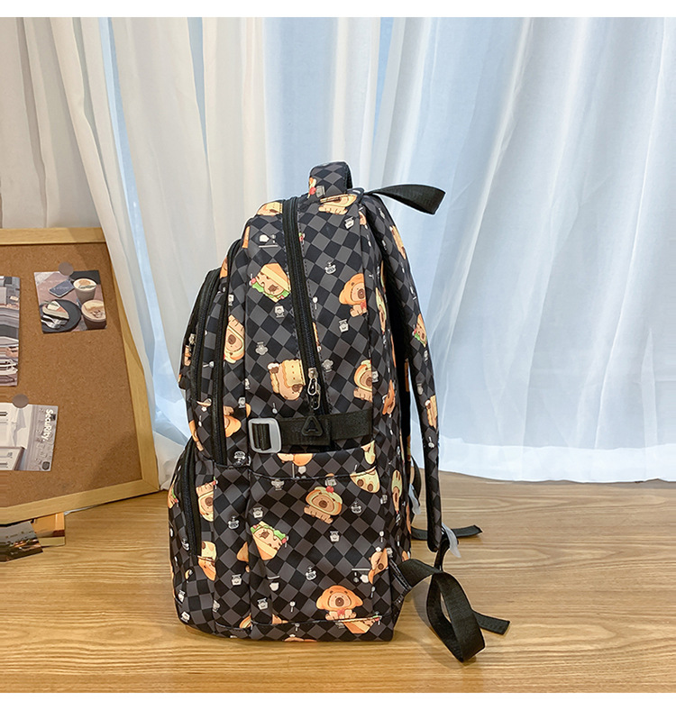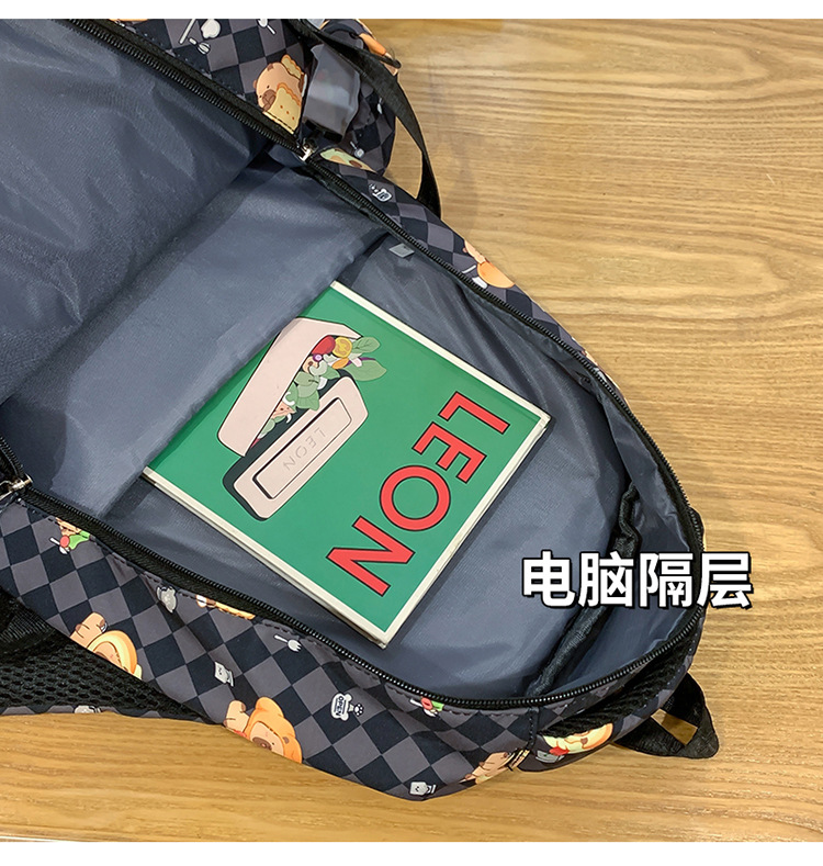 新款休闲棋盘格书包女初高中学生简约多口袋双肩包