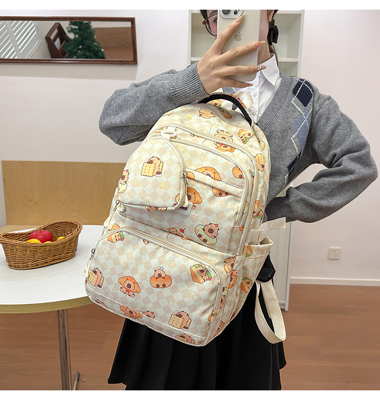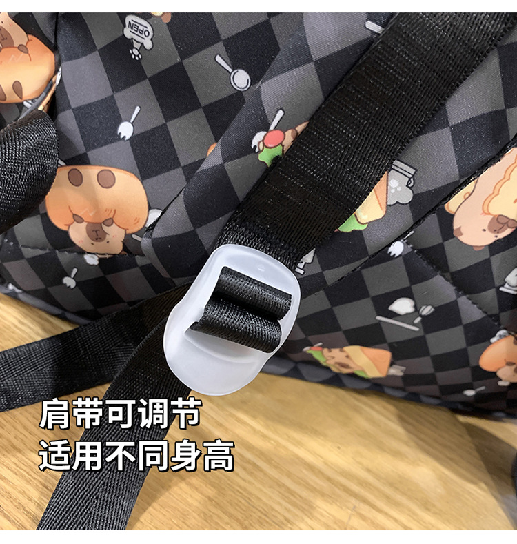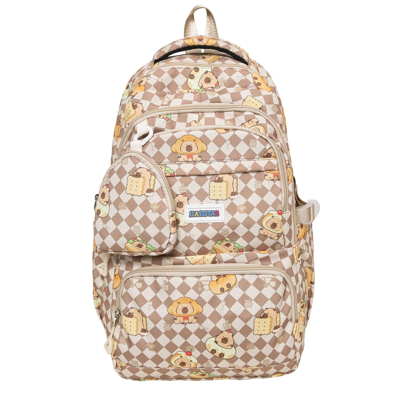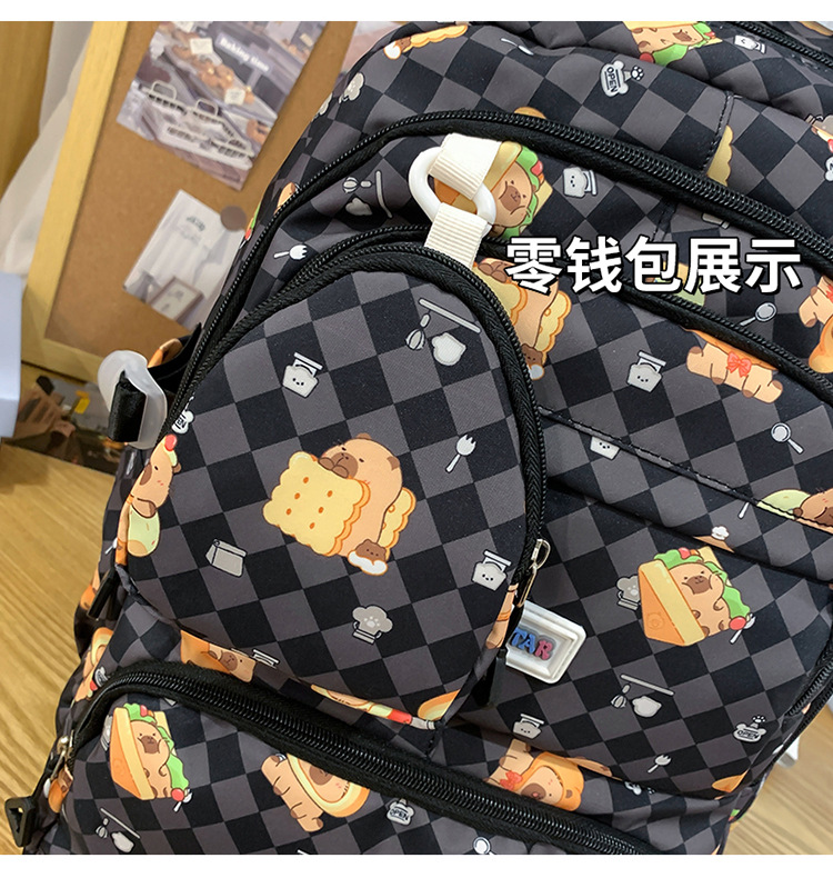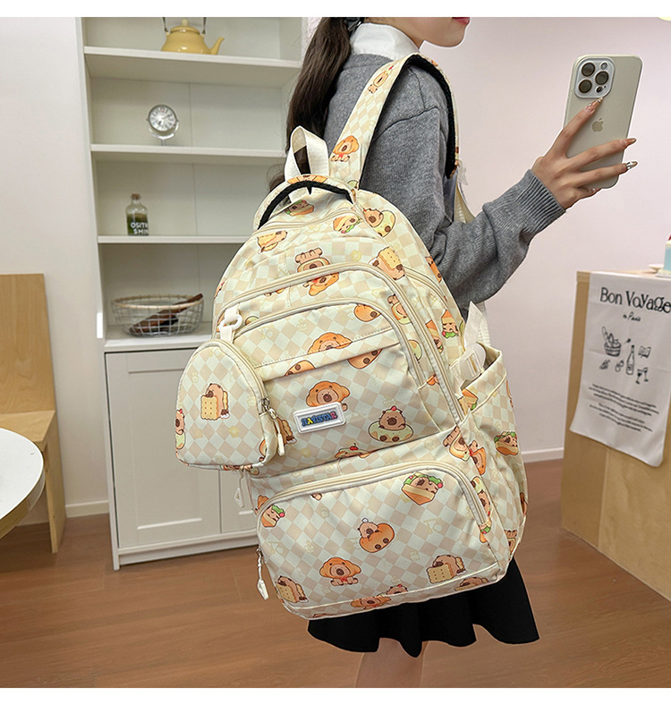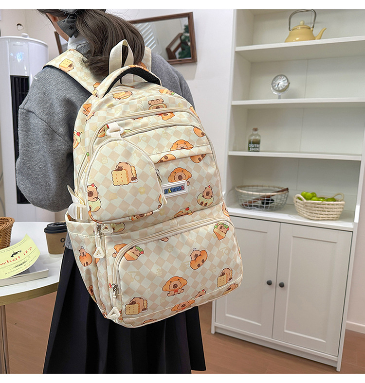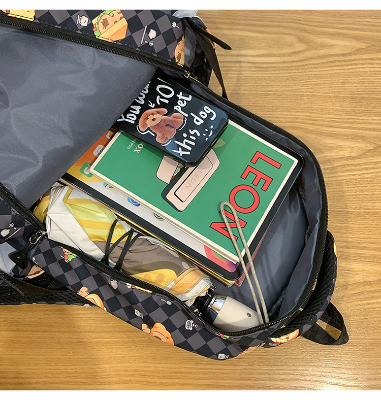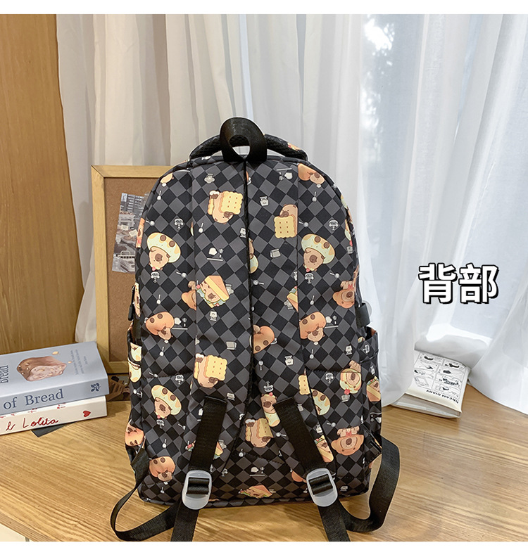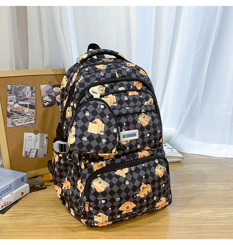 新款休闲棋盘格书包女初高中学生简约多口袋双肩包