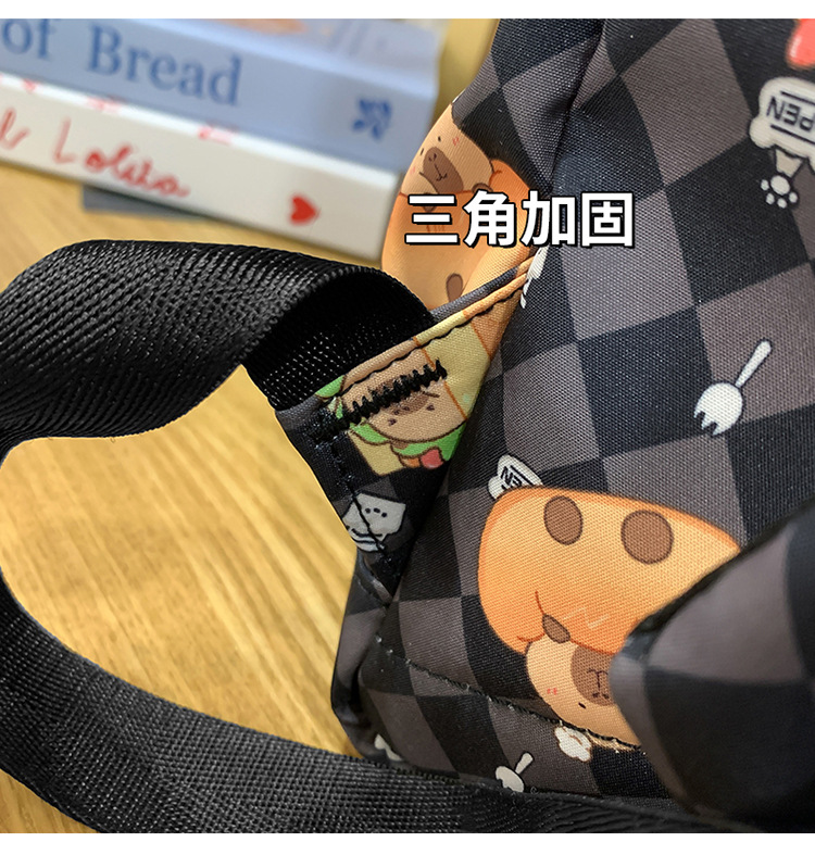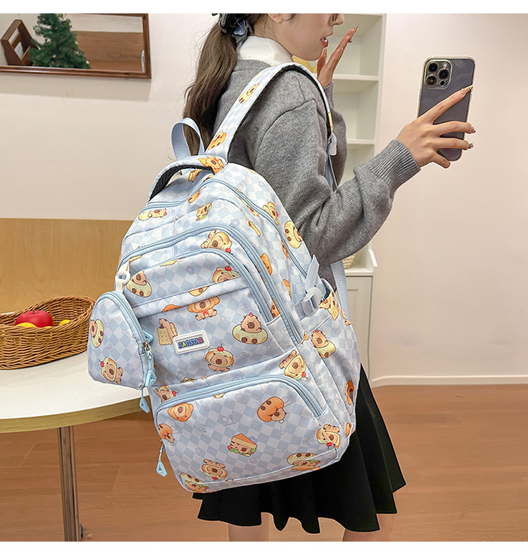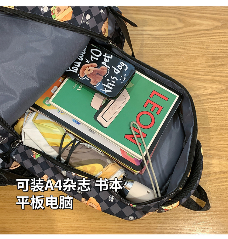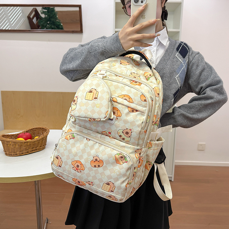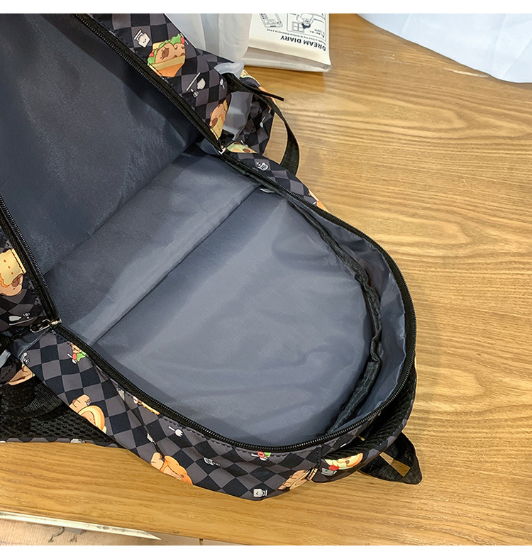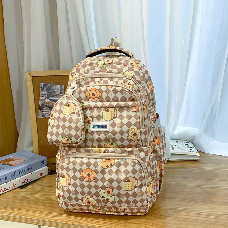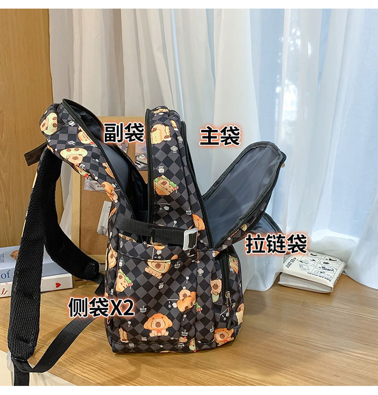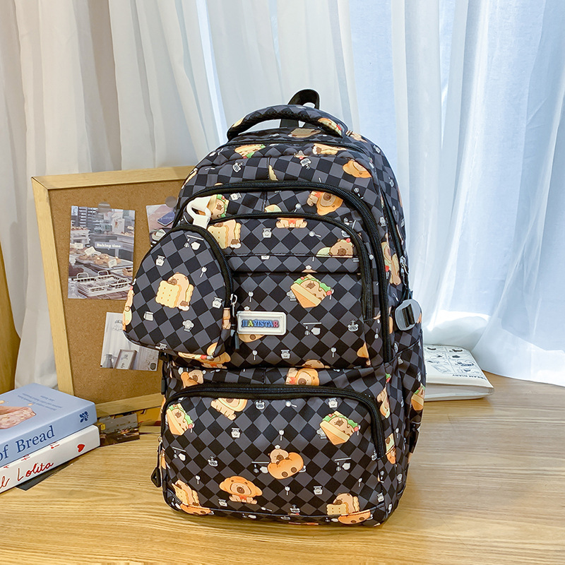 新款休闲棋盘格书包女初高中学生简约多口袋双肩包