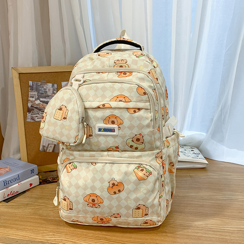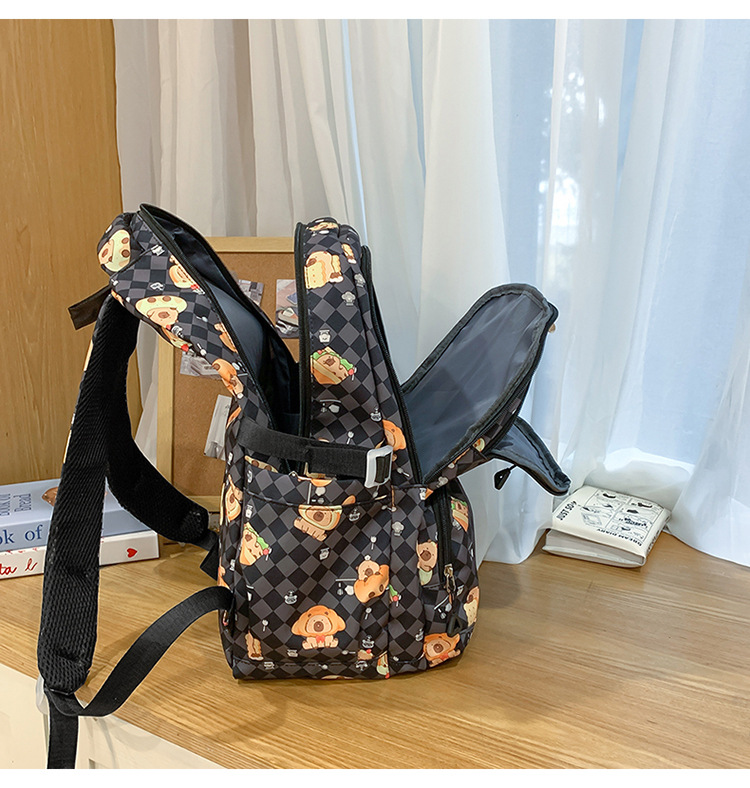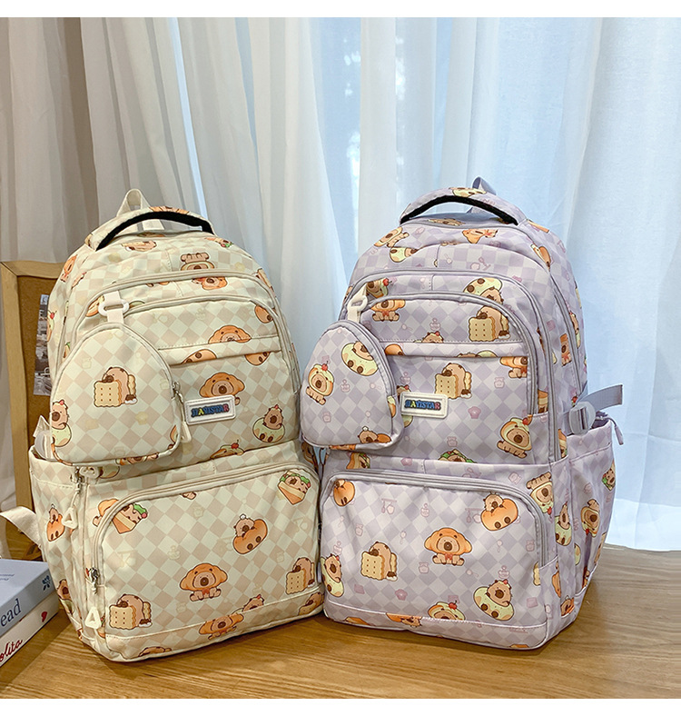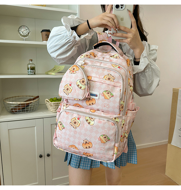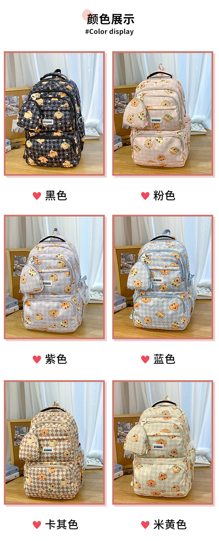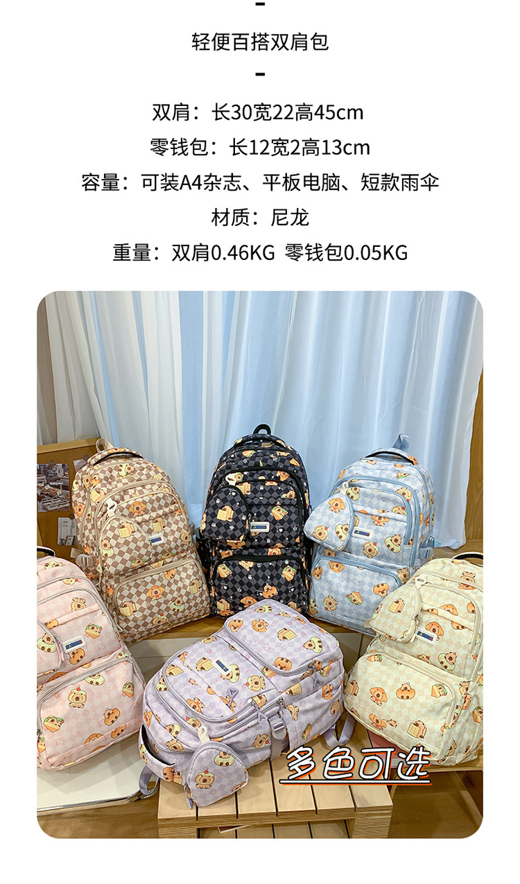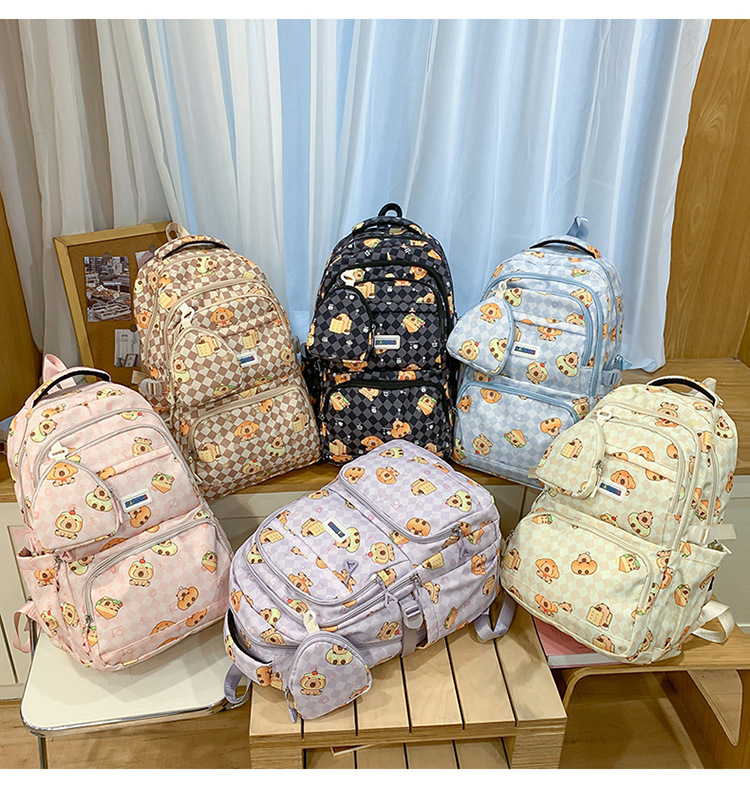 新款休闲棋盘格书包女初高中学生简约多口袋双肩包