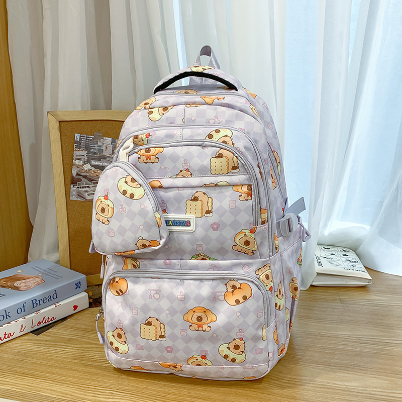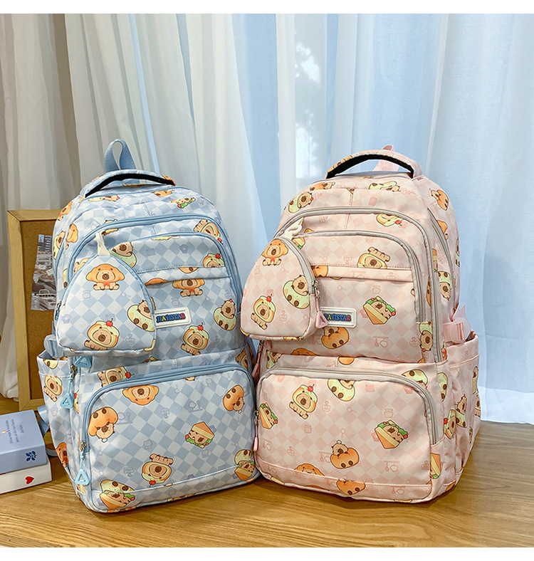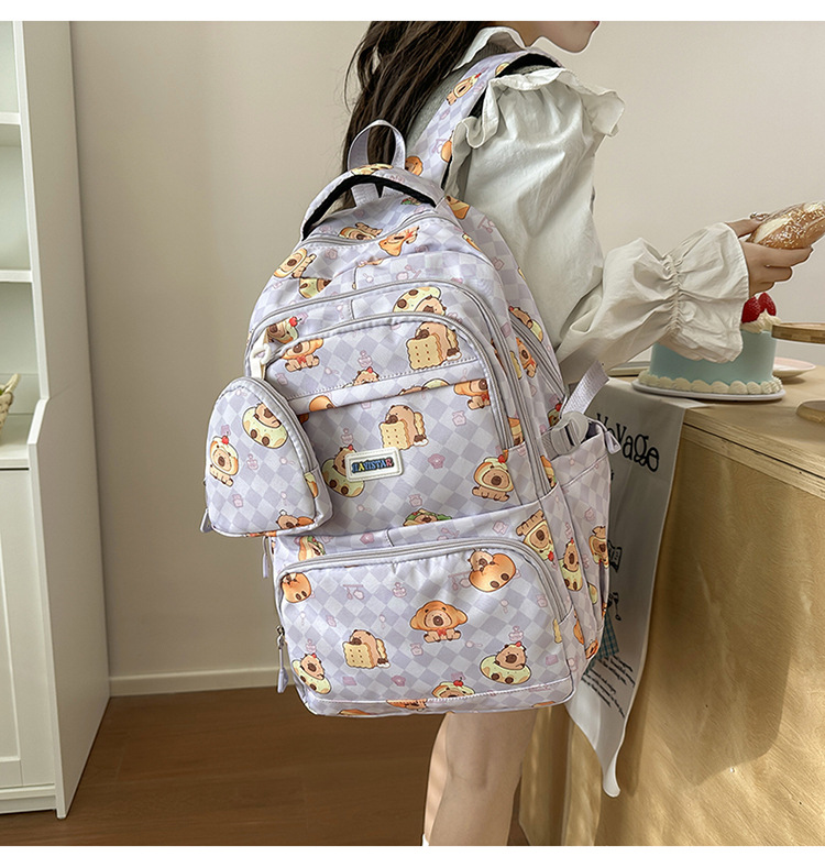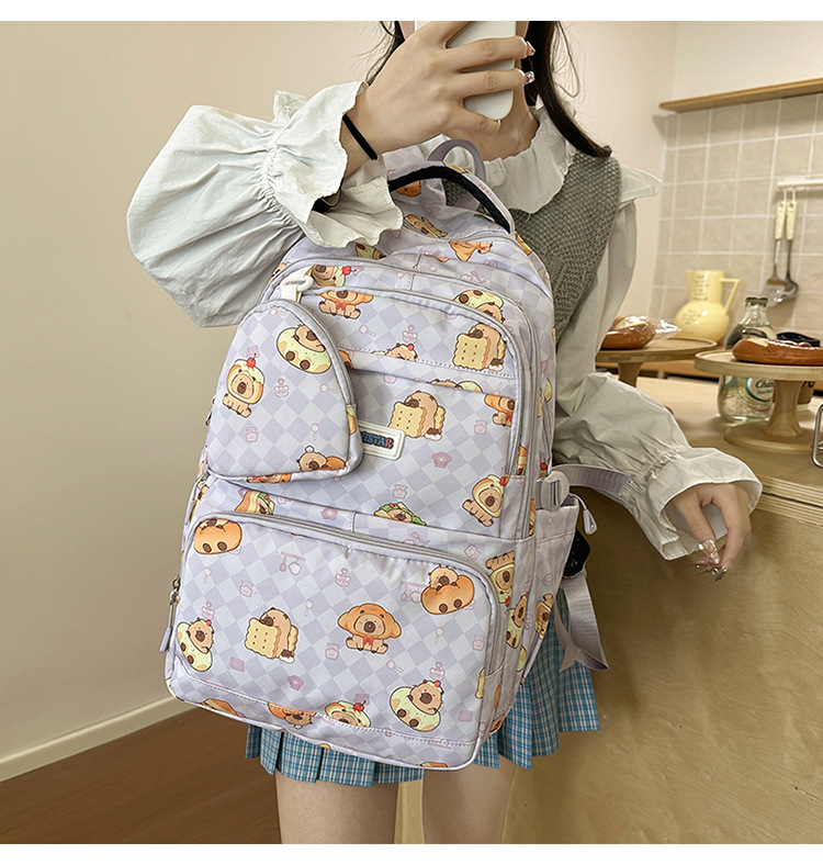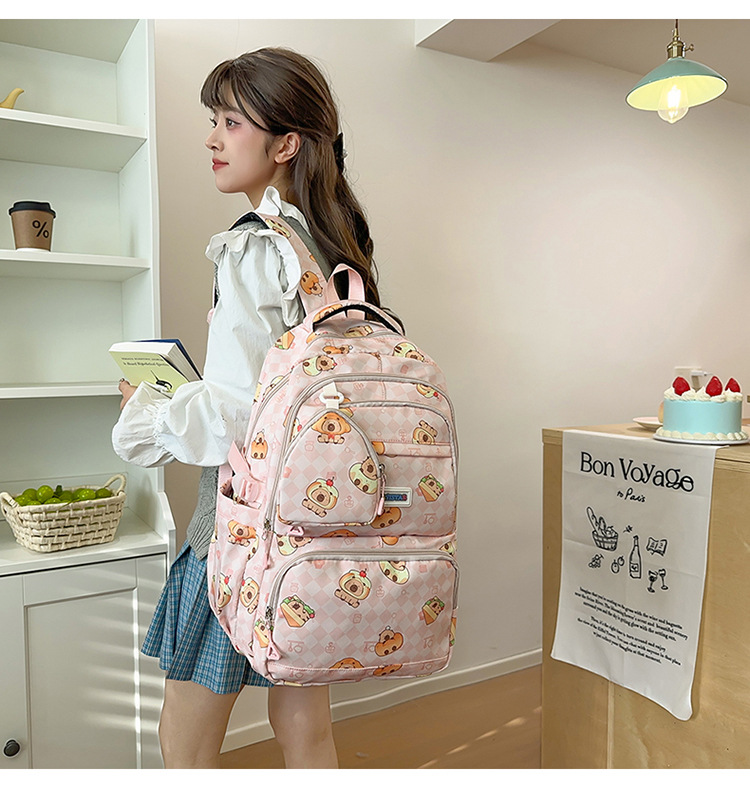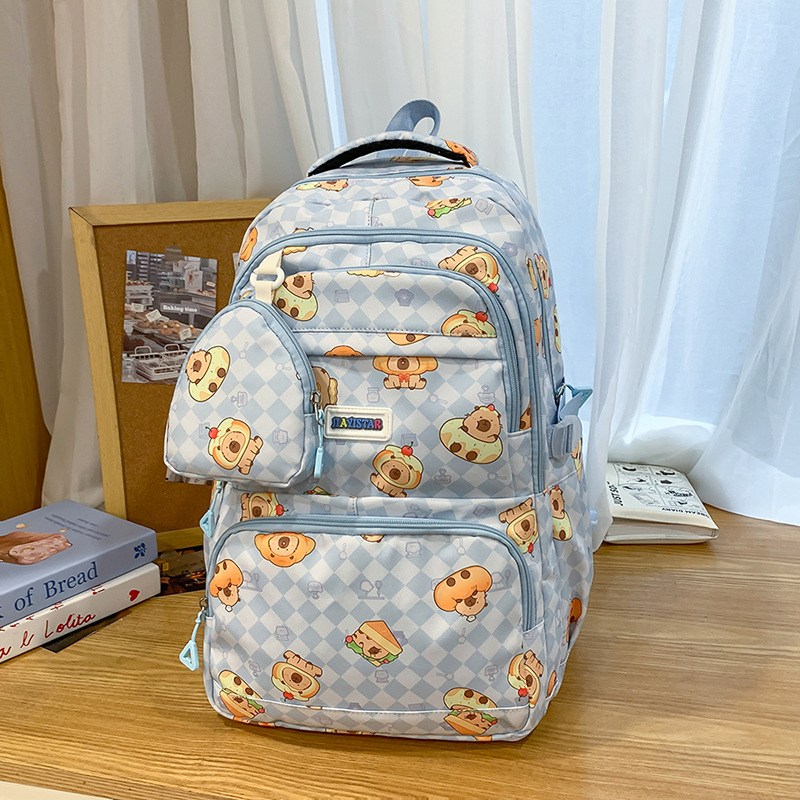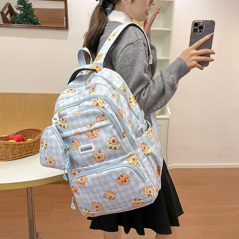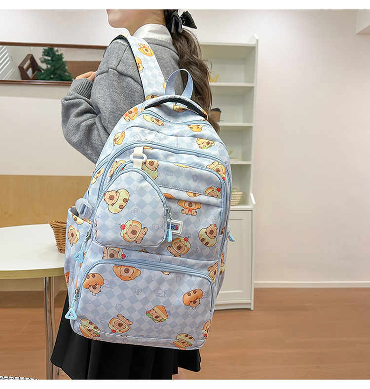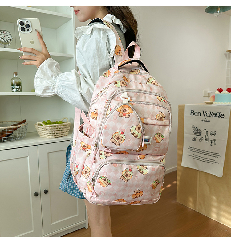 新款休闲棋盘格书包女初高中学生简约多口袋双肩包