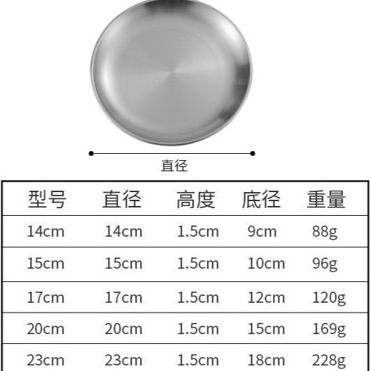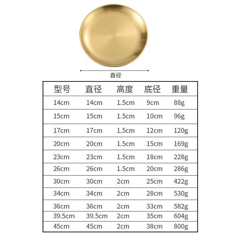 韩式餐具304不锈钢圆盘 定制加厚金色托盘水果蛋糕骨碟烤肉盘子