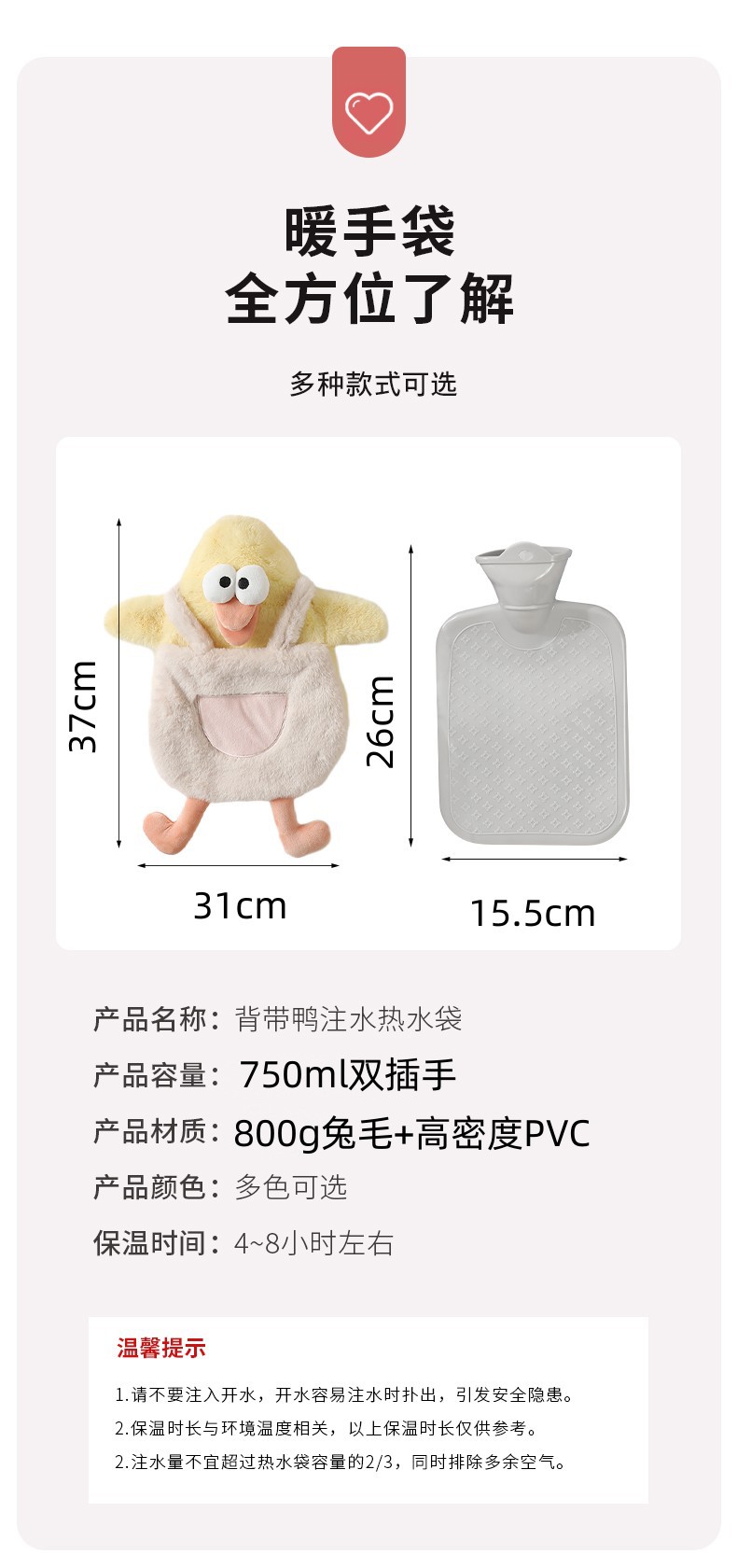 大号暖水袋注水热水袋可插手小号加厚被窝专用大容量带毛绒套
