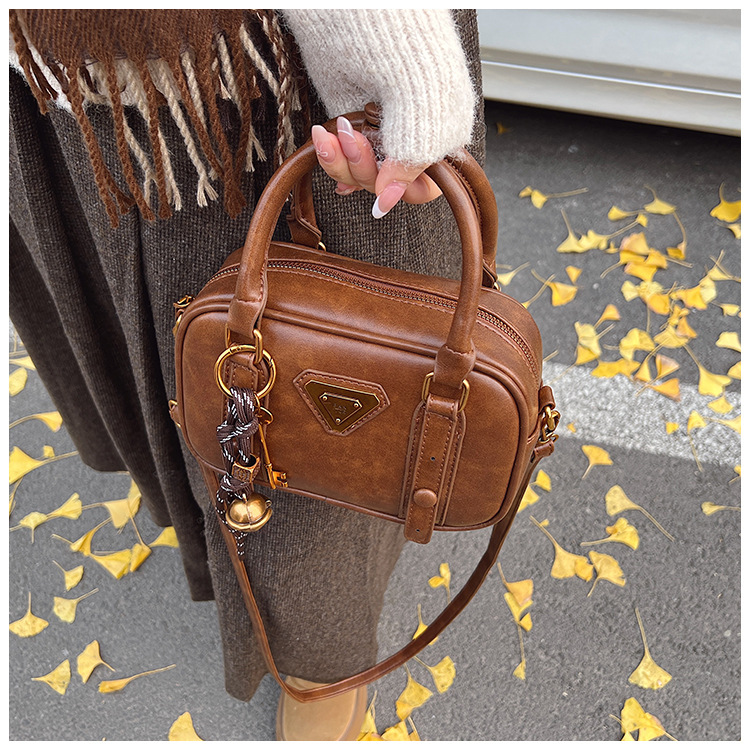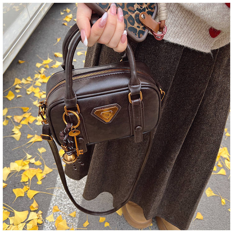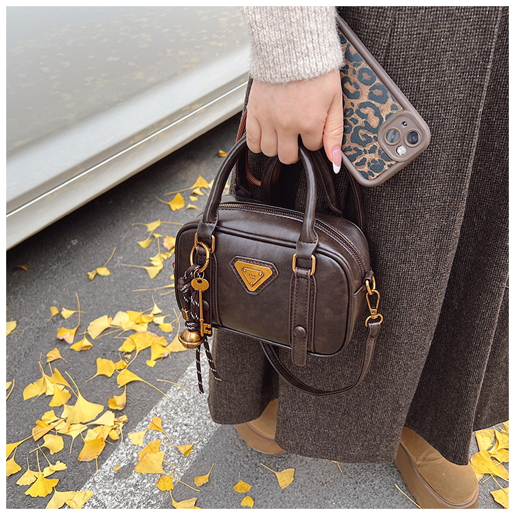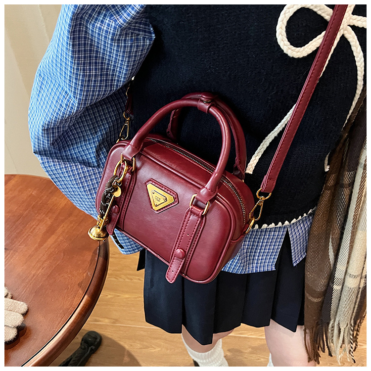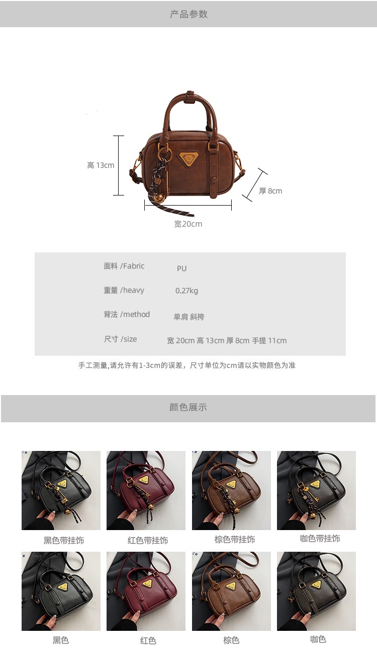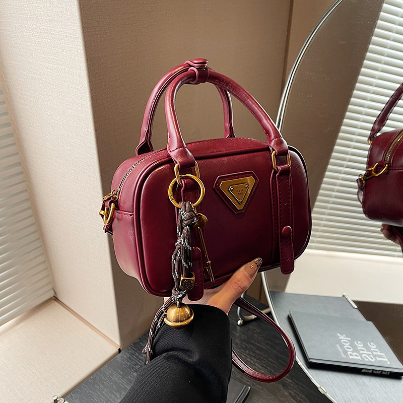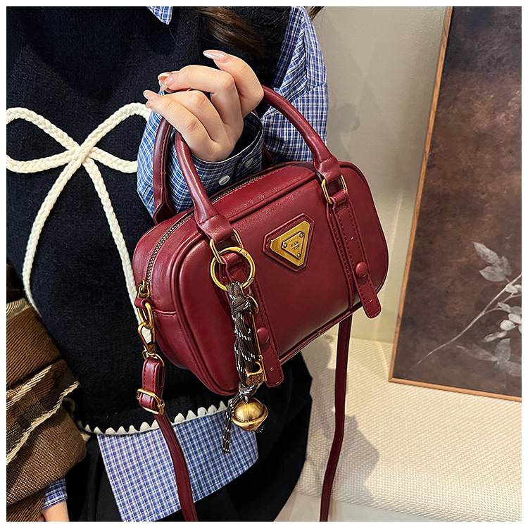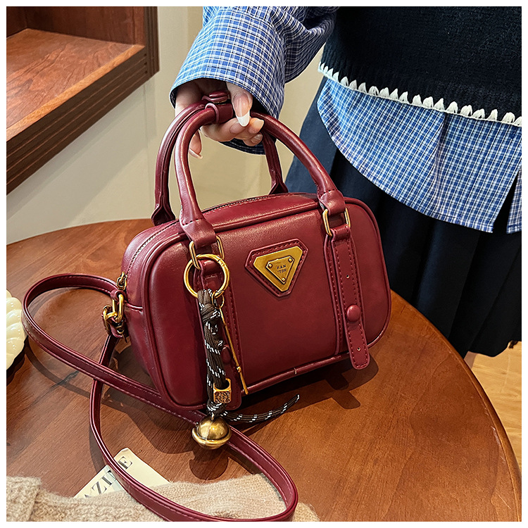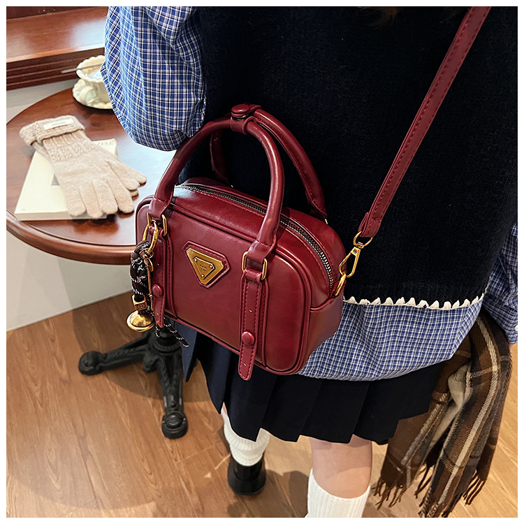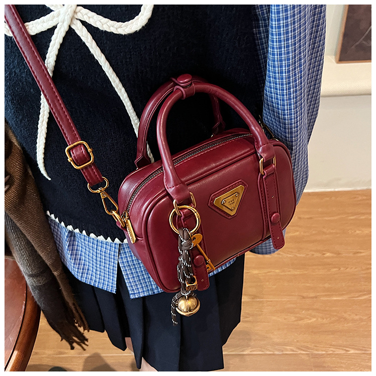 复古手提红色包包女2024新款时尚小方包简约斜挎包